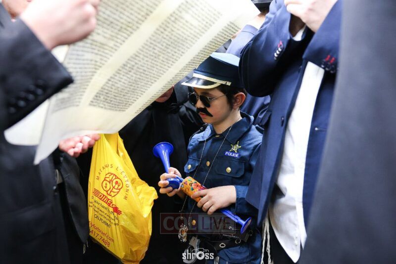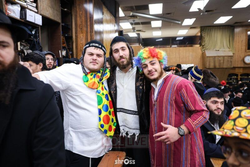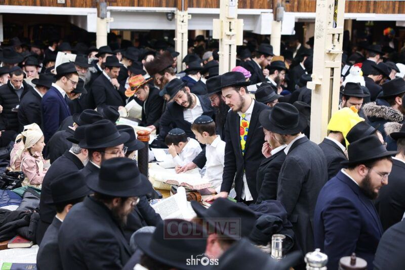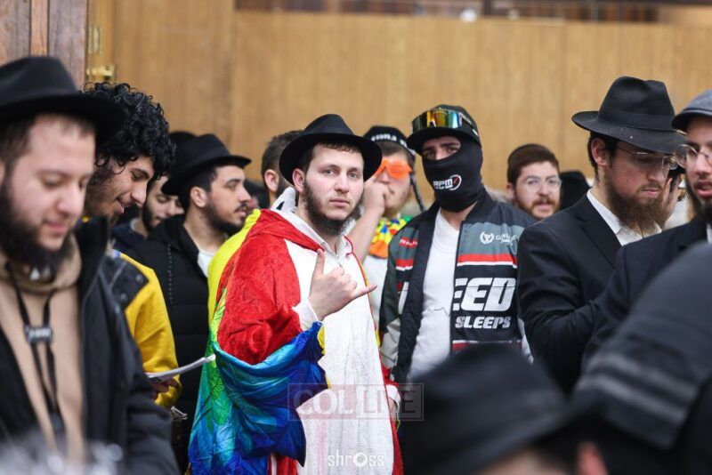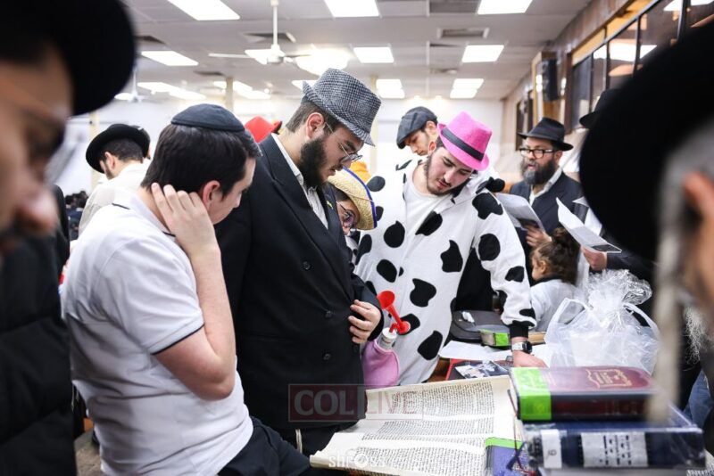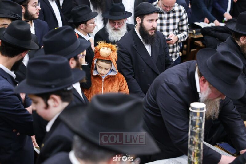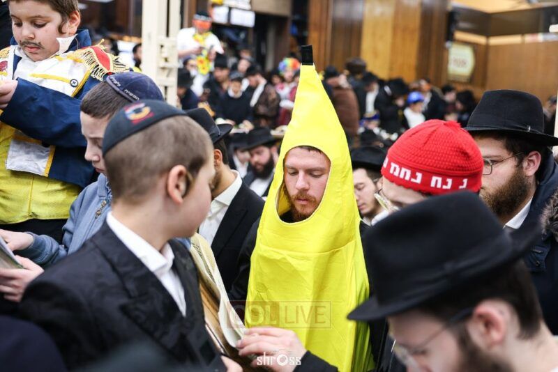 Colorful costumes were in sight at the main Shul of 770 Eastern Parkway as hundreds gathered Monday night to hear the Megillah. Photos, Video