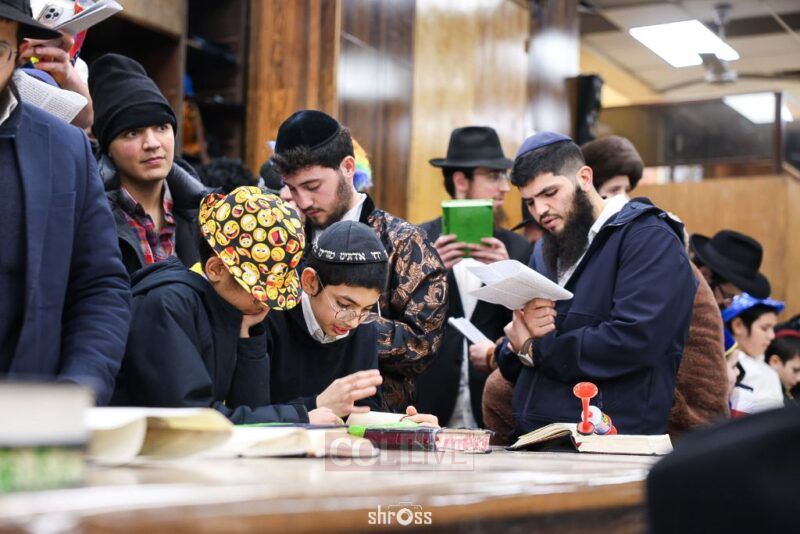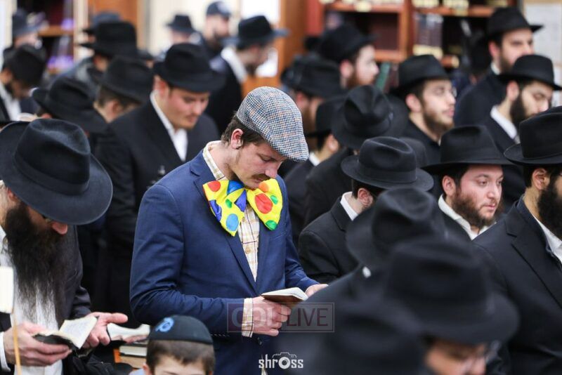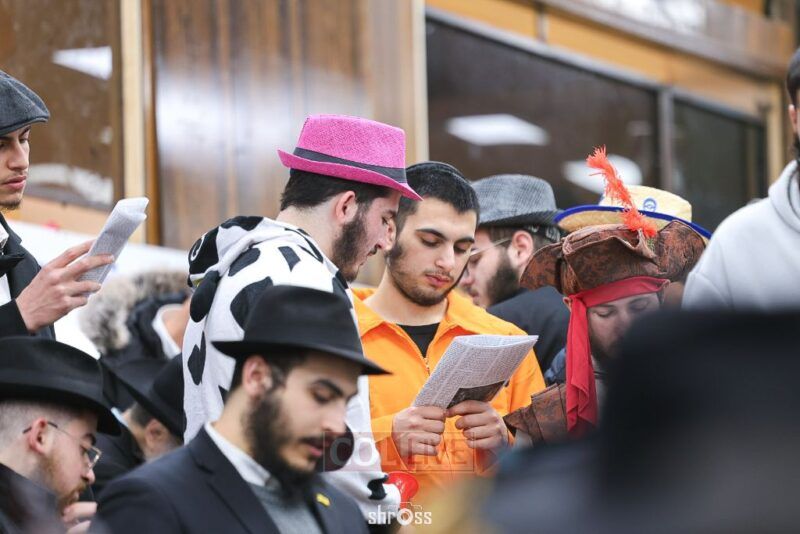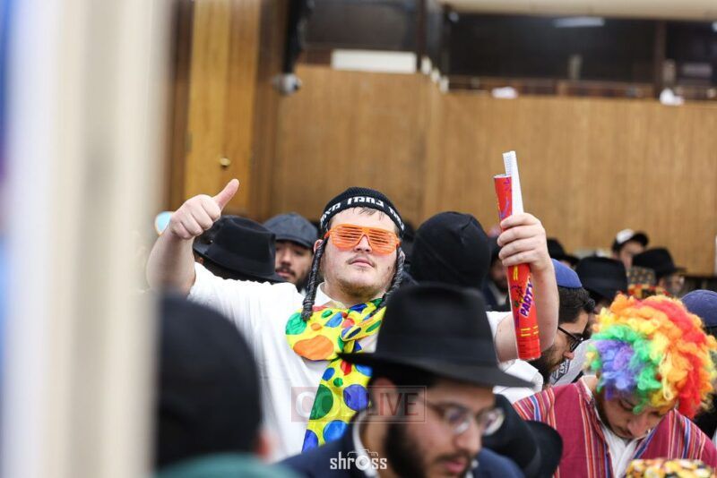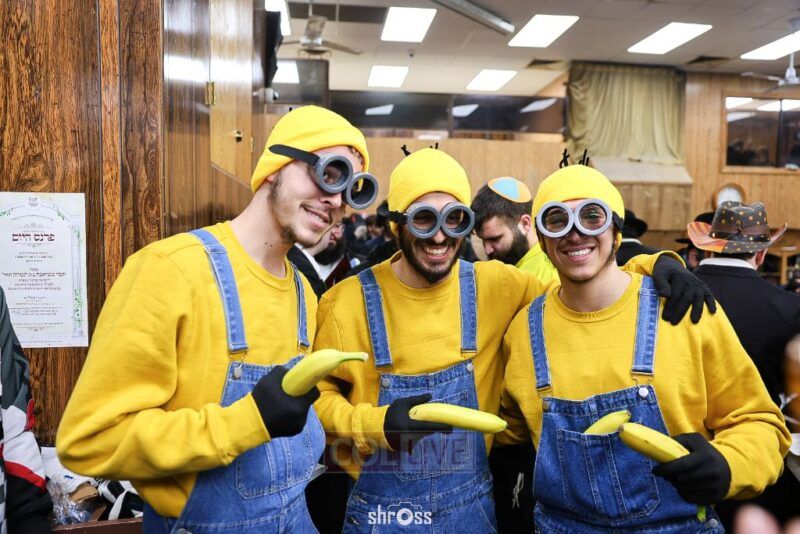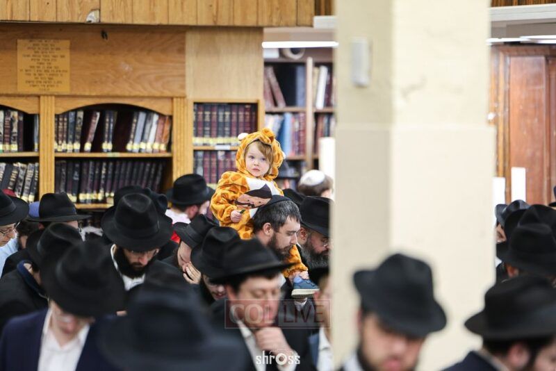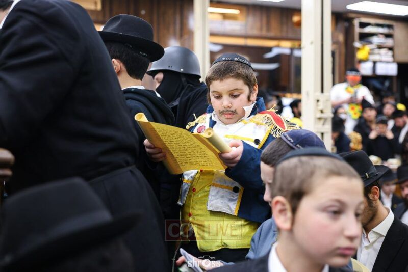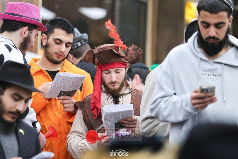 Colorful costumes were in sight at the main Shul of 770 Eastern Parkway as hundreds gathered Monday night to hear the Megillah. Photos, Video
