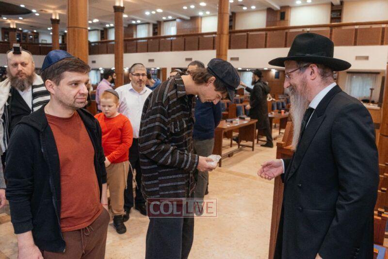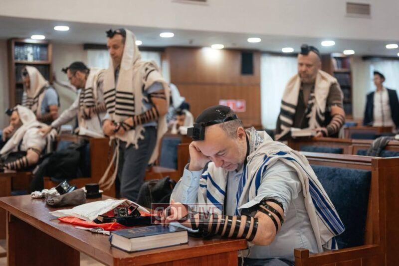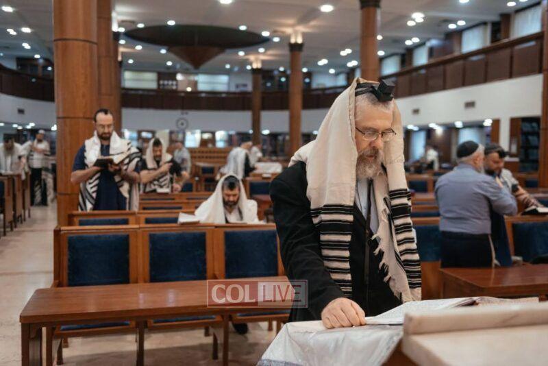 As the holy day of Yom Kippur came in, thousands arrived at the central shul. There were plenty of kippas prepared for them in advance, as well as translated machzorim, taleisim, and even kittels.