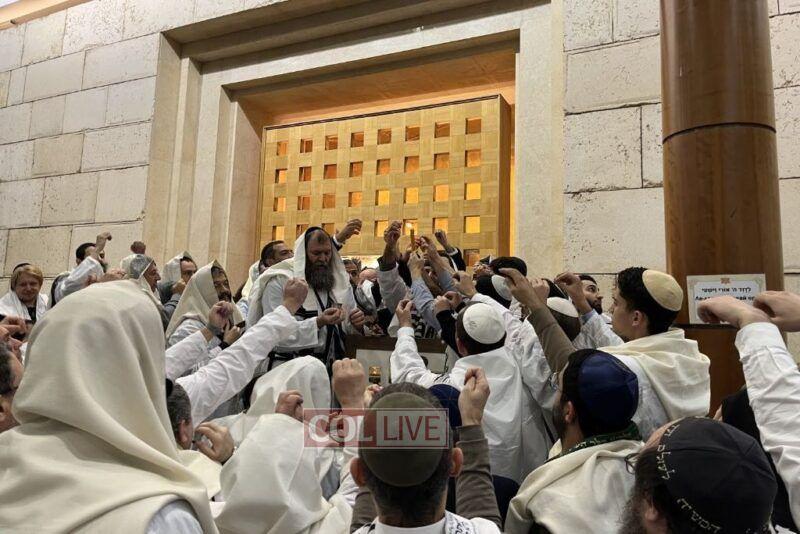 The tefilos were held in an atmosphere of elation and holiness, with the Chief Rabbi addressing the crowds before Kol Nidrei, and on Yom Kippur day, before Yizkor, and again before Neila.