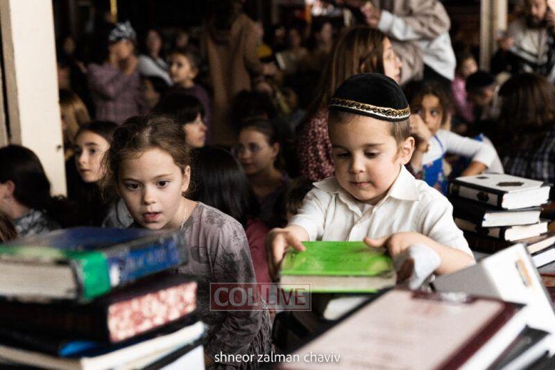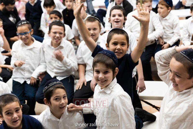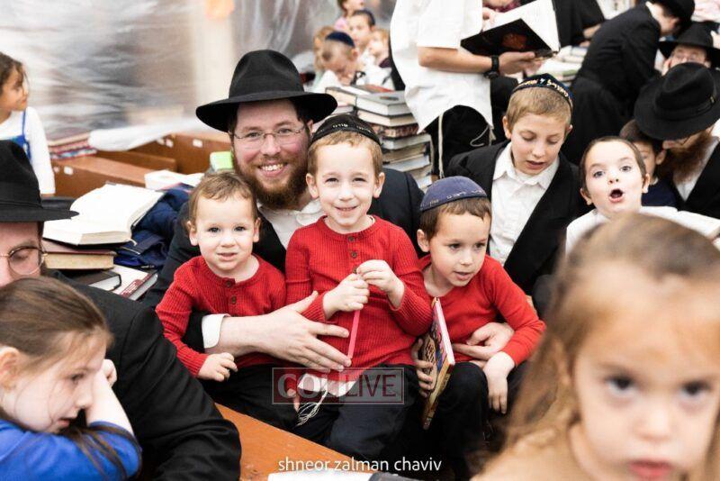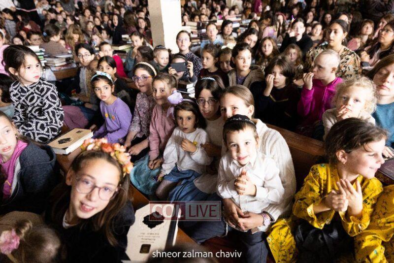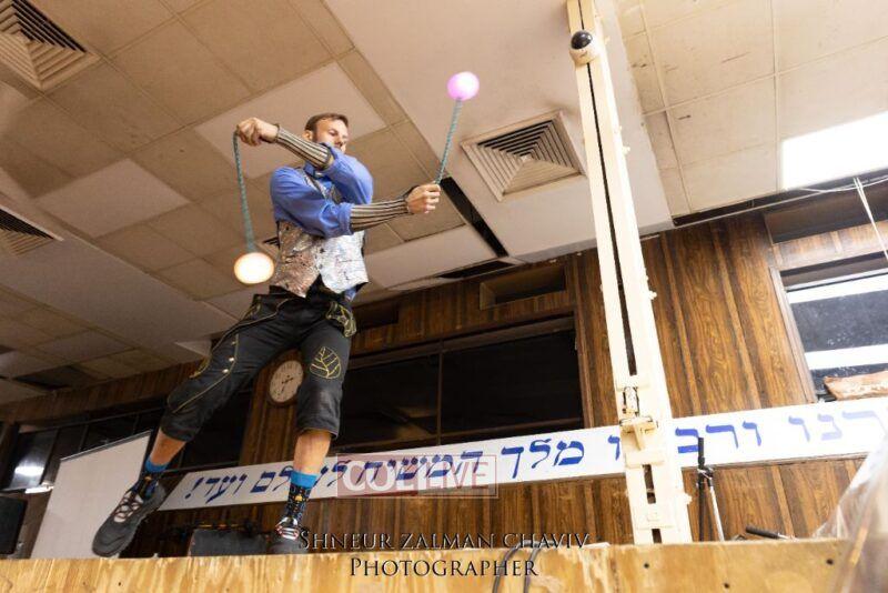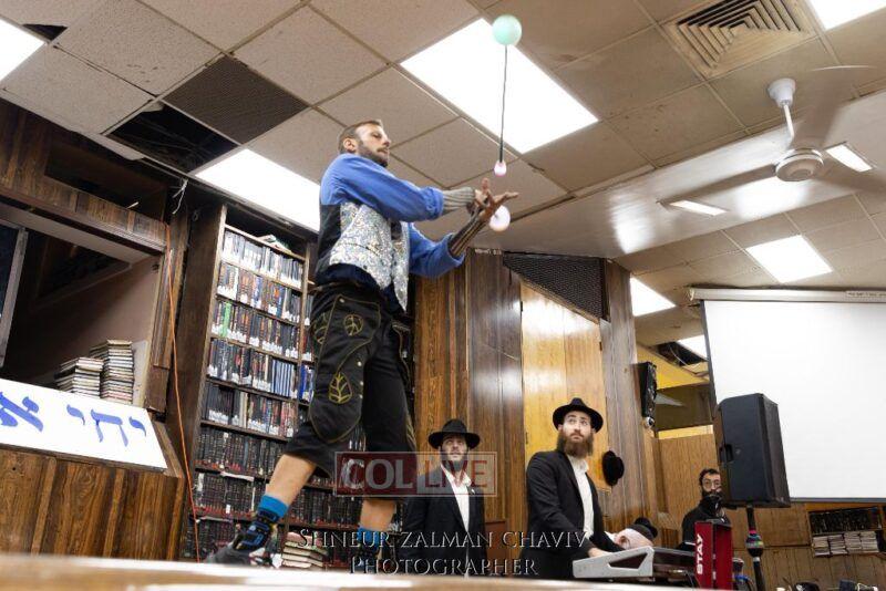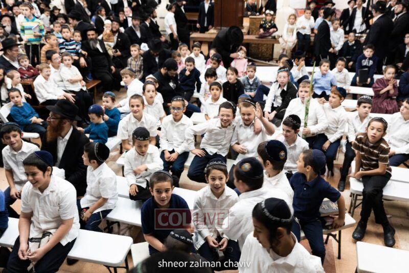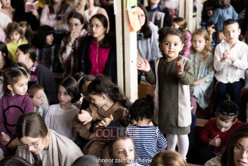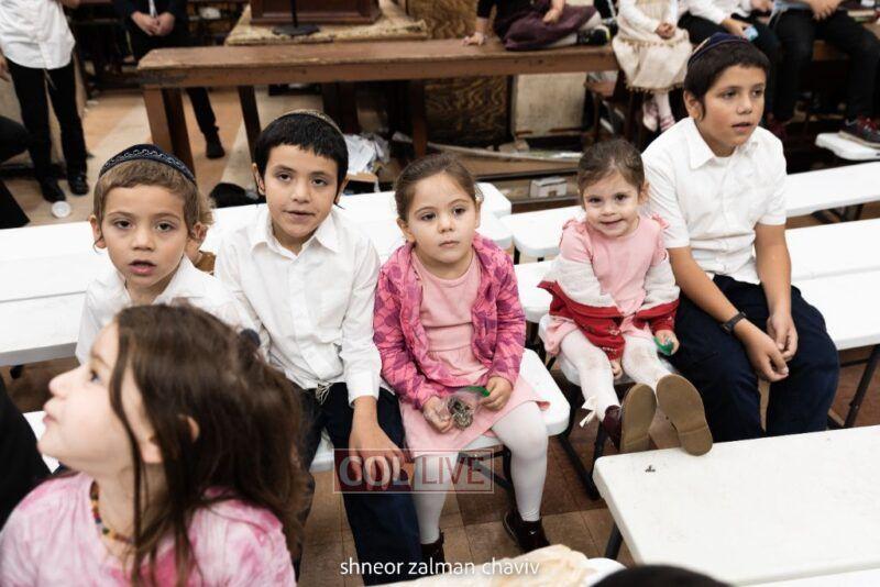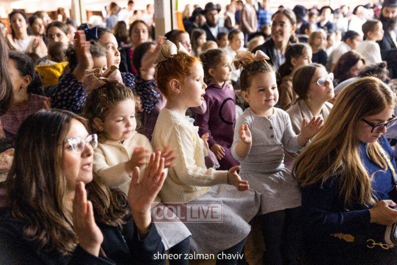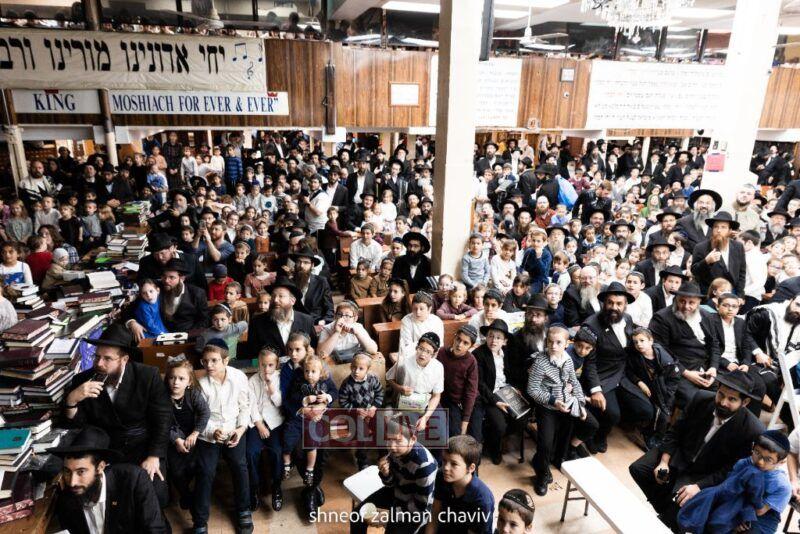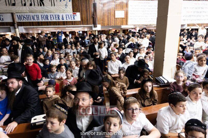 Hundreds of children joined a Grand Sukkos Rally in 770 with 12 Pesukim, and a special performance by Barak the Fire Juggler. Photos