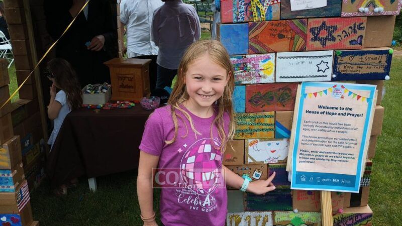 A home-like structure was built of hundreds of cardboard “Mitzvah-bricks,” each decorated by a community member with the design of a mitzvah they’d like to do for those on the frontlines in Israel. The structure represents the idea of bringing the hostages and soldiers back home with the power of all of the mitzvot together.