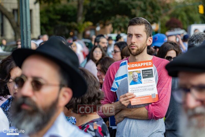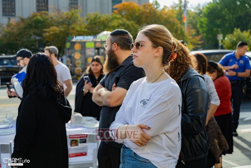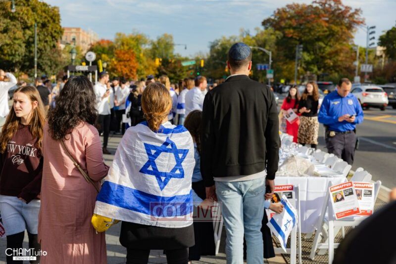 A special event to show solidarity with the innocent civilian hostages taken by Hamas in the massacre on Simchas Torah took place near Crown Heights on Friday, organized by a group of local Jewish residents.