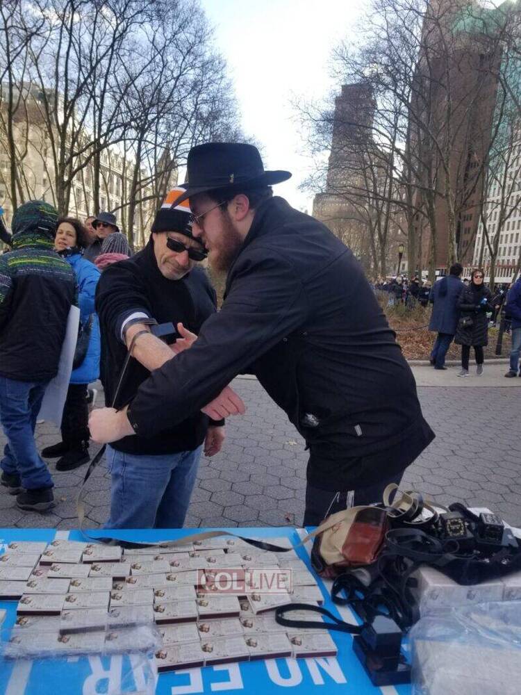 This initiative is the independent work of Rachel Notik, Rivka Korf and Moishy Korf who collaborated to make this a reality. The project came to life after the “No Fear. No Hate” march in protest of the rise of anti-Semitism in America. While marching across the Brooklyn bridge, Rachel engaged in conversation with Alan, a reform Jew from New York. As the march proceeded into the park where speakers would present, Rachel noted the many Lubavitchers asking men to don Tefillin. She asked Alan if he would don Tefillin and he initially refused. However, within minutes he was rolling up his sleeve and saying the Brocha. As they proceeded into the park, Alan was repeatedly approached by Bochurim and men, asking him to put on Tefillin. It was at that moment that the idea came to mind.