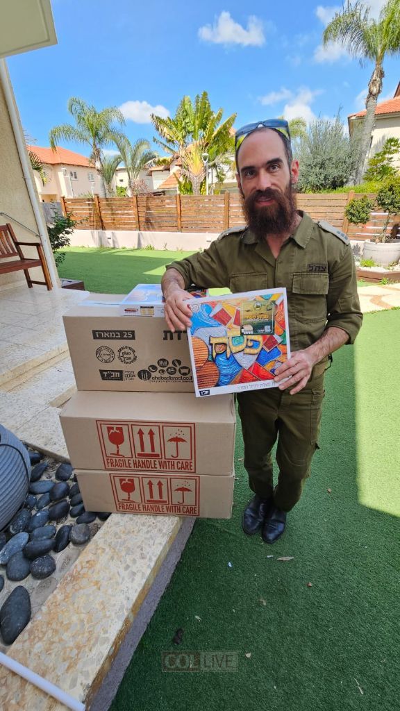 In the heart of Kfar Chabad, dedicated volunteer Mrs. Yaroslavsky coordinated the distribution of special aid packages for families in the Chabad community whose loved ones were mobilized to the reserves to protect the people of Israel.