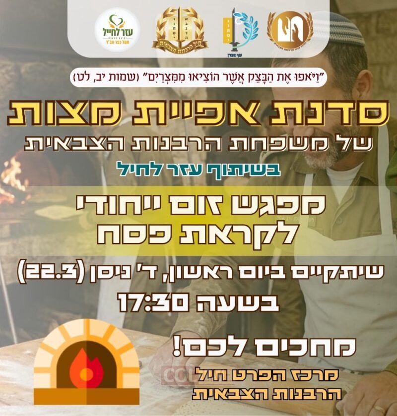 A moving moment was recorded when a delegation of senior officers from the Home Front Command and the C4I Corps arrived for a special visit to the heart of the activity—the Ezer Lachayal HQ in Kfar Chabad. The officers were deeply impressed by the scale of the operation, creating a great Kiddush Hashem. They later visited the famous Kfar Chabad Matzah Bakery, hosted by Yossi Haddad, and concluded at “770” for prayer and spiritual preparation for the holiday with Rabbi Menachem Latar.
