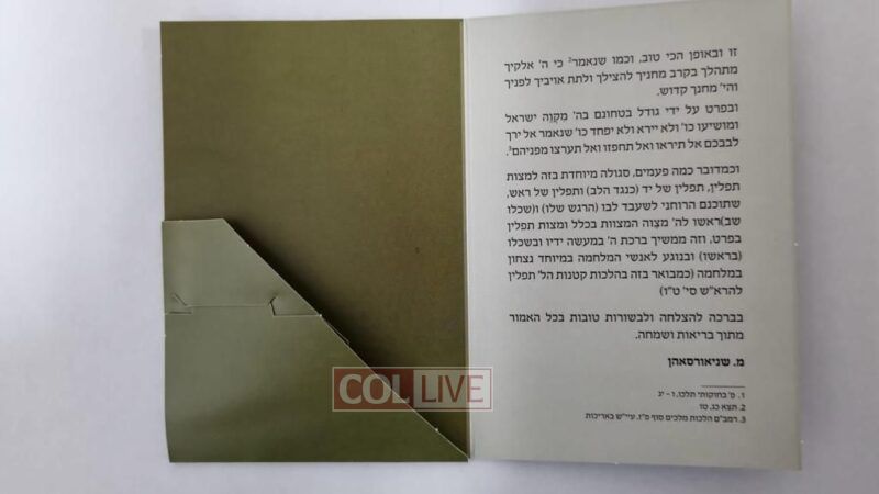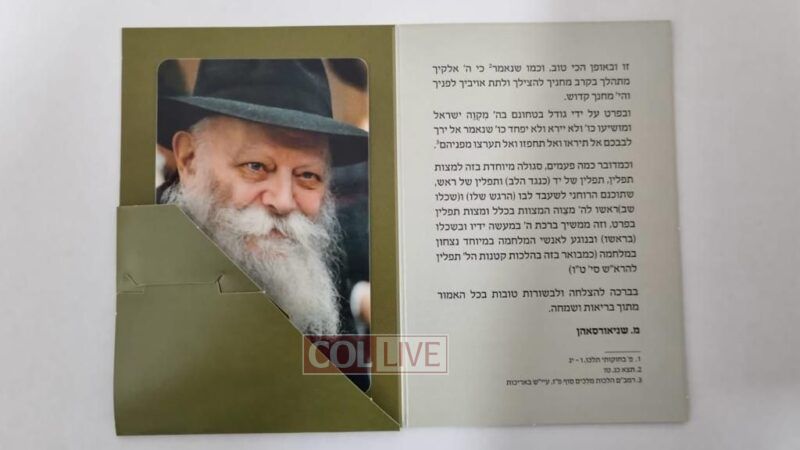 100,000 of the distinctive plastic cards are being distributed by Shluchim to soldiers across Israel. The beautiful picture of the Rebbe, is accompanied by a letter from the Rebbe encouraging IDF soldiers.