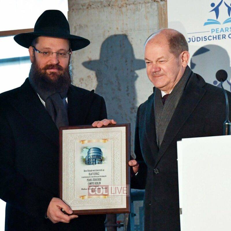 “Our acquaintance with Mr. Scholz began several years ago, during his time as Minister of Finance and Deputy Chancellor,” said the Rabbi of Berlin, Rabbi Yehuda Teichtal.