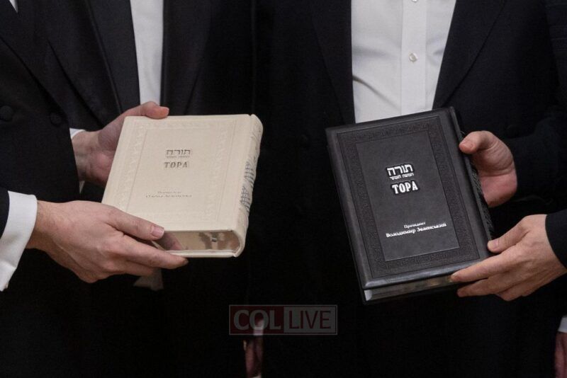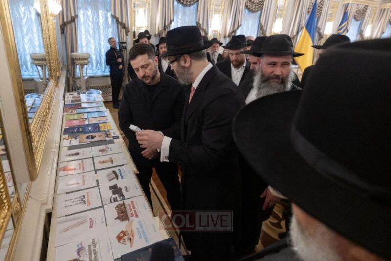 The rabbis also gifted Zelensky a newly printed set of the Five Books of the Torah, published for the first time in history in the Ukrainian language. They showed him additional Jewish books and materials printed in Ukrainian as part of a broad initiative by the Federation, and Zelensky expressed his admiration.