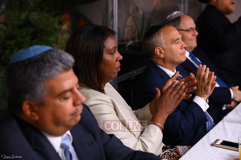 Elected representatives and officials at all levels of the New York government participated in the annual Sukkos party hosted by Crown Heights activist Chanina Sperlin on Tuesday night.