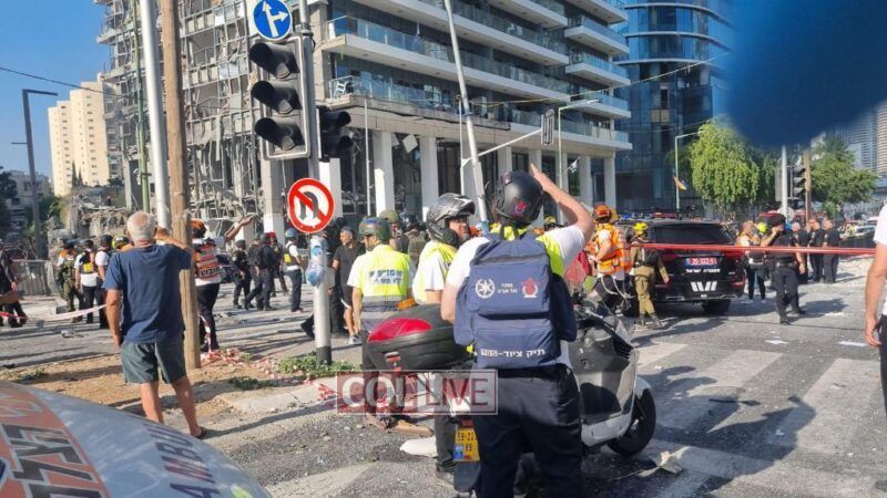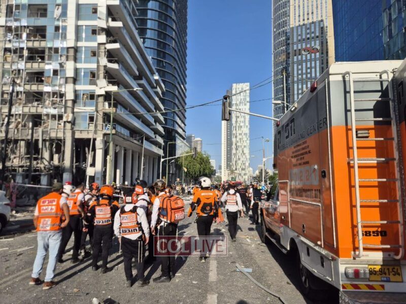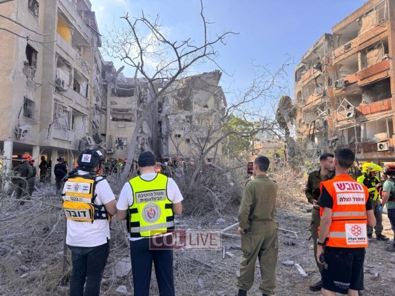 Following direct missile strikes on residential buildings in central Israel, United Hatzalah volunteers provided initial treatment to three women in serious condition, two men in moderate condition, and more than 50 additional people who sustained mild injuries, including many suffering from emotional shock.