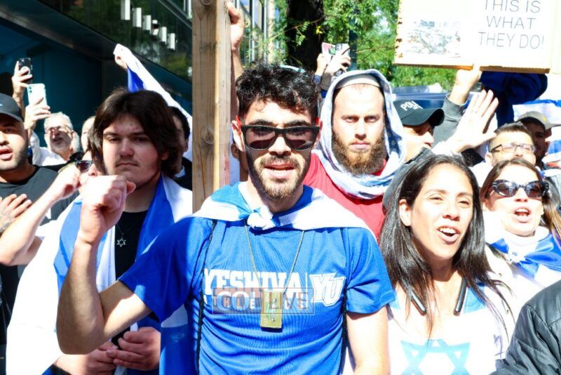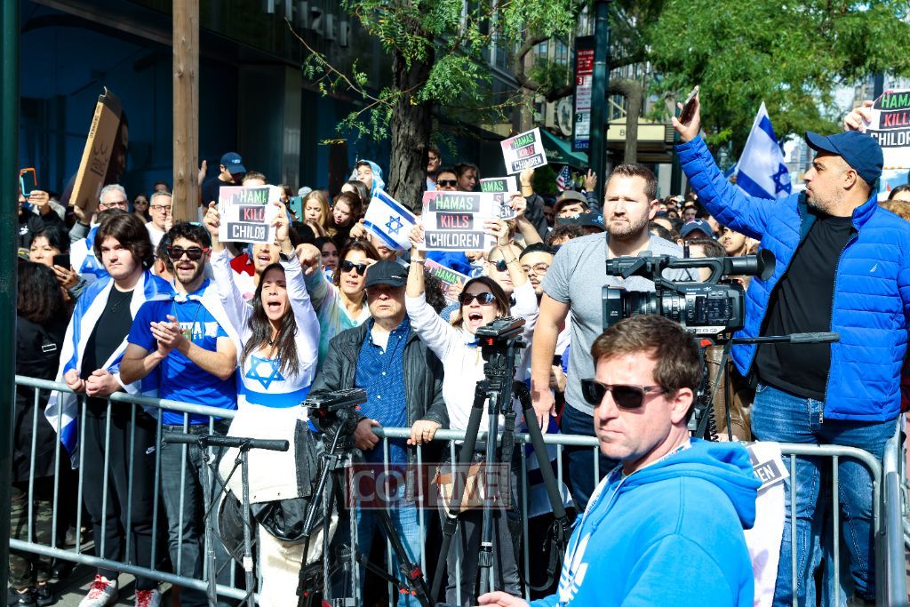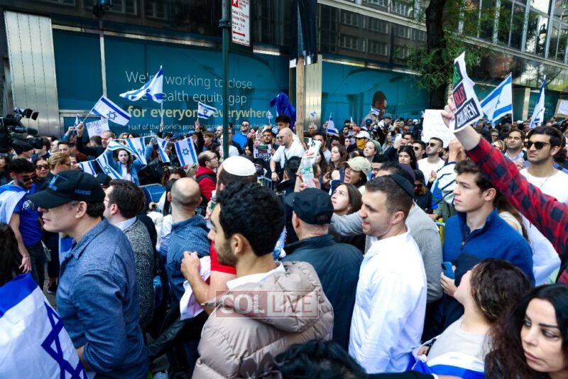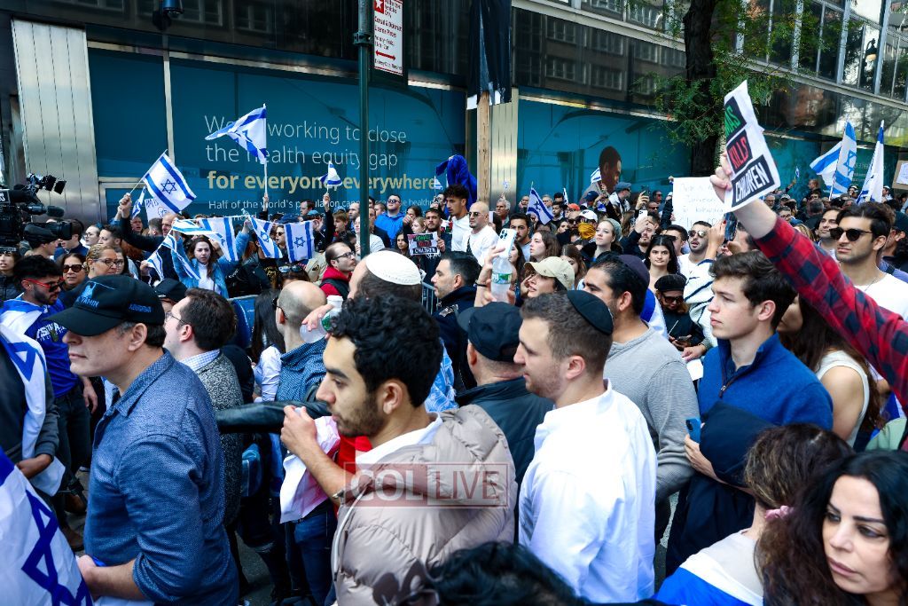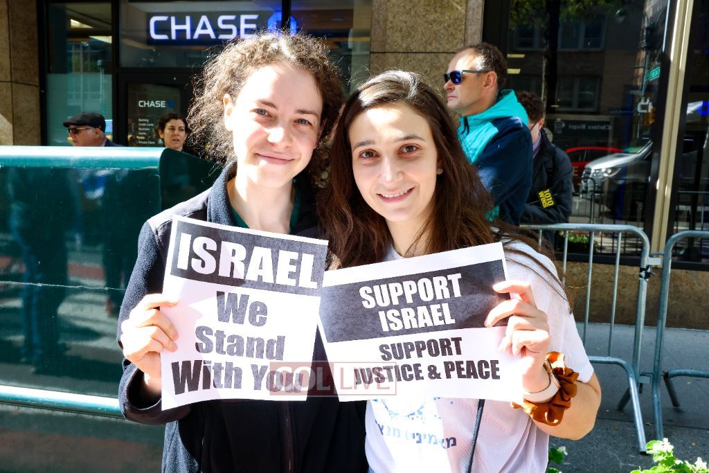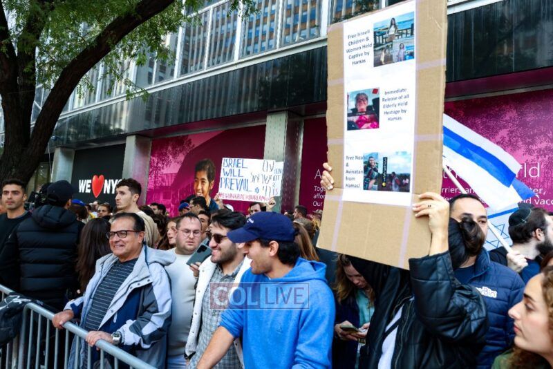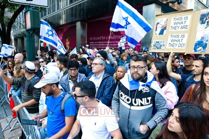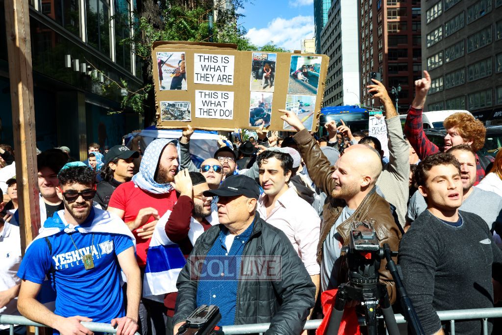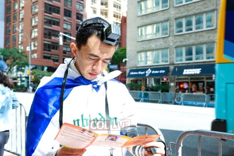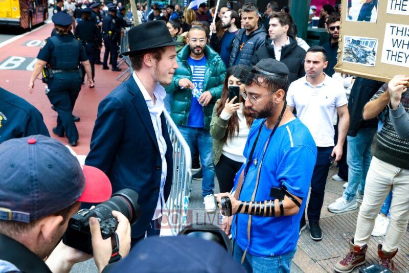 Supporters of Israel gathered in Midtown Manhattan on Monday to support the country and protest the attacks by Hamas, they were met by Chabad bochurim offering a chance to don Tefillin in the merit of the safety of Israel. Full Story, Photos, Video