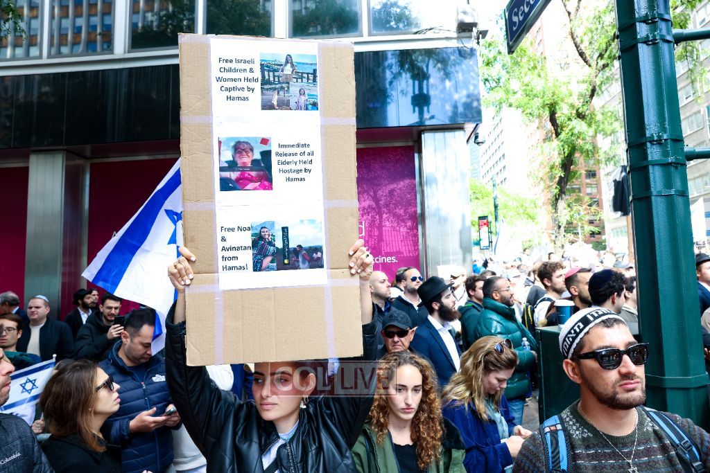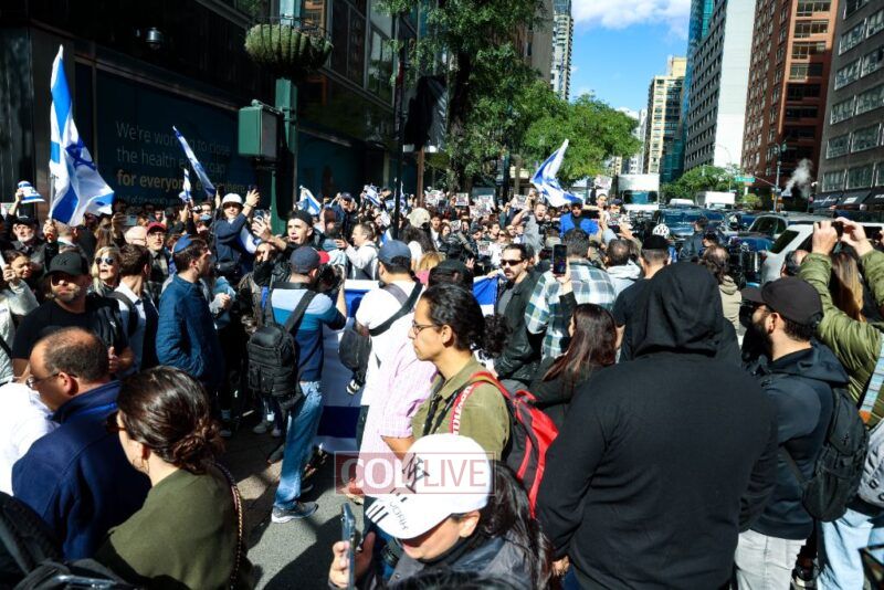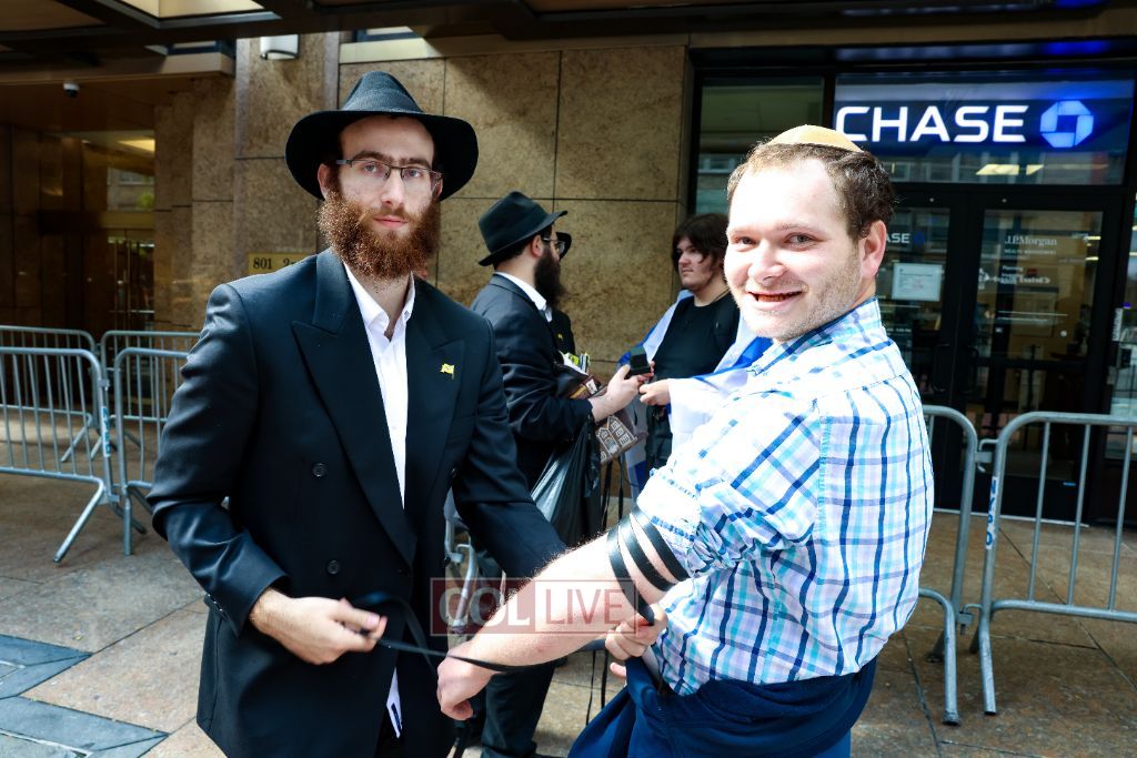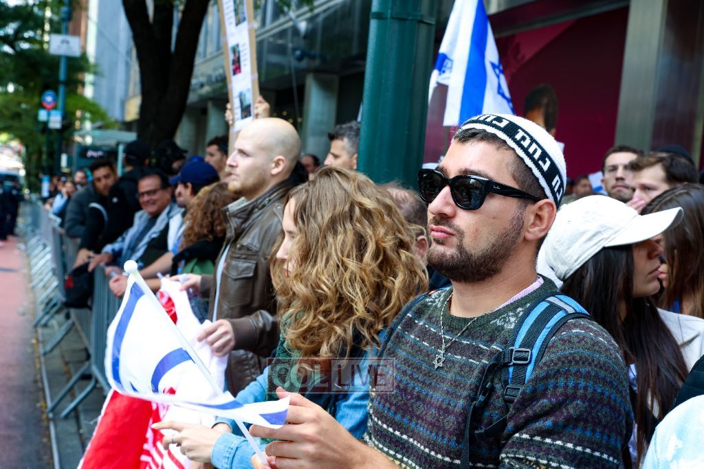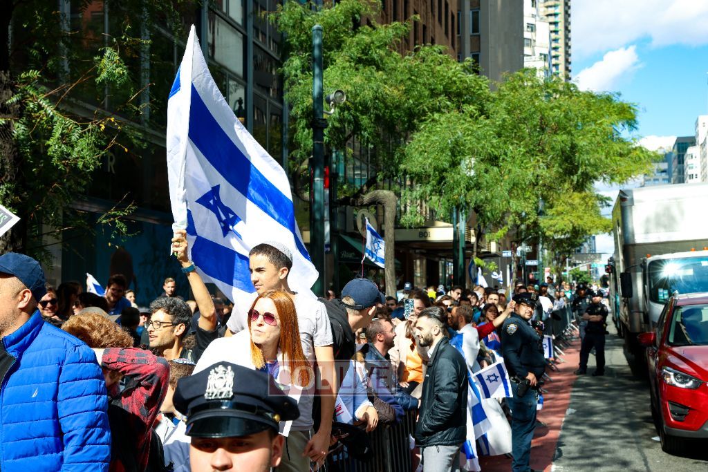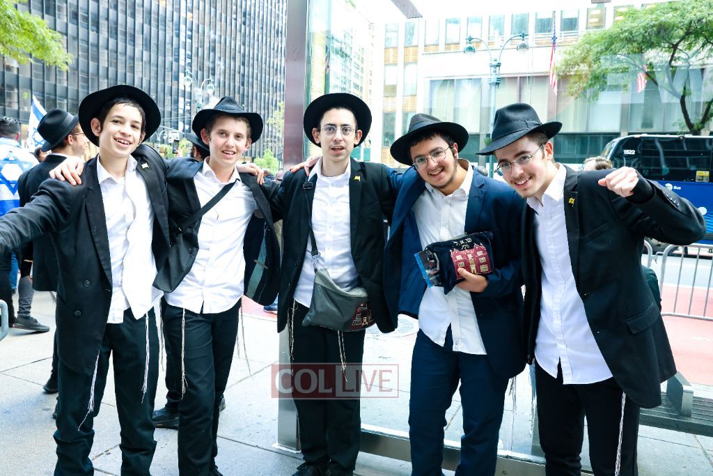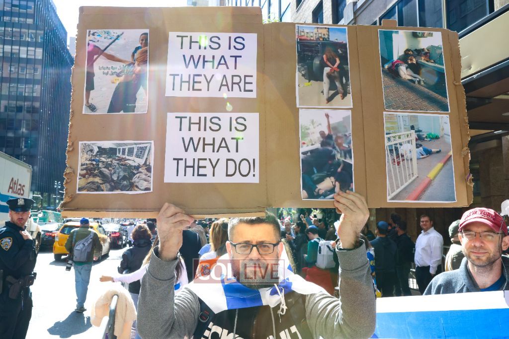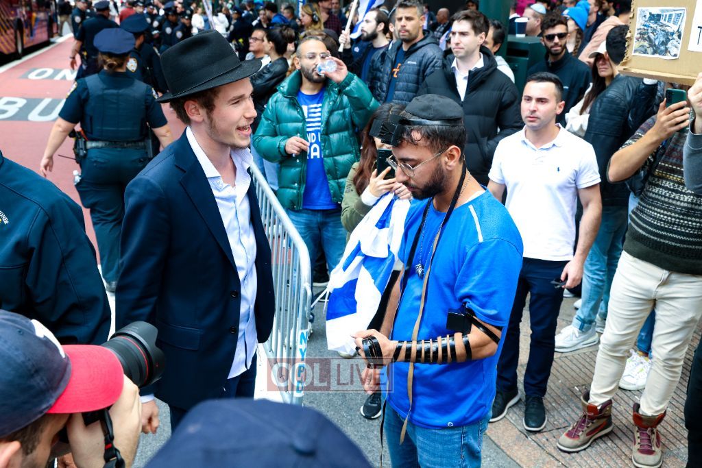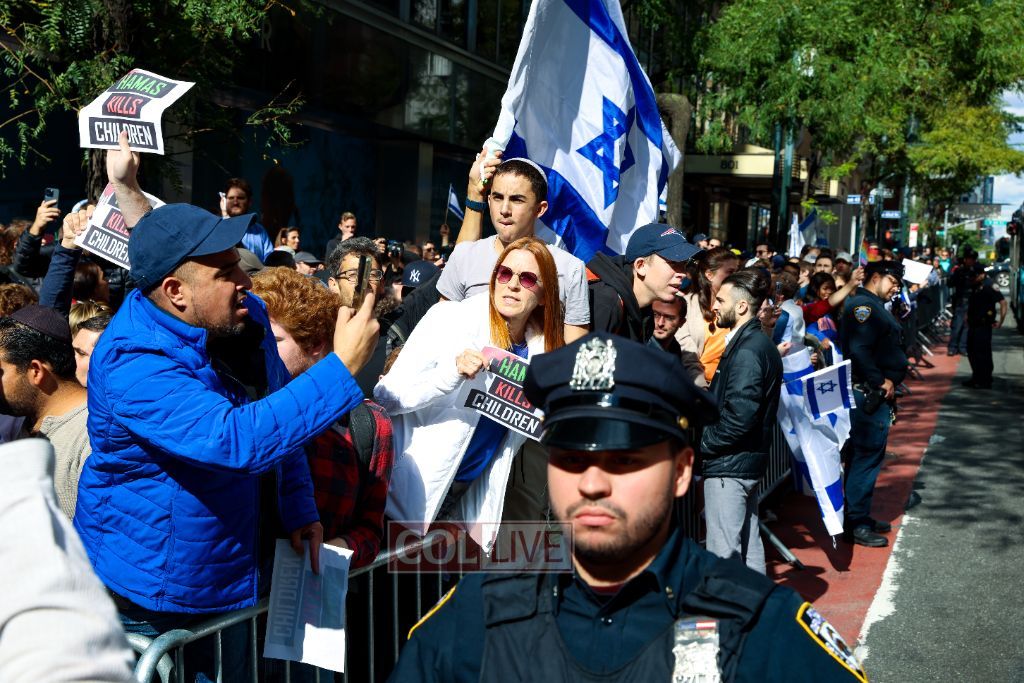 Supporters of Israel gathered in Midtown Manhattan on Monday to support the country and protest the attacks by Hamas, they were met by Chabad bochurim offering a chance to don Tefillin in the merit of the safety of Israel. Full Story, Photos, Video