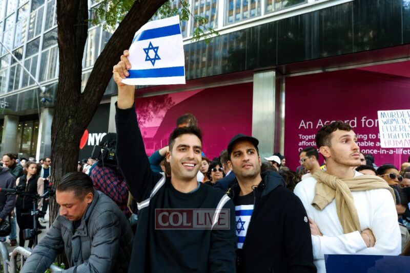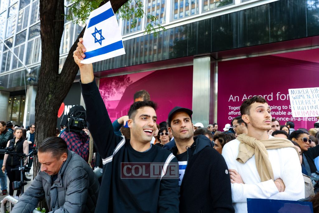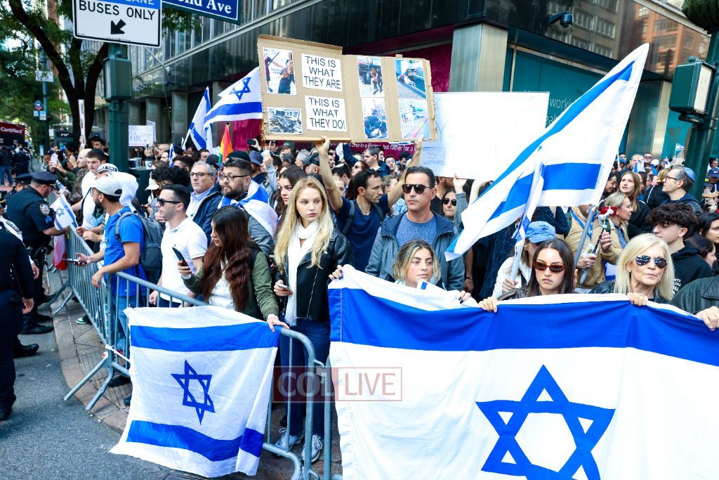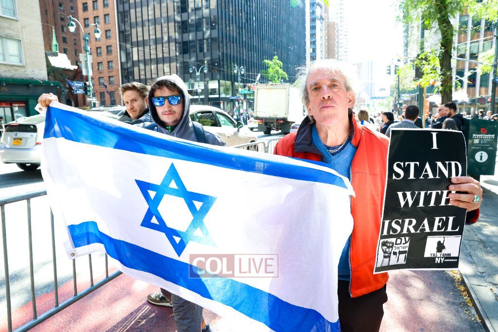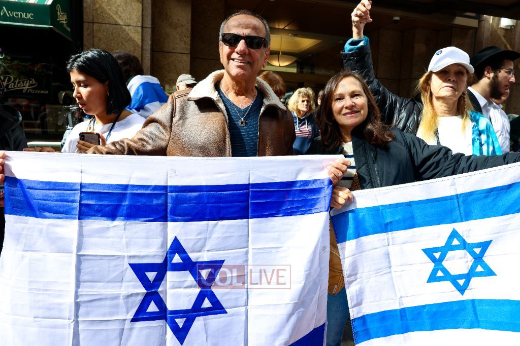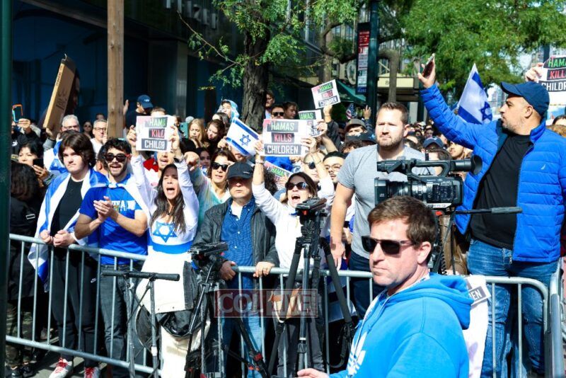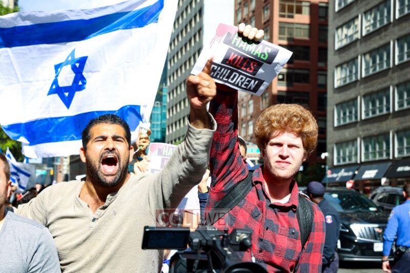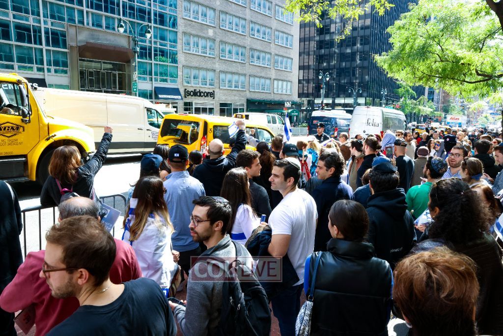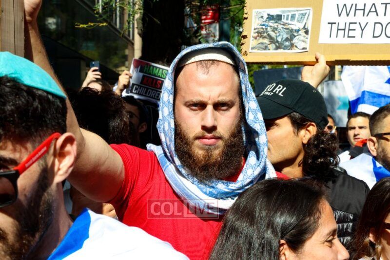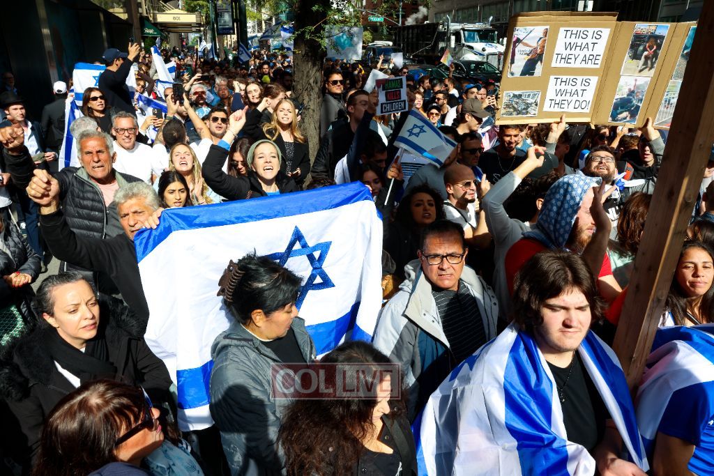 Supporters of Israel gathered in Midtown Manhattan on Monday to support the country and protest the attacks by Hamas, they were met by Chabad bochurim offering a chance to don Tefillin in the merit of the safety of Israel. Full Story, Photos, Video