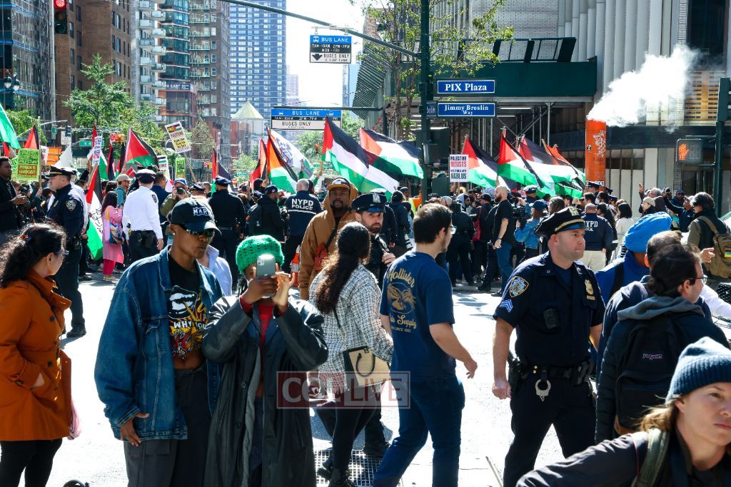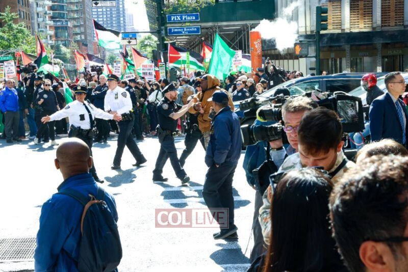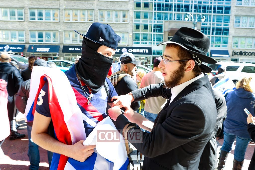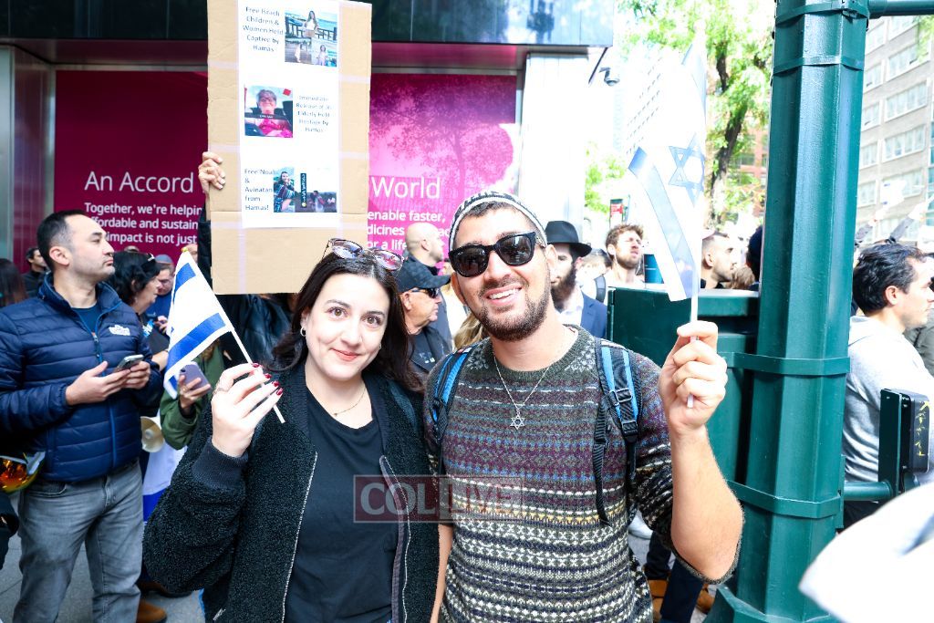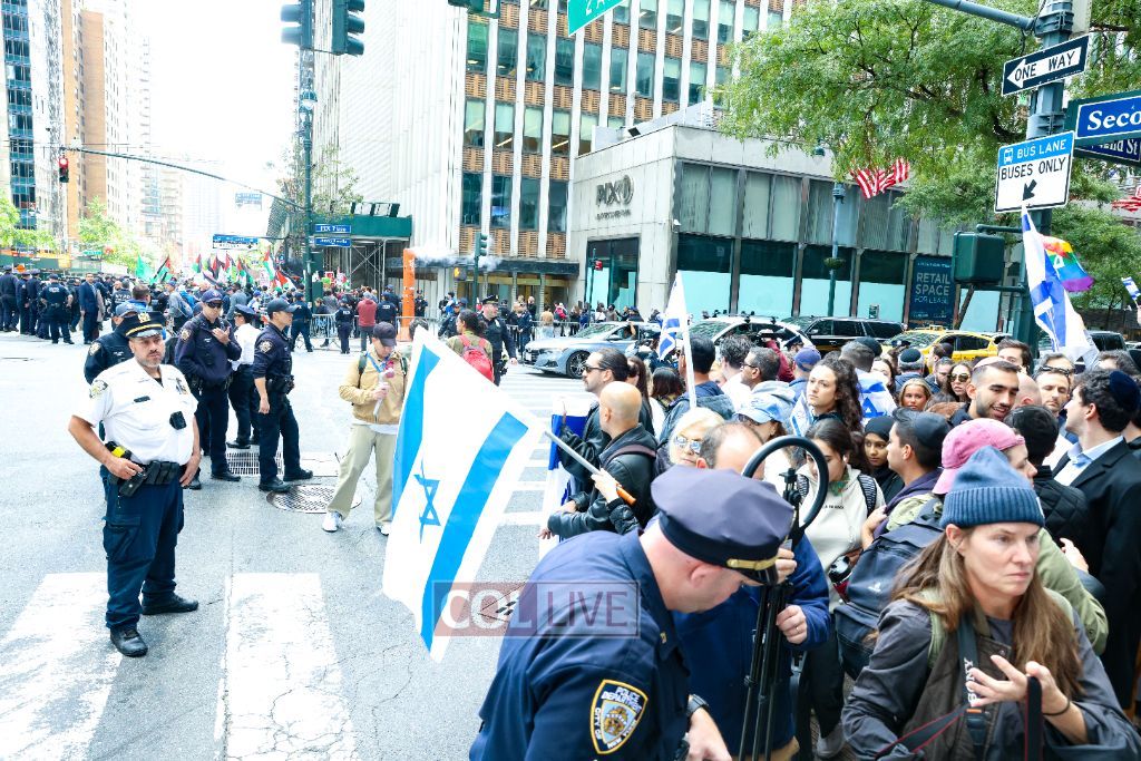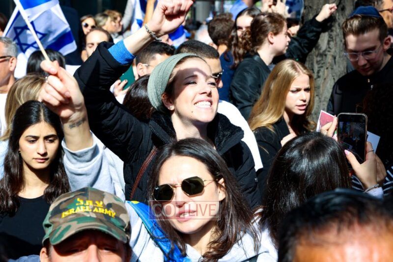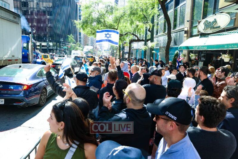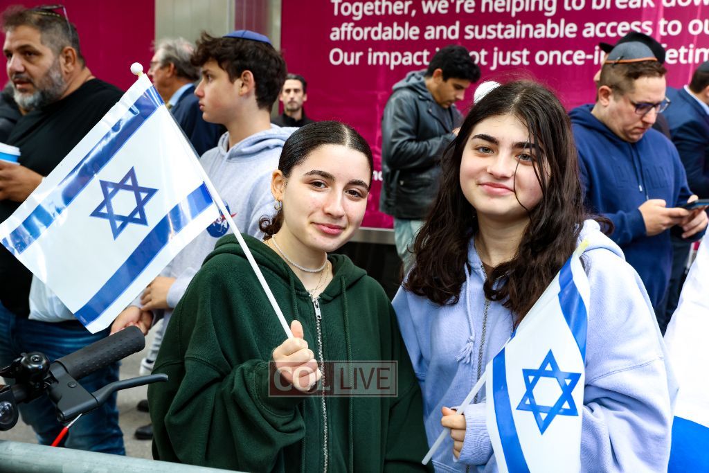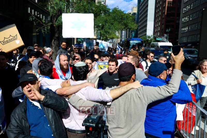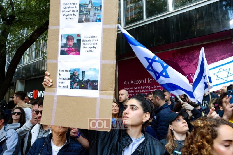 Supporters of Israel gathered in Midtown Manhattan on Monday to support the country and protest the attacks by Hamas, they were met by Chabad bochurim offering a chance to don Tefillin in the merit of the safety of Israel. Full Story, Photos, Video