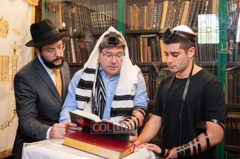 Rabbi Kuti Feldman explained how Chassidim prepared before entering Yechidus with the Rebbe and how one should approach the sanctity inside. Dressed in tallit and tefillin, the consul prayed in the Rebbe’s room and offered a personal prayer. Thanks were given to Rabbi Chaim Baruch Halberstam, the manager responsible for the Rebbe’s room.