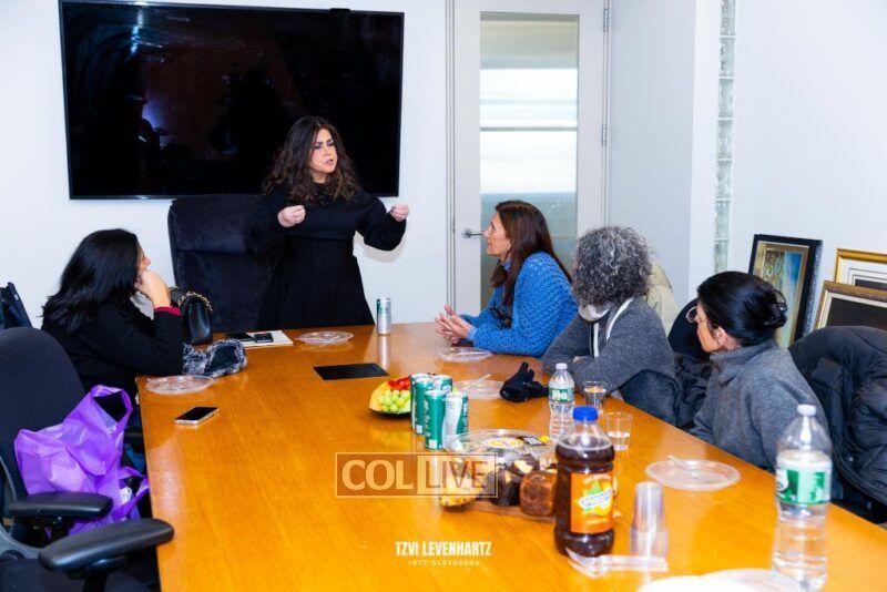 Following the tour they made their way to influencer and chef Chanie Apfelbaum, Busy in Brooklyn, who has two kosher cookbooks to her credit and well-known globally for her colorful and delicious recipes. She prepared a lovely full-course dinner for them while they talked about faith and strength in their struggles to bring their children home. Chanie prepared the table with the hostages symbols and memorials, adding to the meaning of the event.