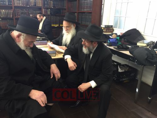 Accompanied by Rabbi Dovid Leib Grossbaum, the former member of the Israeli Knesset visited the NCFJE offices on Eastern Parkway, where he spoke with Rabbis Sholom Ber Hecht and Shea Hecht.