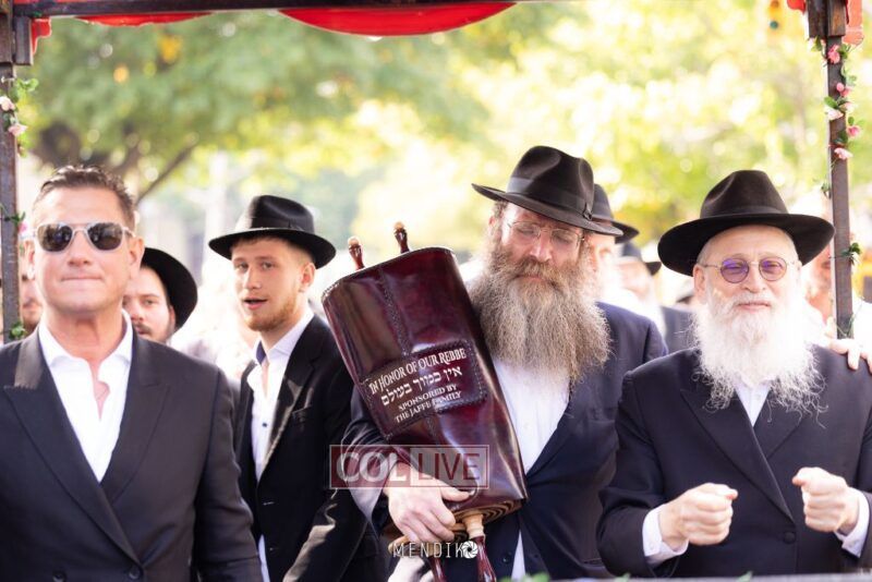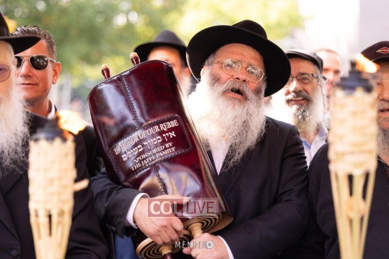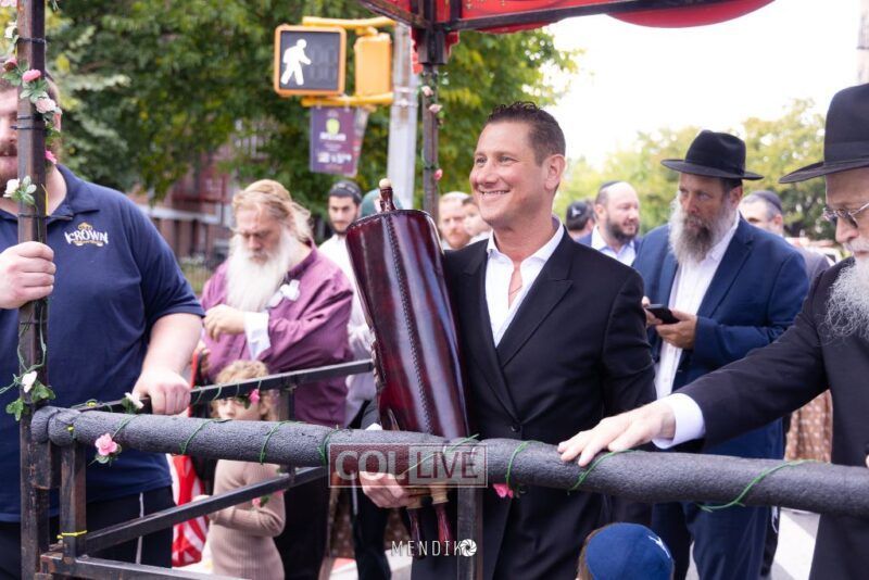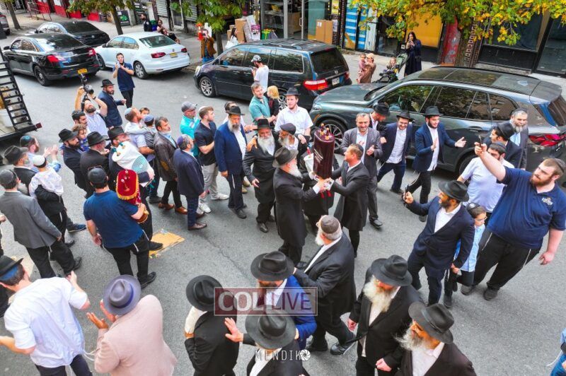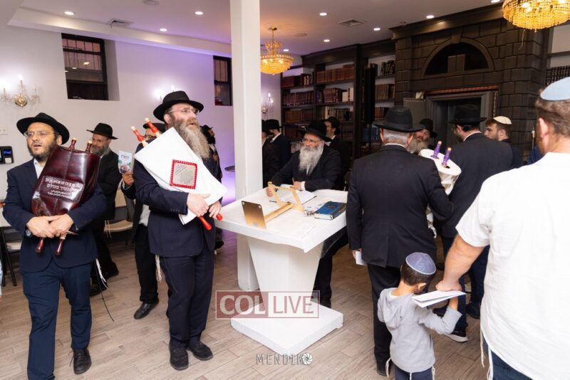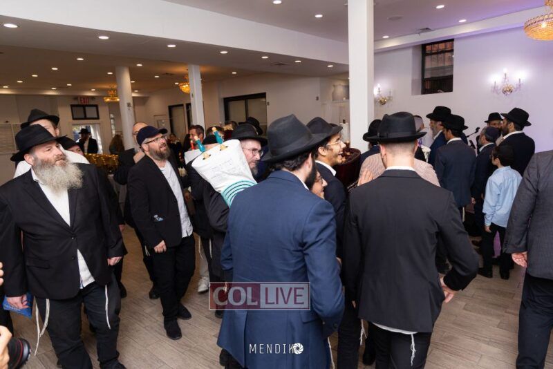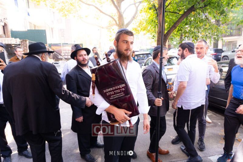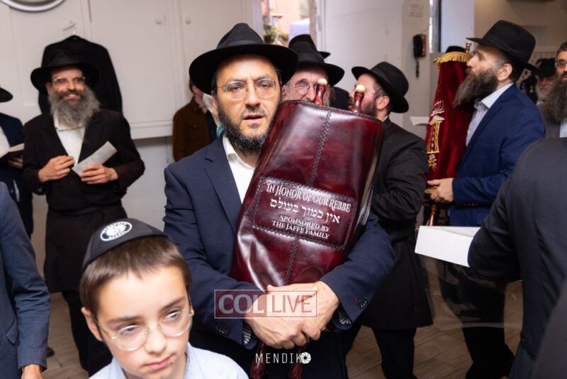 A new Sefer Torah was welcomed with great joy, singing and dancing at the Shull on Albany Avenue in Crown Heights recently, dedicated by the Jaffe family in honor of the Rebbe. Photos