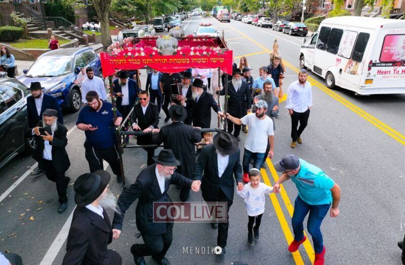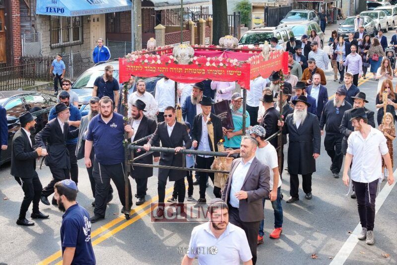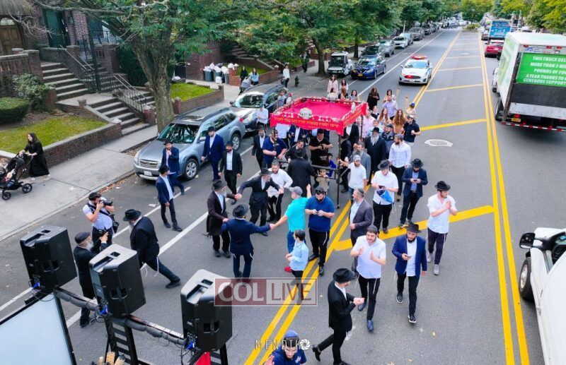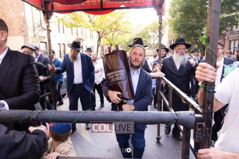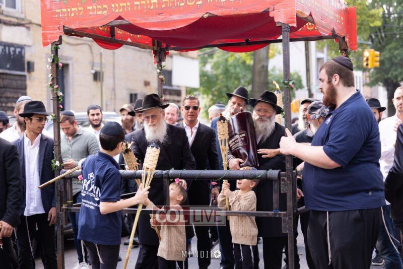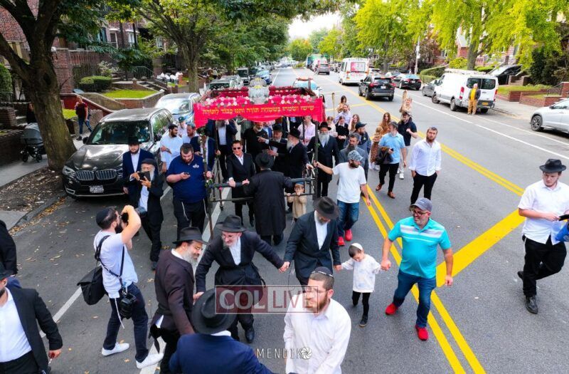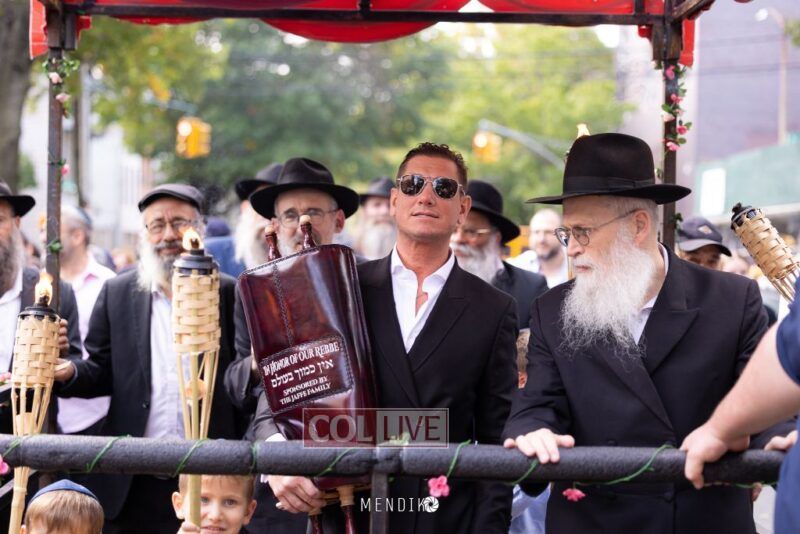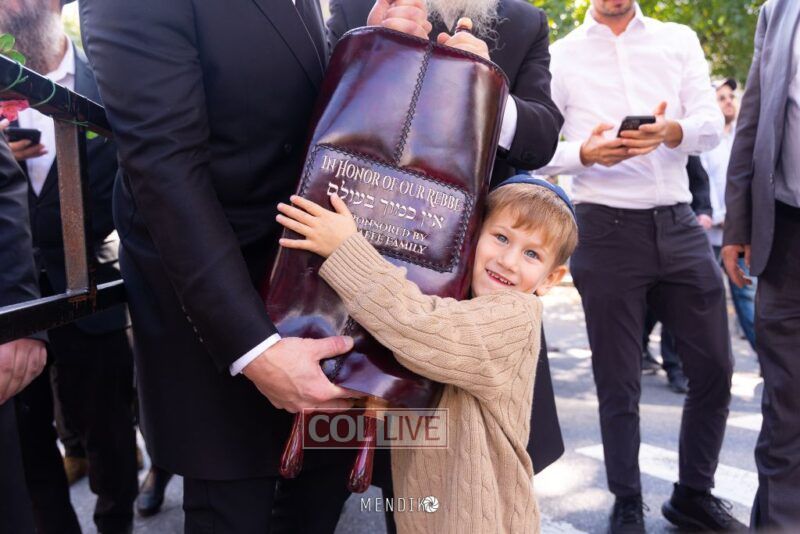 A new Sefer Torah was welcomed with great joy, singing and dancing at the Shull on Albany Avenue in Crown Heights recently, dedicated by the Jaffe family in honor of the Rebbe. Photos