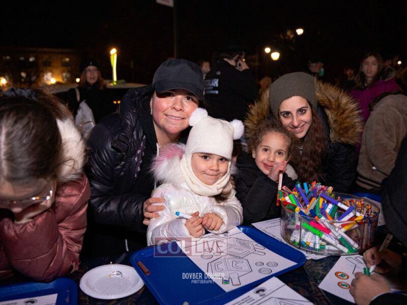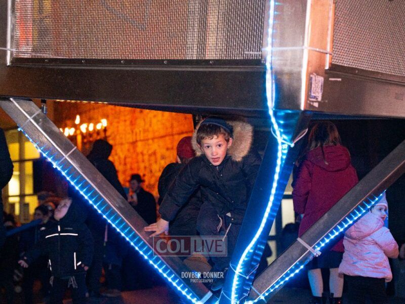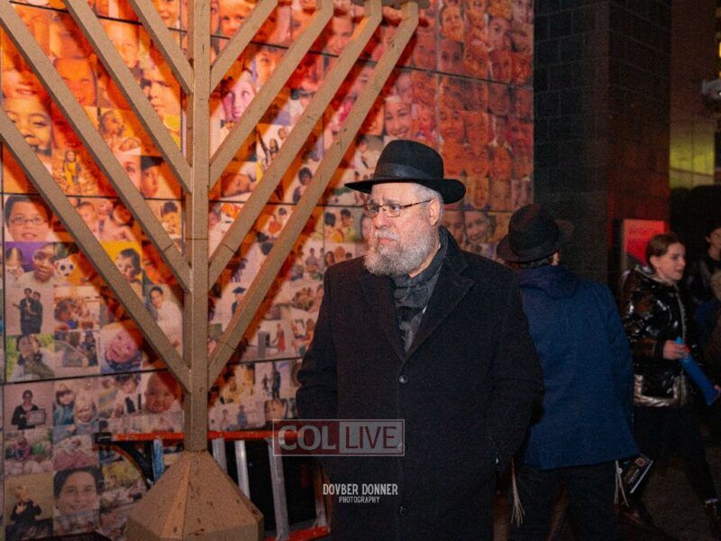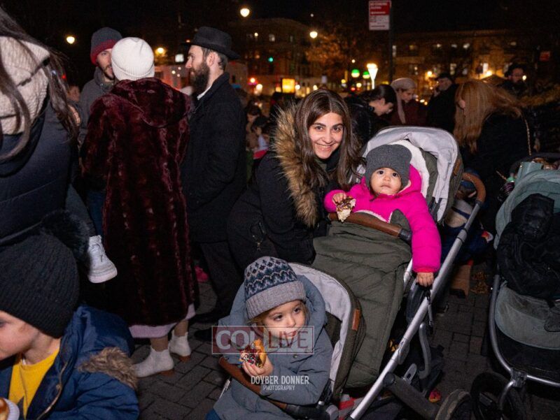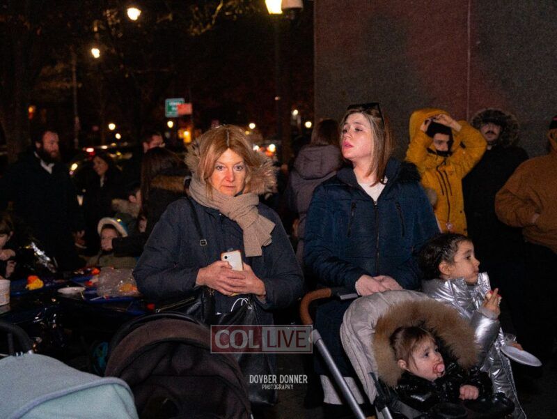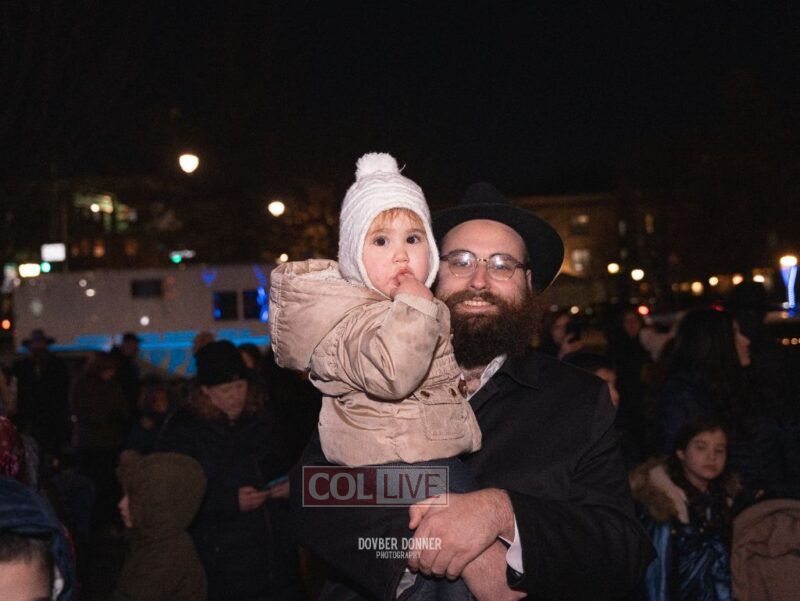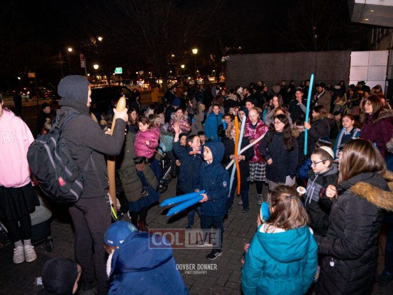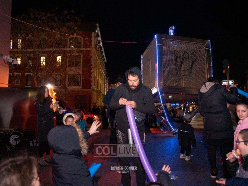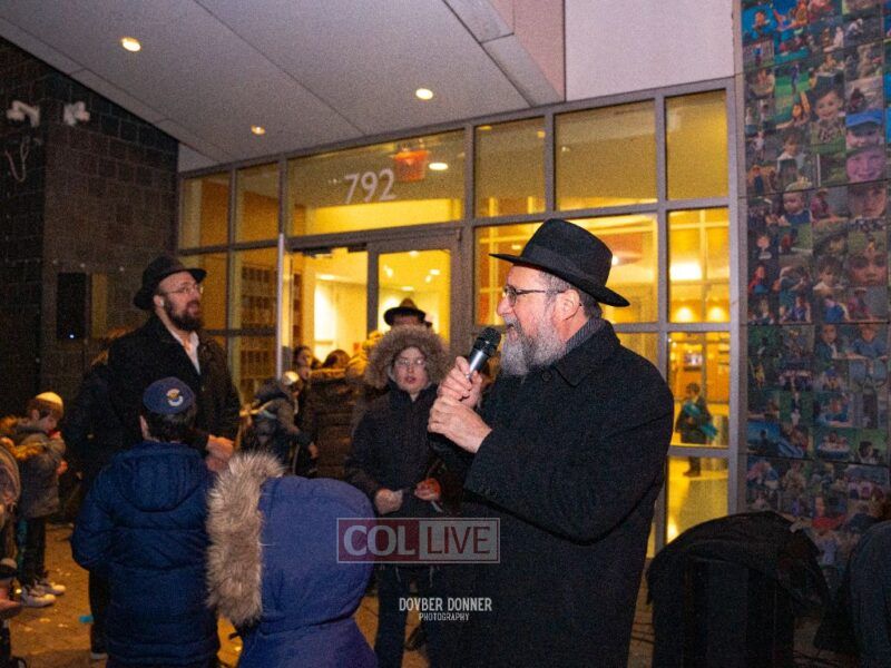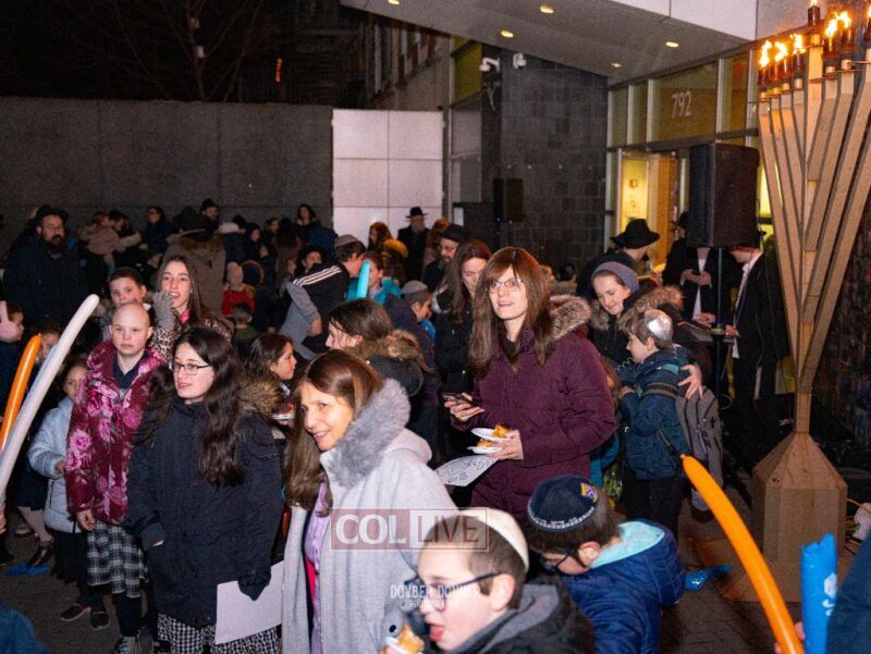 The celebration took place in front of the iconic Dreidel sculpture, the Jewish and Chanukah-related symbol that stands proudly on Eastern Parkway in front of the Museum, and which has become known as a Crown Heights landmark. This year the Dreidel was lit up with colored lights in commemoration of the holiday and was seen by tens of thousands of drivers and passersby on the main thoroughfare of Eastern Parkway.