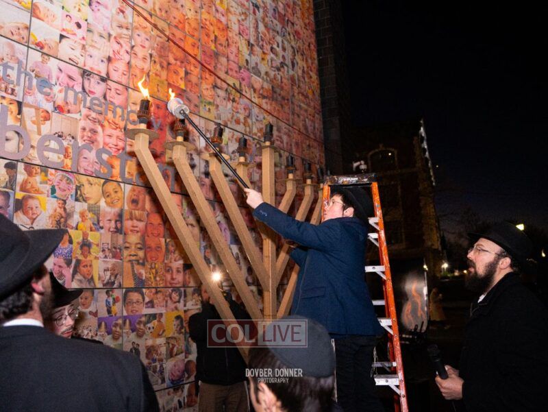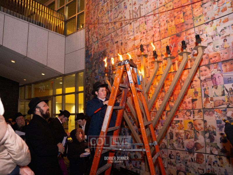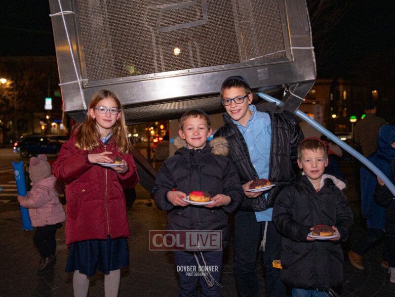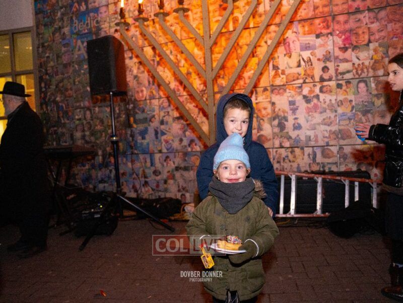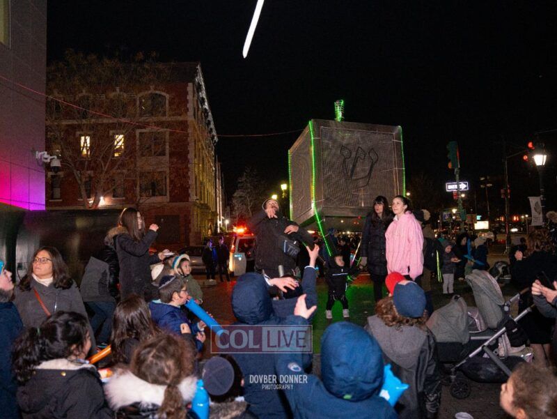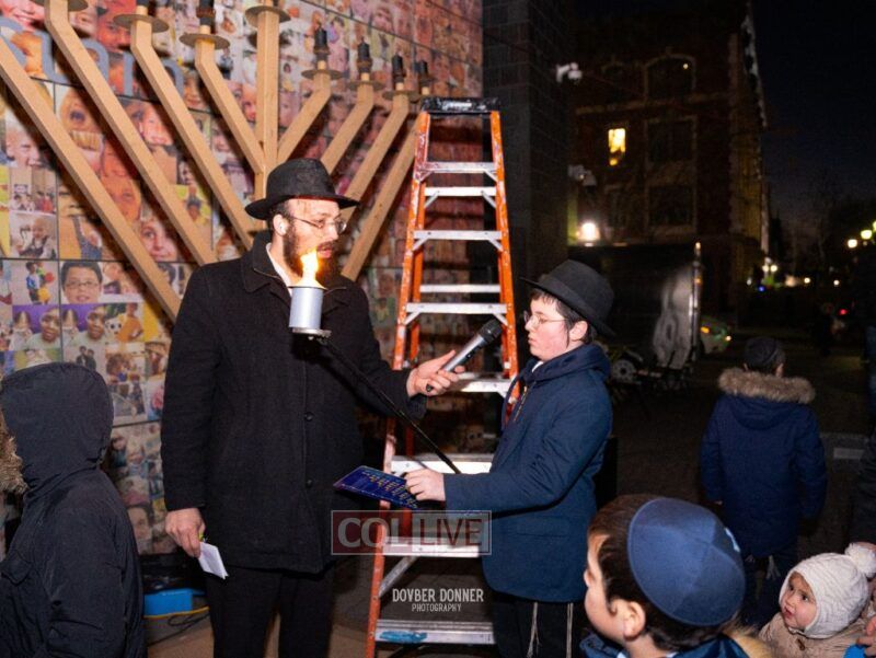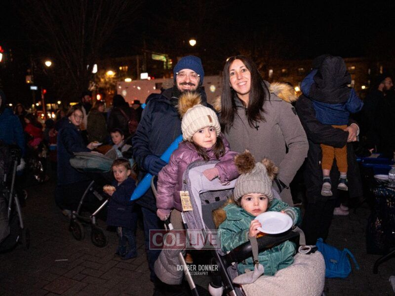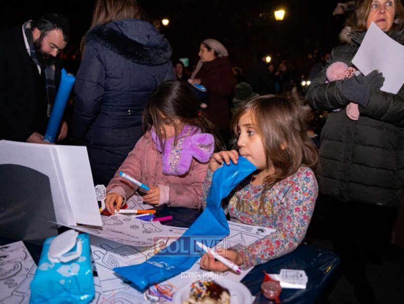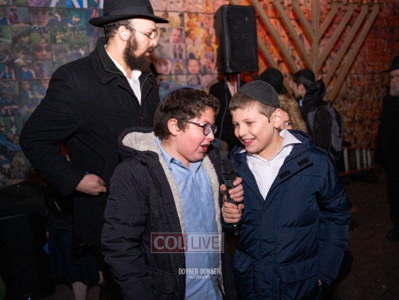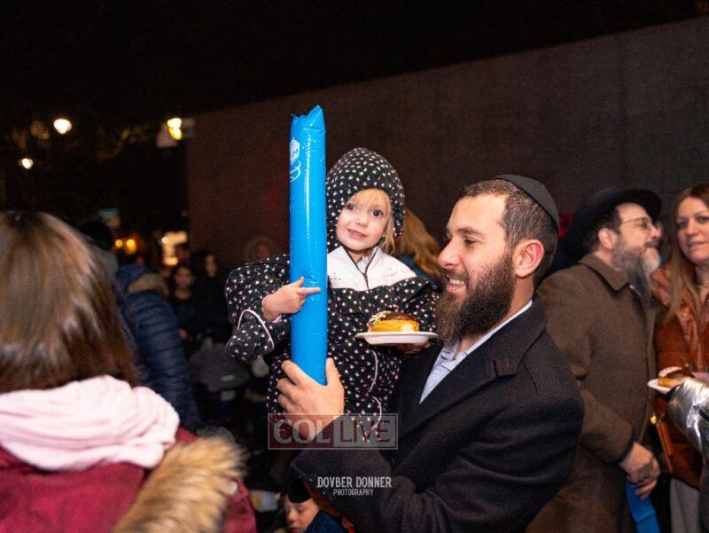 The celebration took place in front of the iconic Dreidel sculpture, the Jewish and Chanukah-related symbol that stands proudly on Eastern Parkway in front of the Museum, and which has become known as a Crown Heights landmark. This year the Dreidel was lit up with colored lights in commemoration of the holiday and was seen by tens of thousands of drivers and passersby on the main thoroughfare of Eastern Parkway.