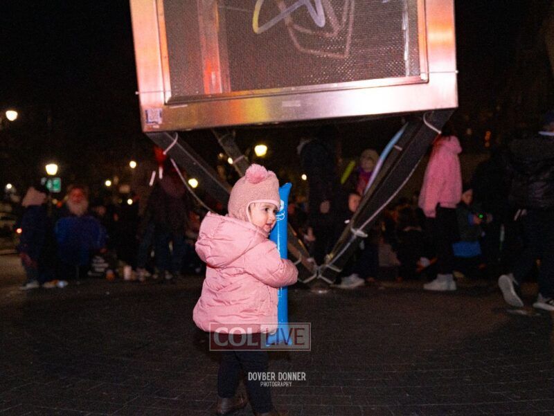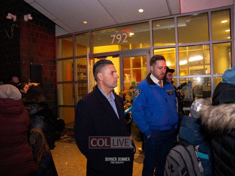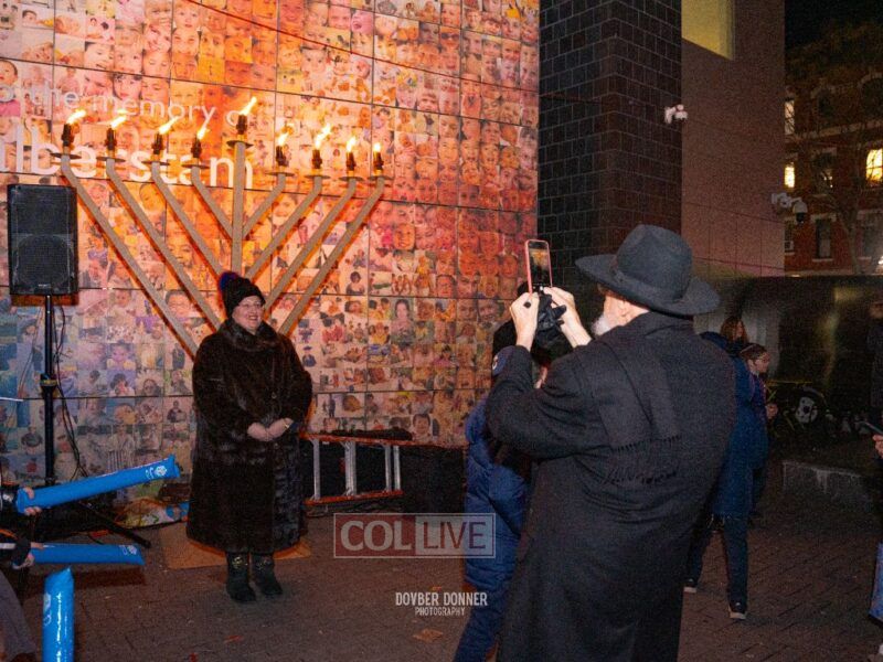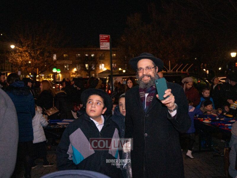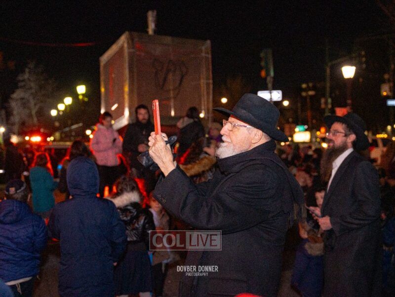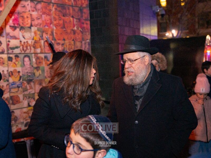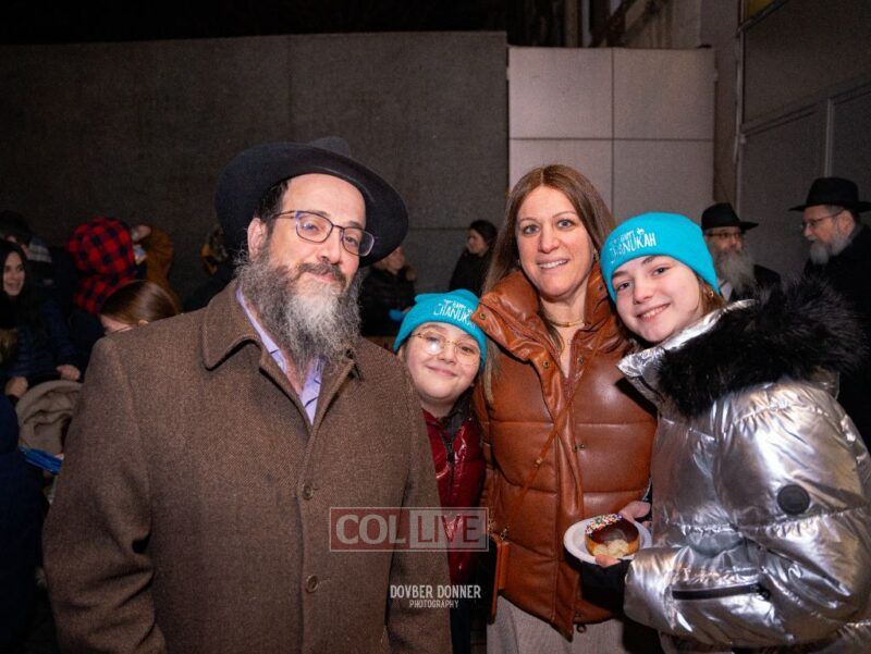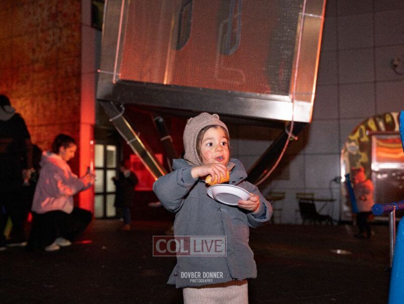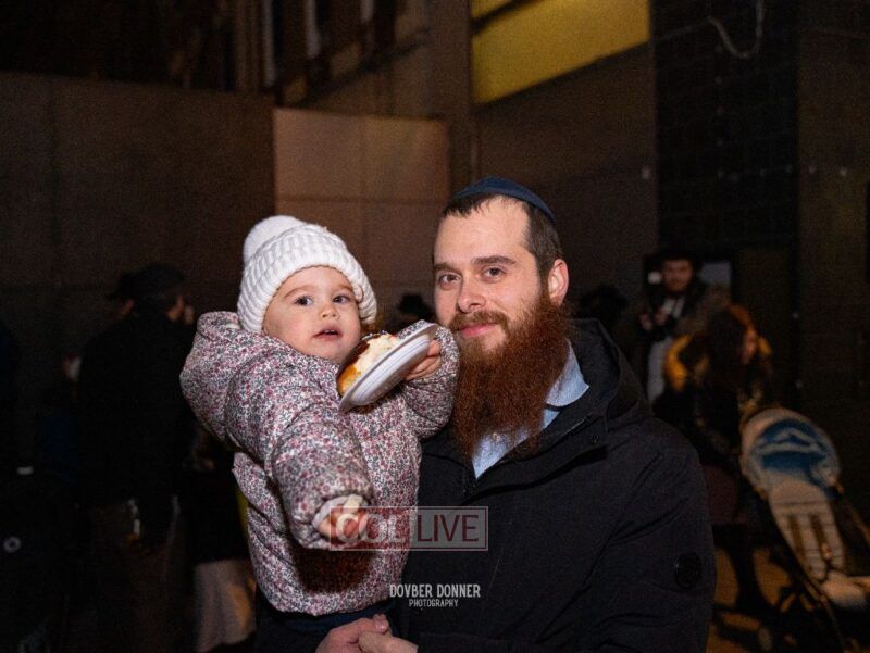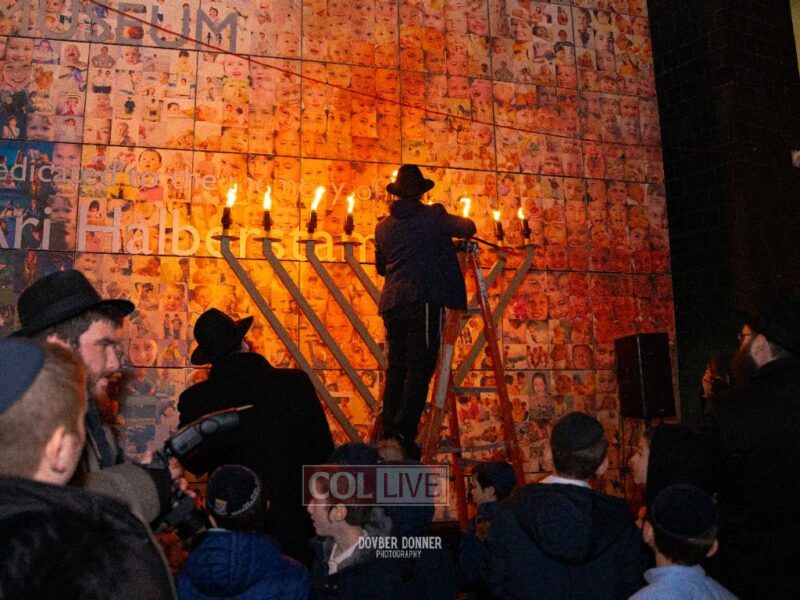 The celebration took place in front of the iconic Dreidel sculpture, the Jewish and Chanukah-related symbol that stands proudly on Eastern Parkway in front of the Museum, and which has become known as a Crown Heights landmark. This year the Dreidel was lit up with colored lights in commemoration of the holiday and was seen by tens of thousands of drivers and passersby on the main thoroughfare of Eastern Parkway.