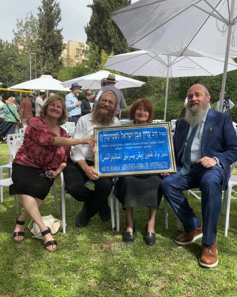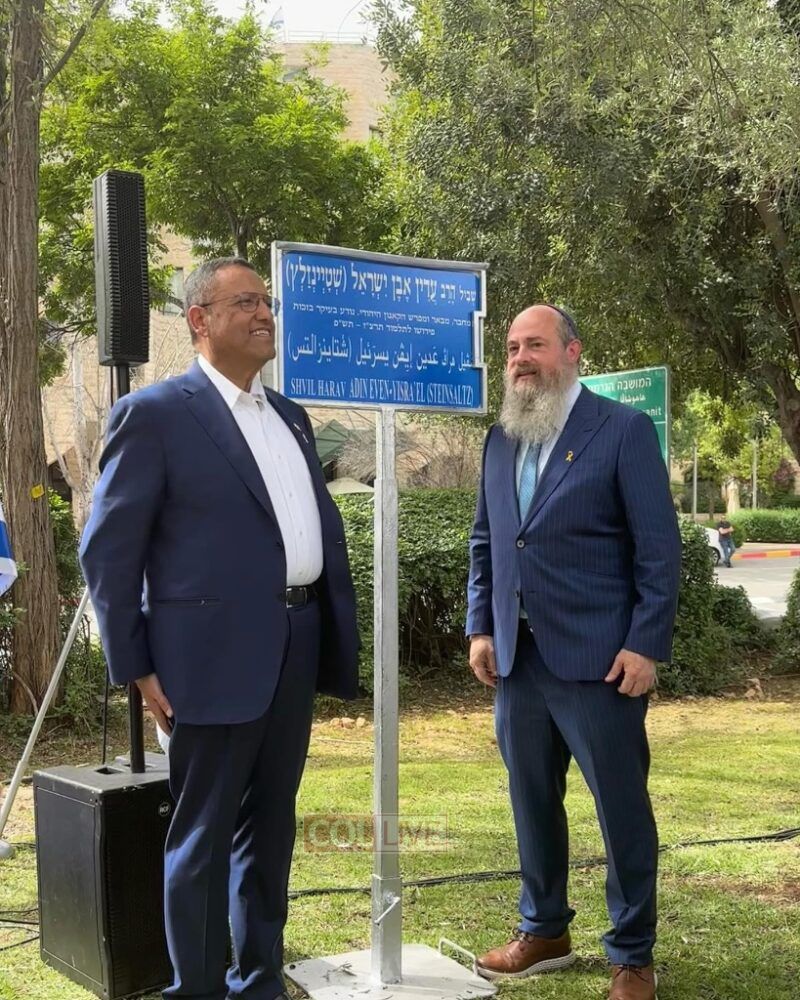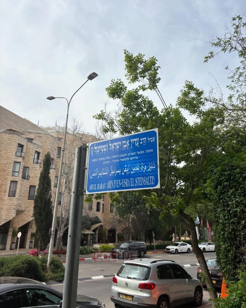 The new street, Shvil Harav Adin Even-Israel Steinsaltz, is located by Gan Hapaamon on Jabotinsky Street in the Talbiya neighborhood of Jerusalem, opposite the Inbal Hotel. It stands as a tribute to Rabbi Even-Israel’s enduring legacy in Torah scholarship and education.