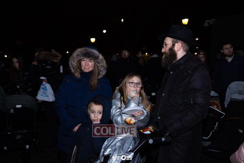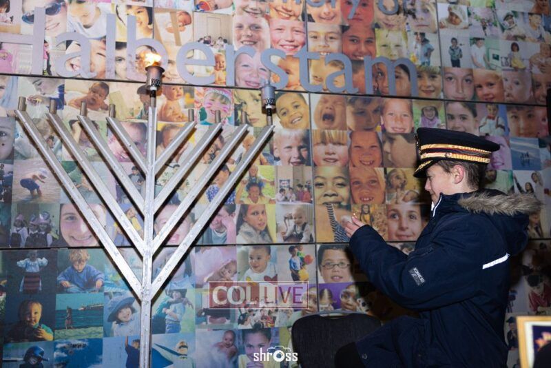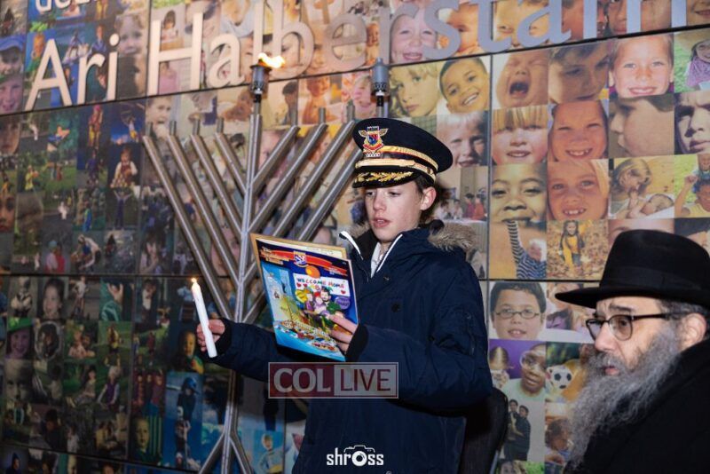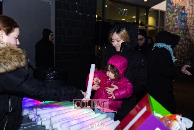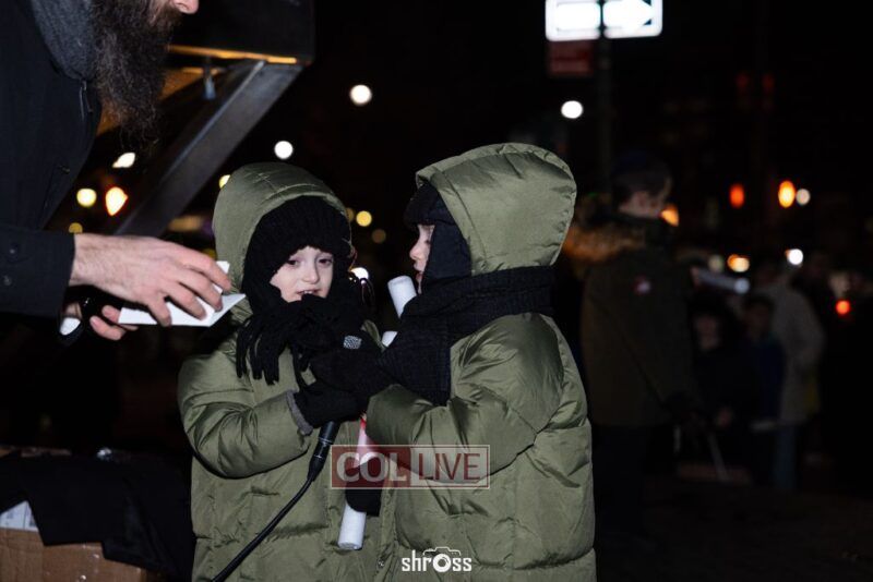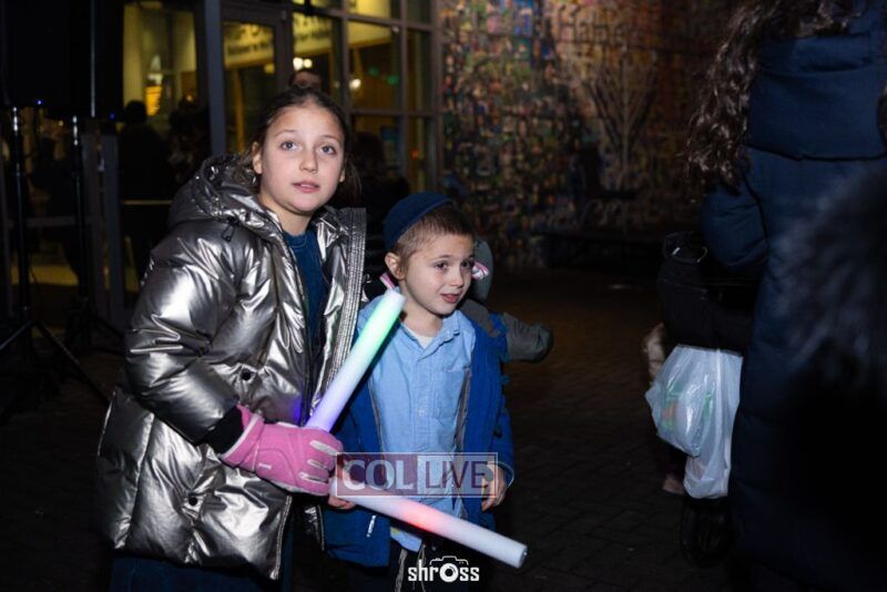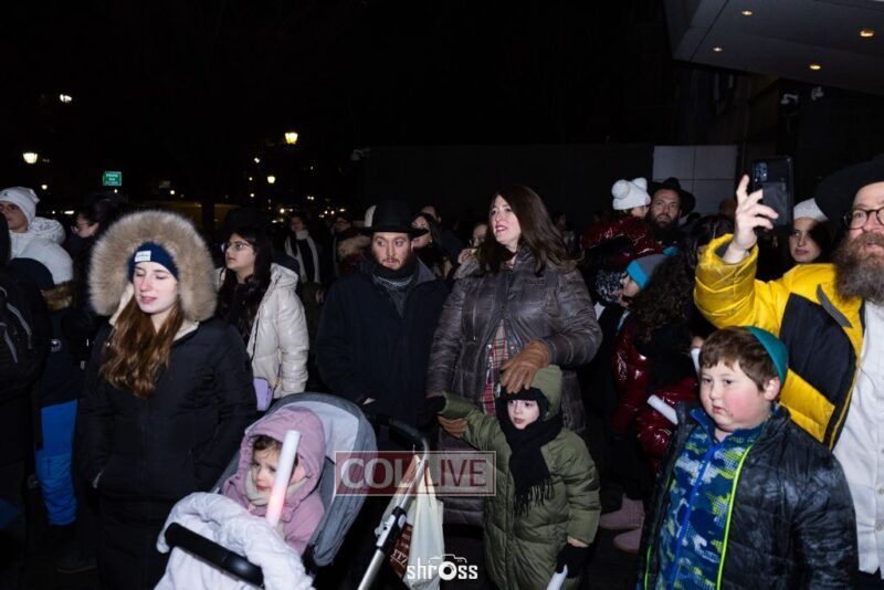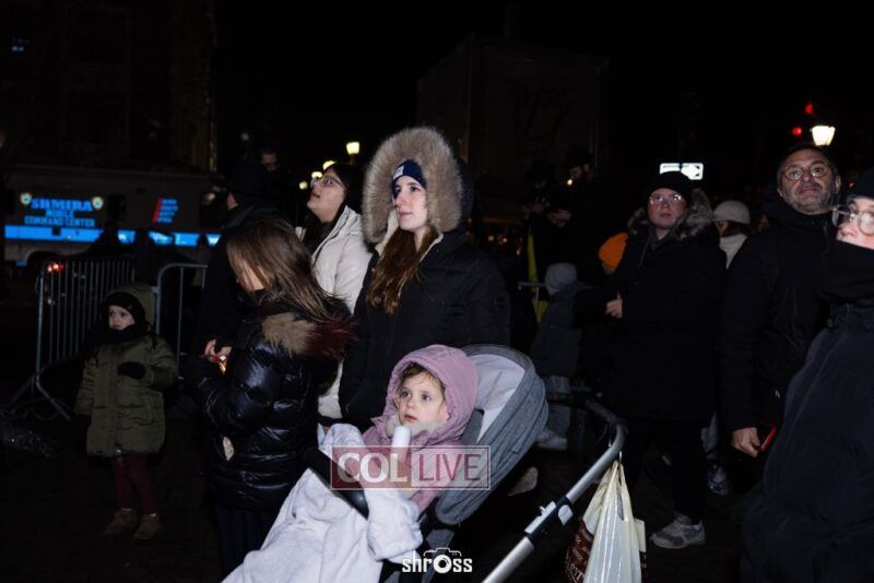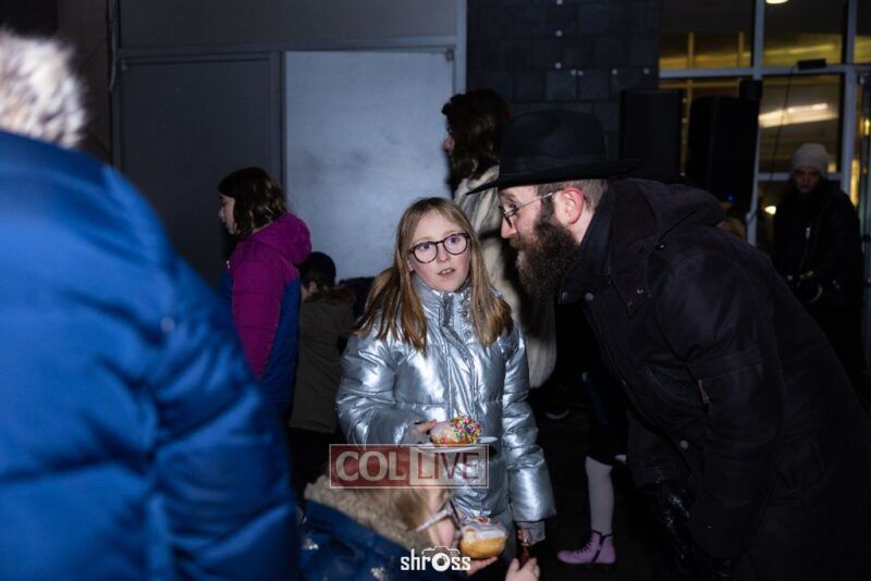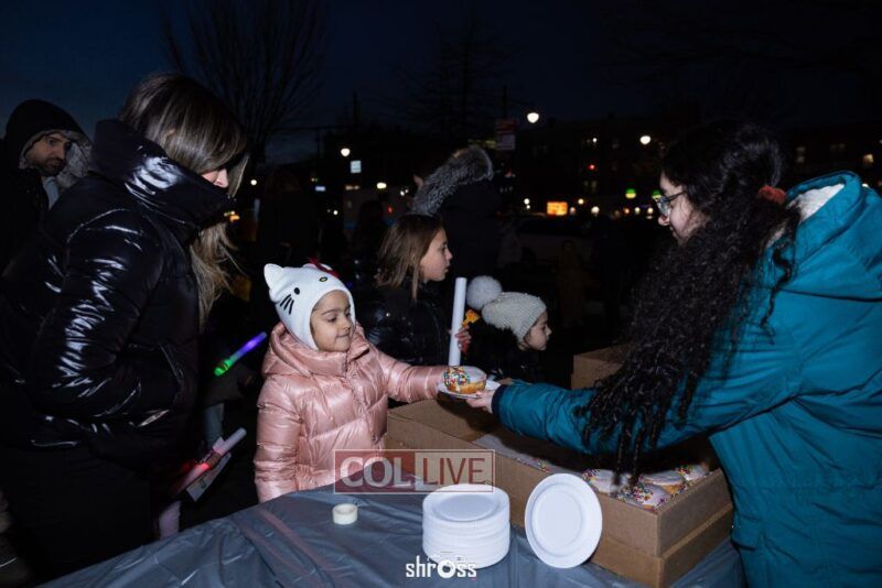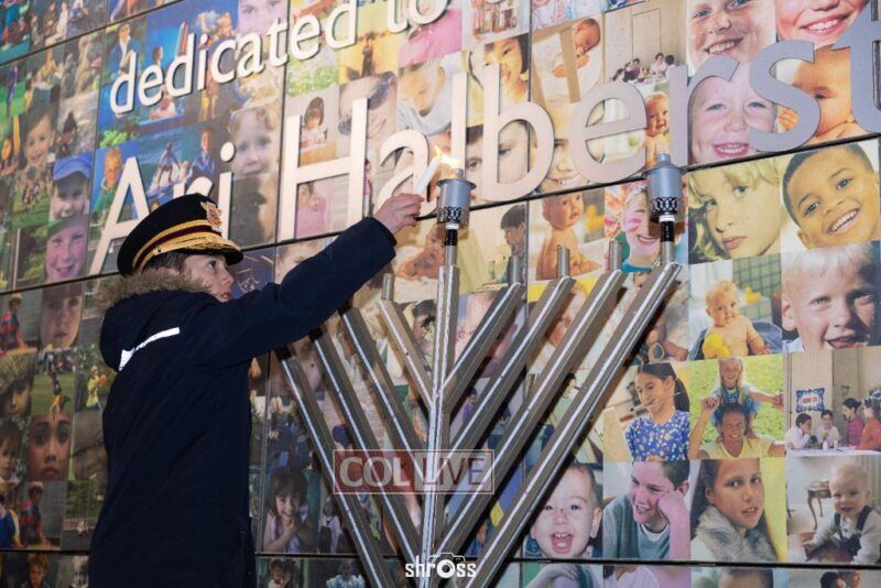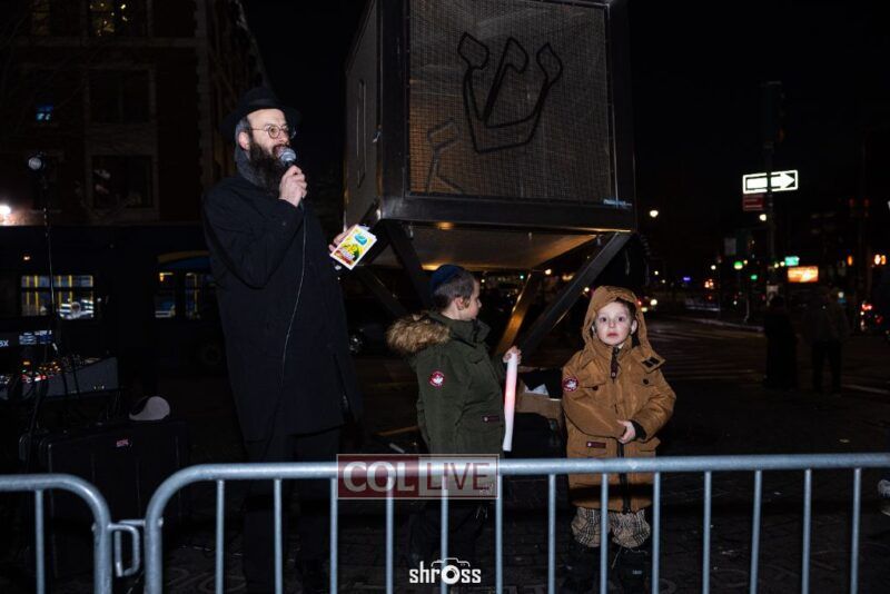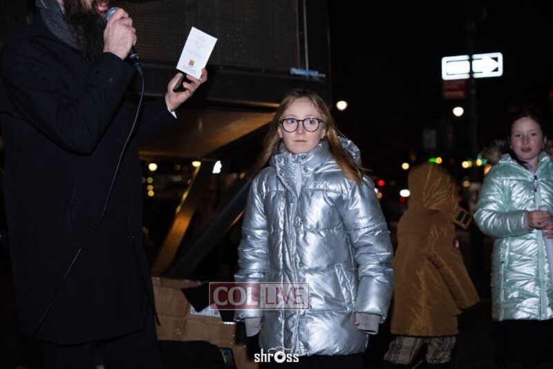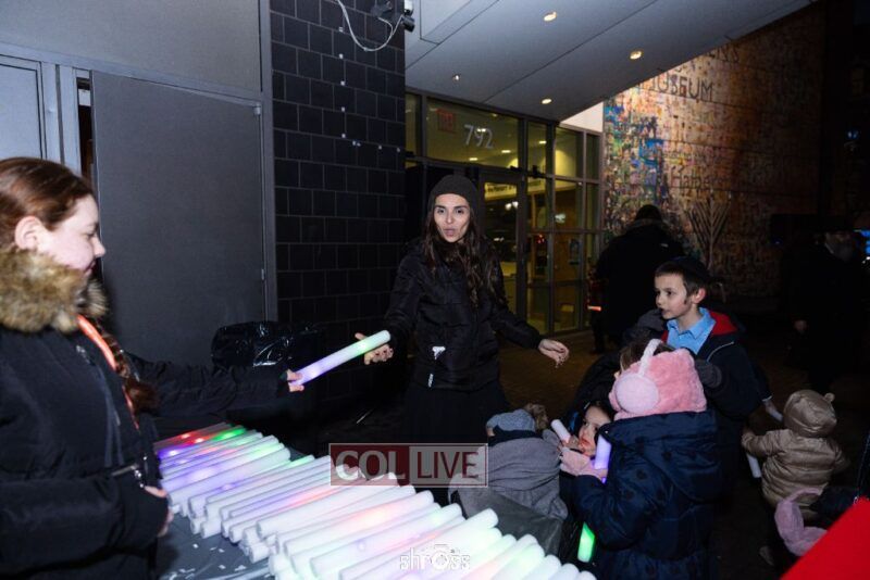 Families gathered on the Plaza at the Jewish Children’s Museum on the first night of Chanukah for a community Menorah lighting with entertainment, music and donuts. Photos