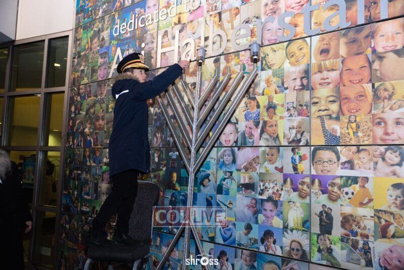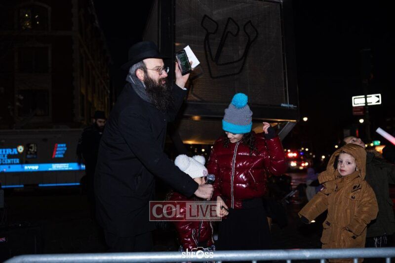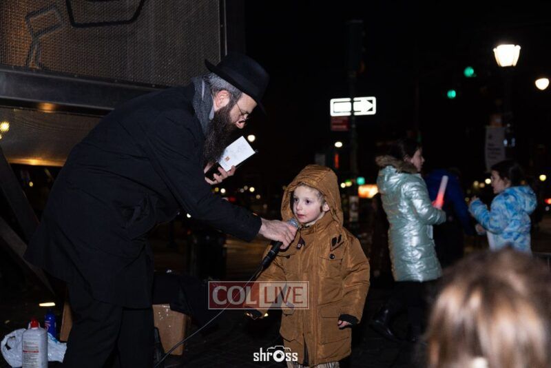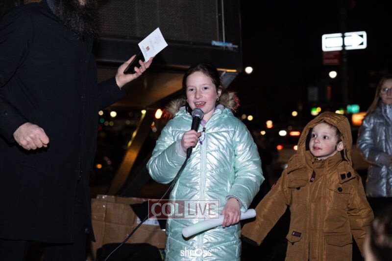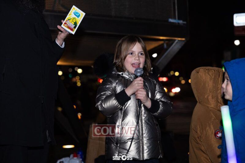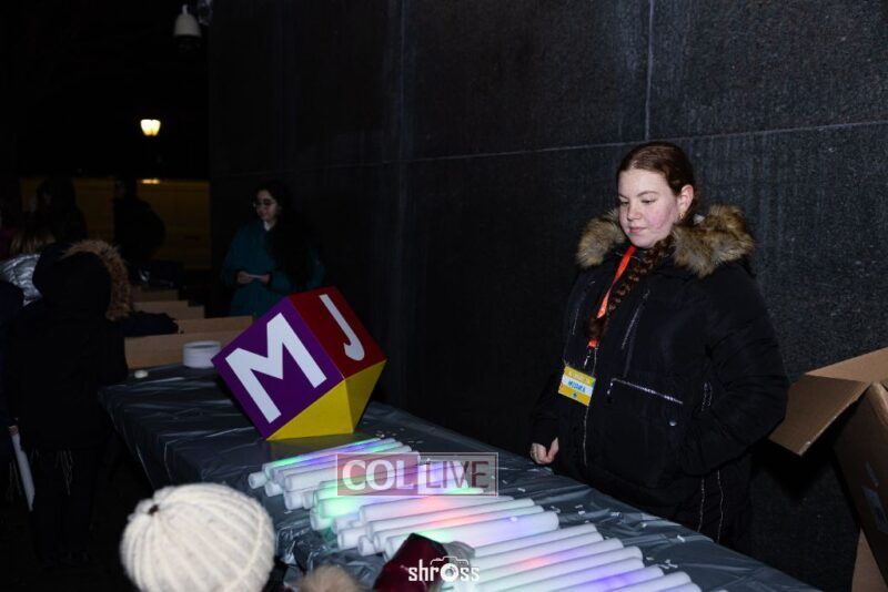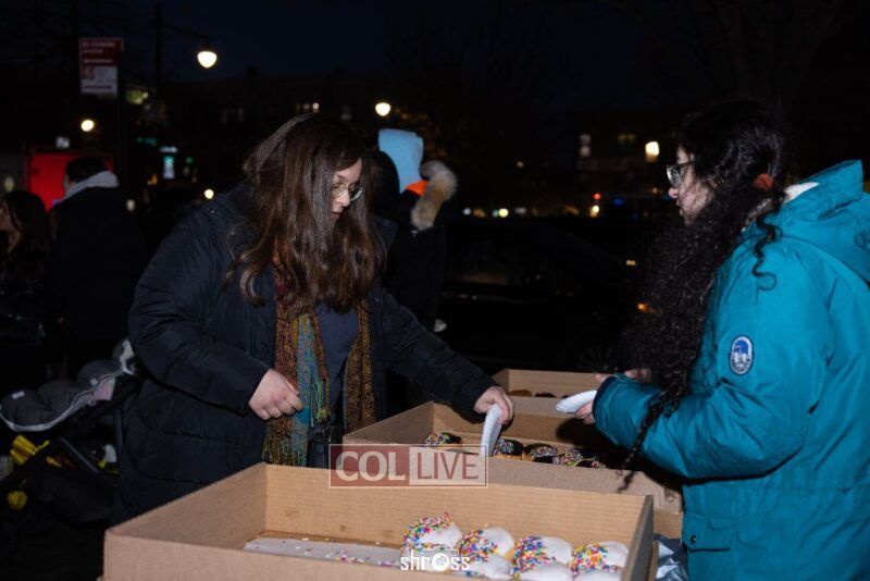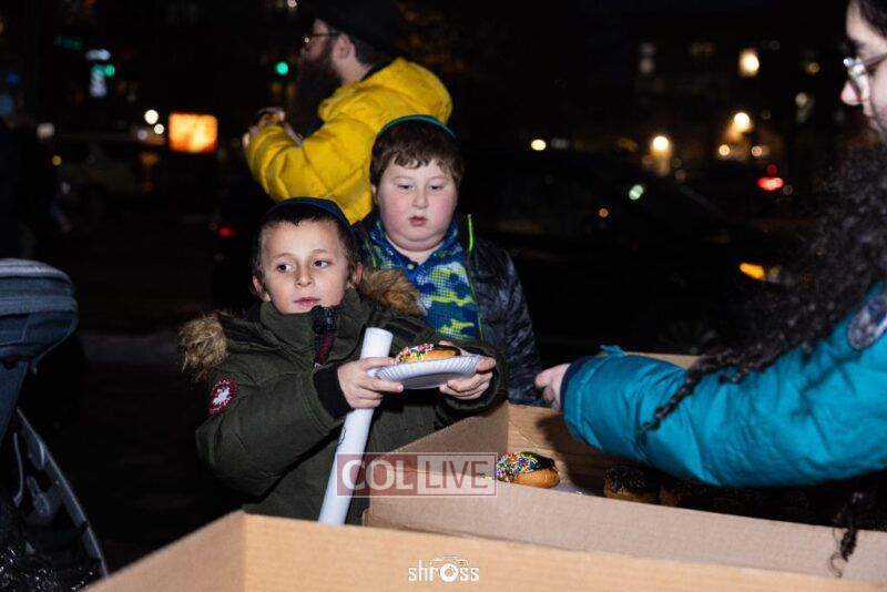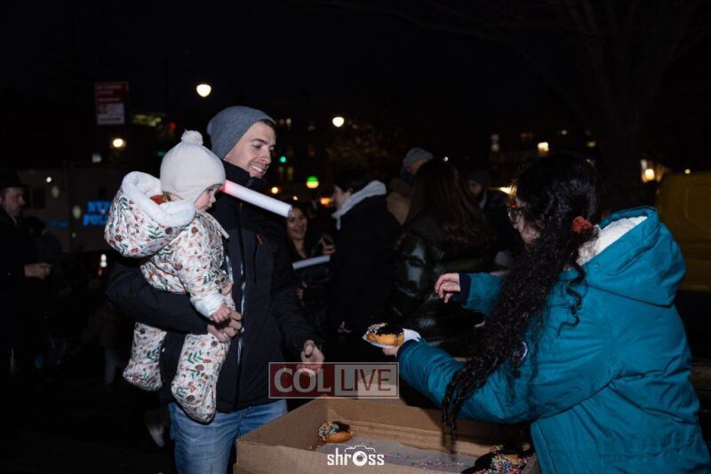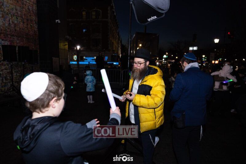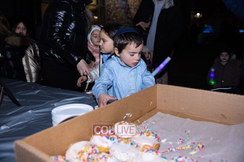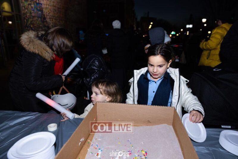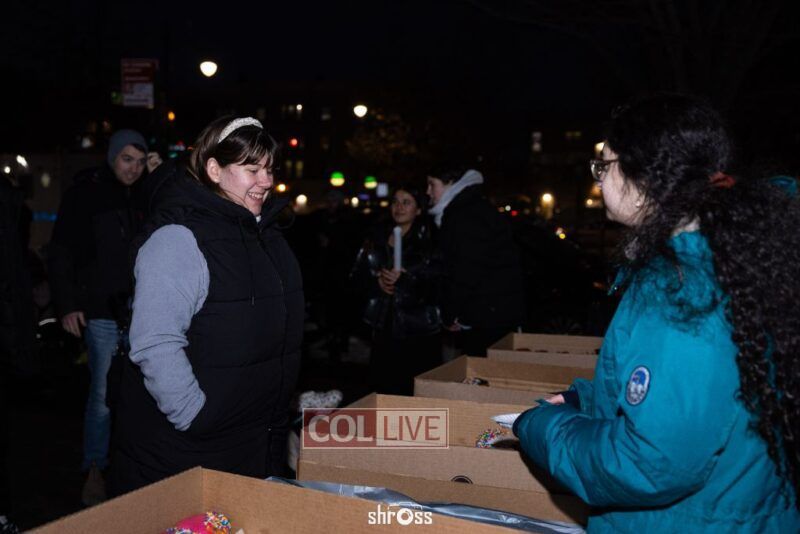 Families gathered on the Plaza at the Jewish Children’s Museum on the first night of Chanukah for a community Menorah lighting with entertainment, music and donuts. Photos