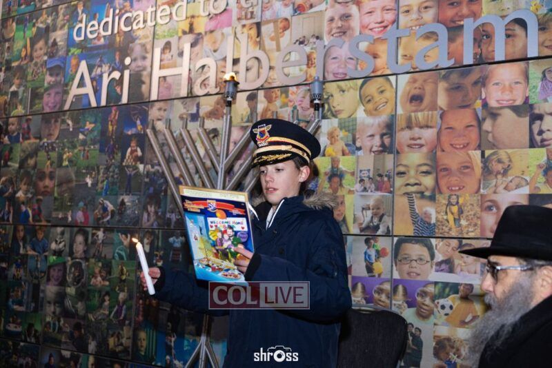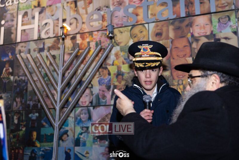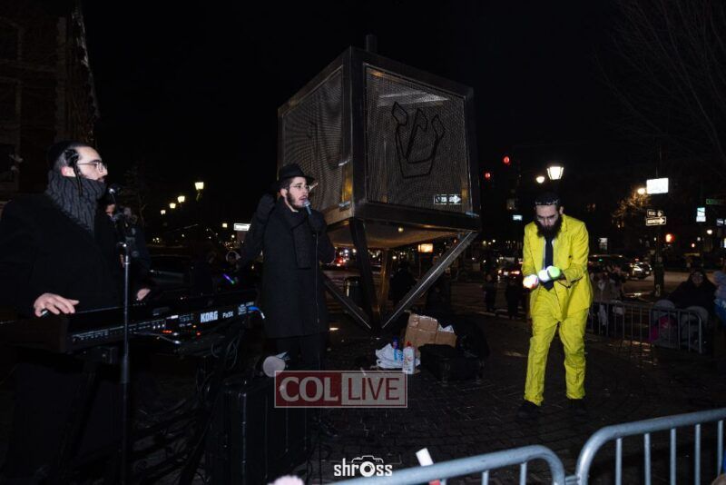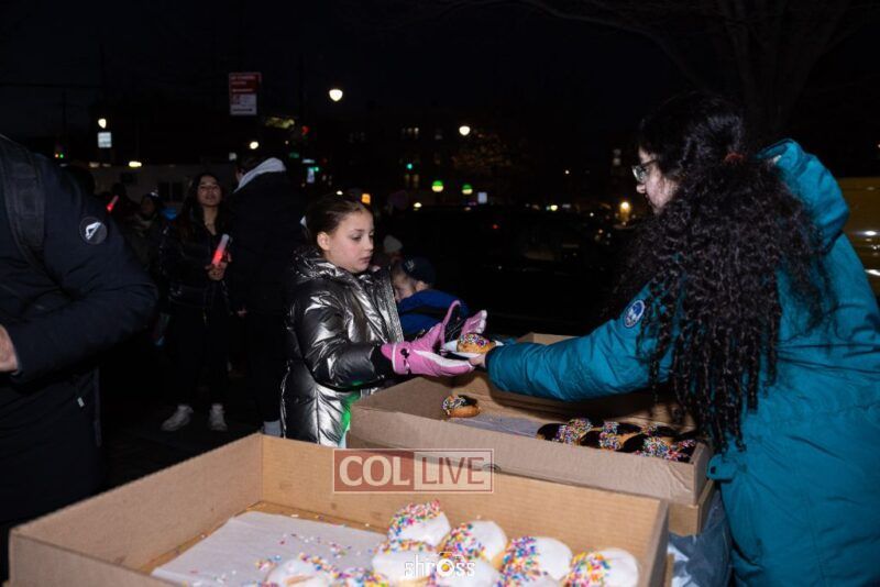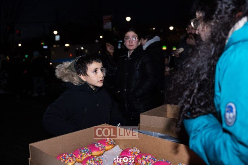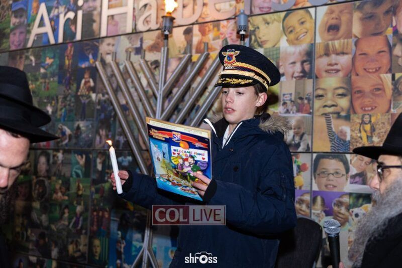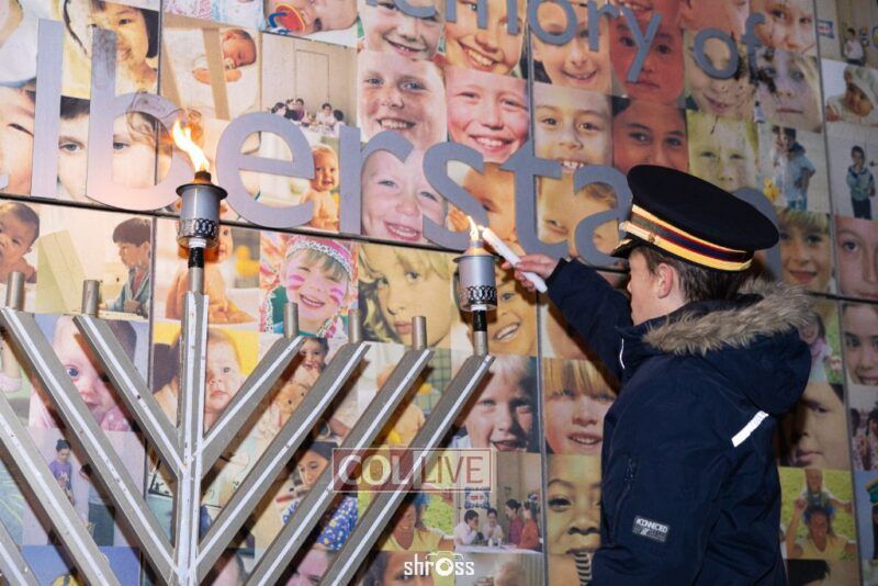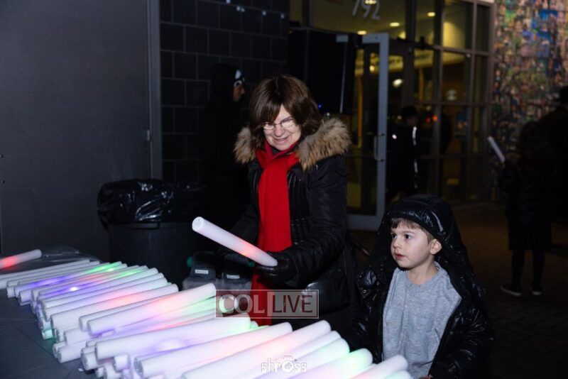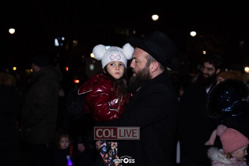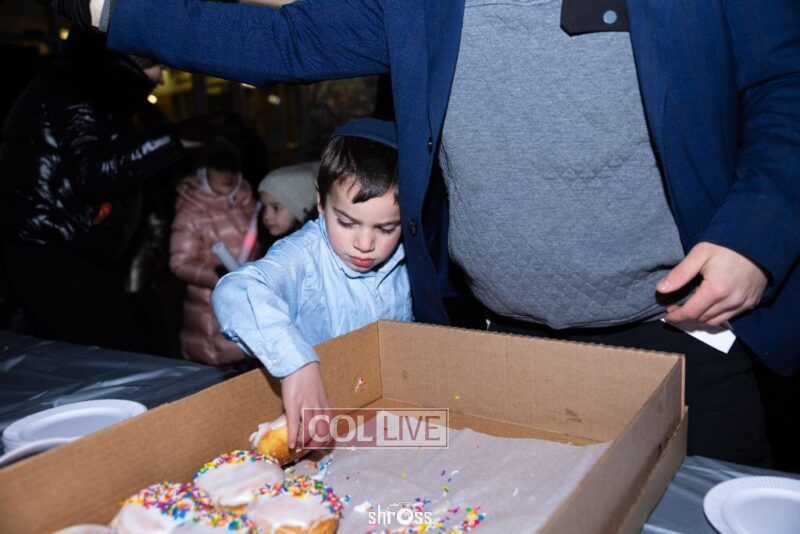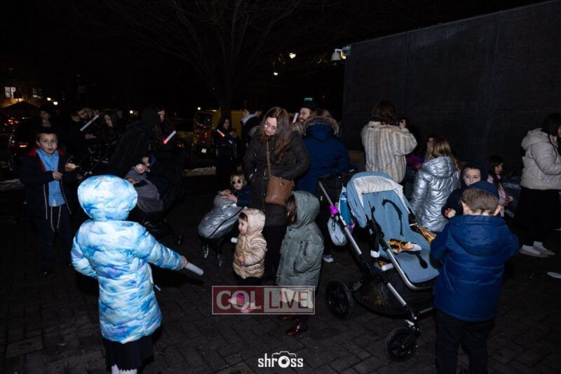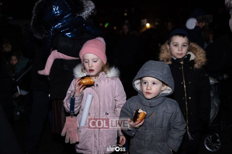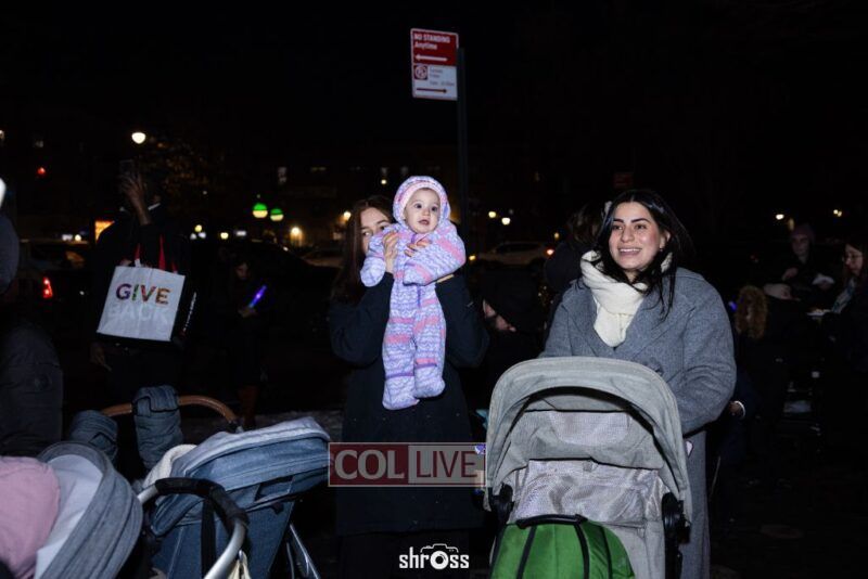 Families gathered on the Plaza at the Jewish Children’s Museum on the first night of Chanukah for a community Menorah lighting with entertainment, music and donuts. Photos