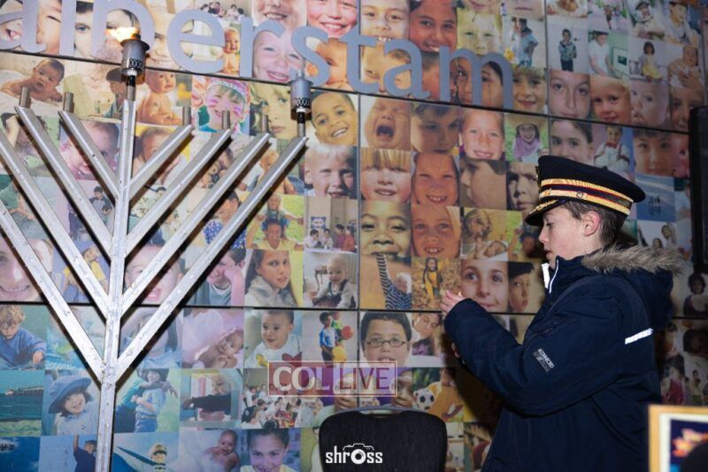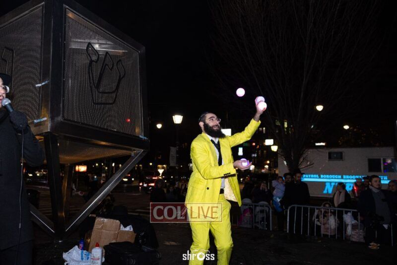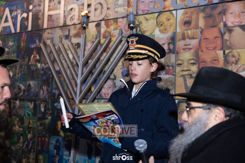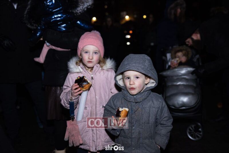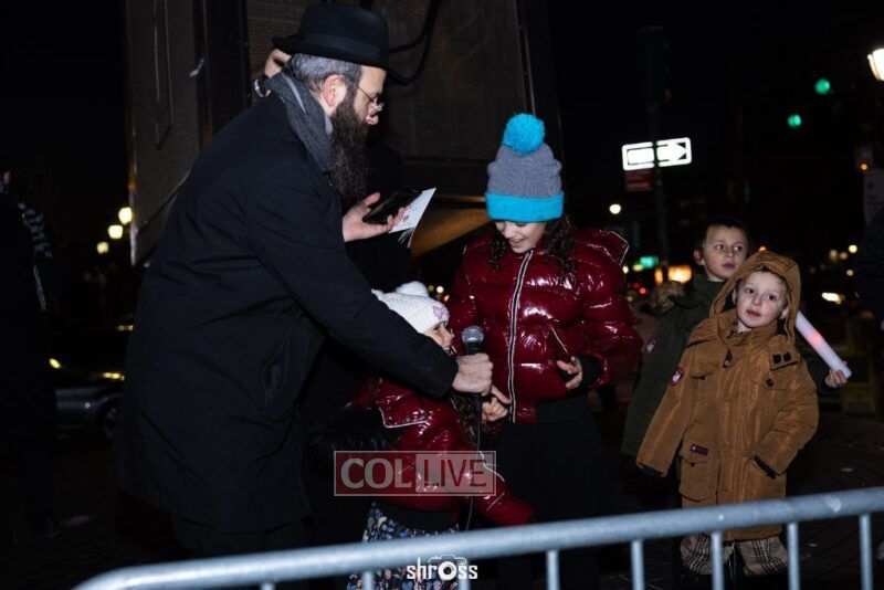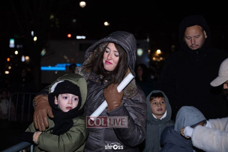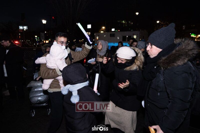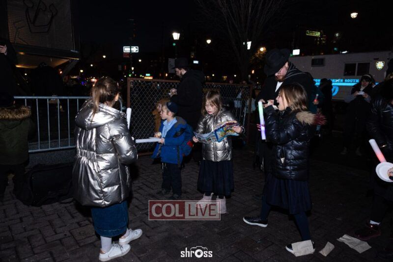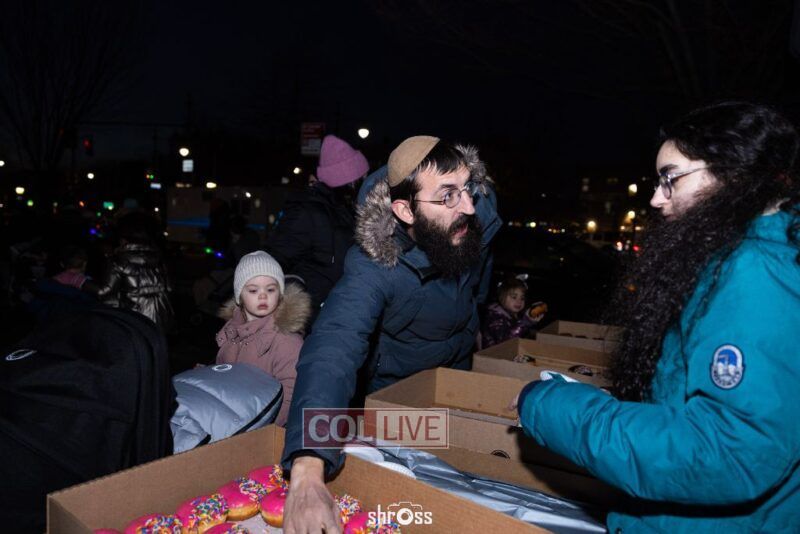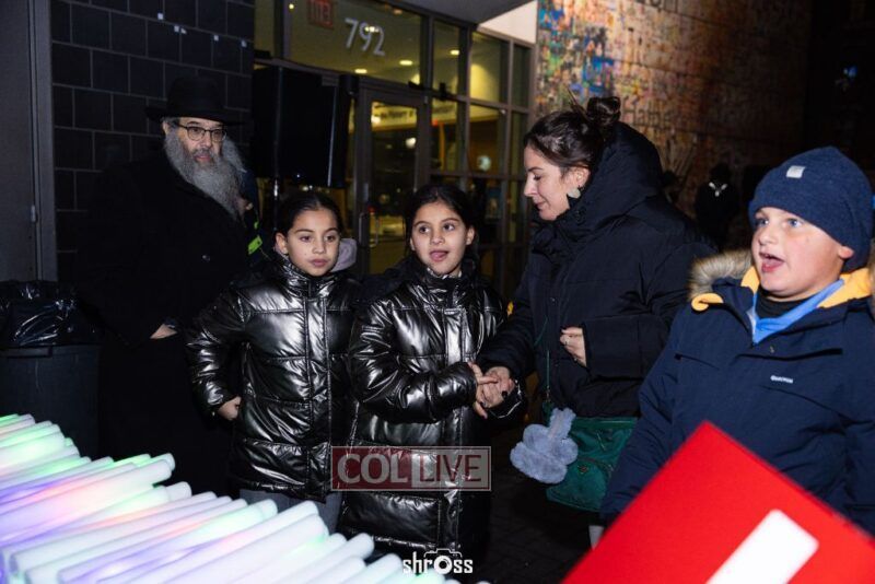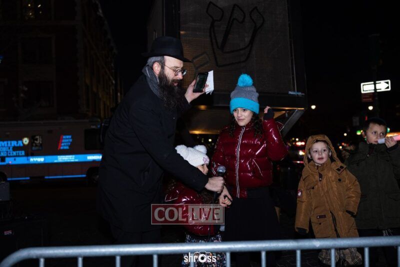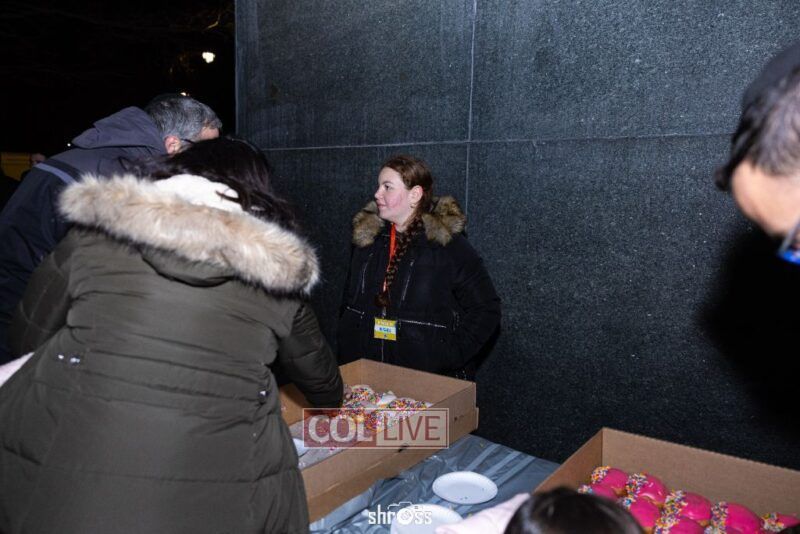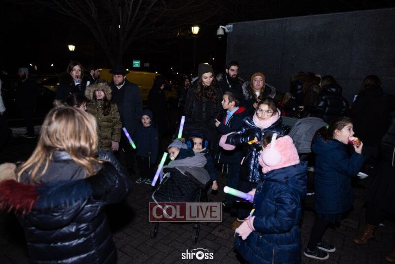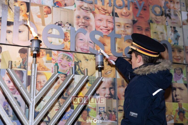 Families gathered on the Plaza at the Jewish Children’s Museum on the first night of Chanukah for a community Menorah lighting with entertainment, music and donuts. Photos