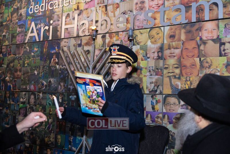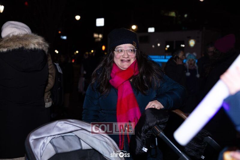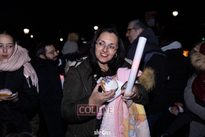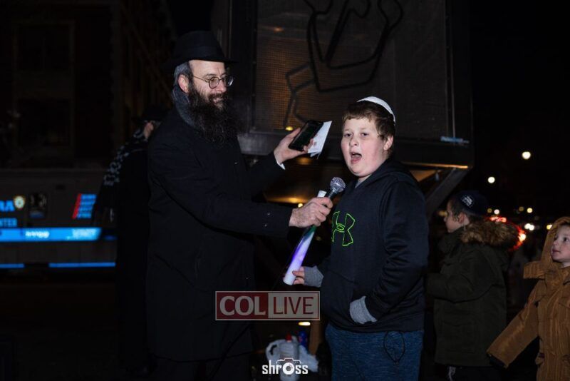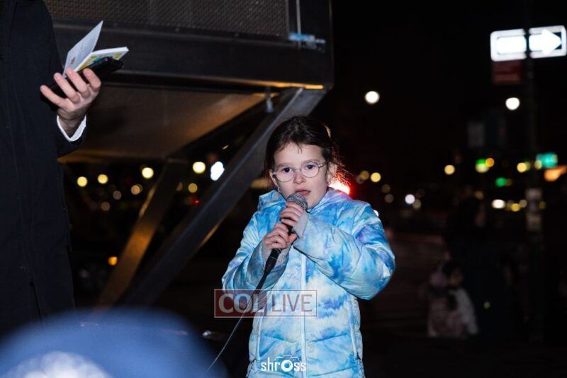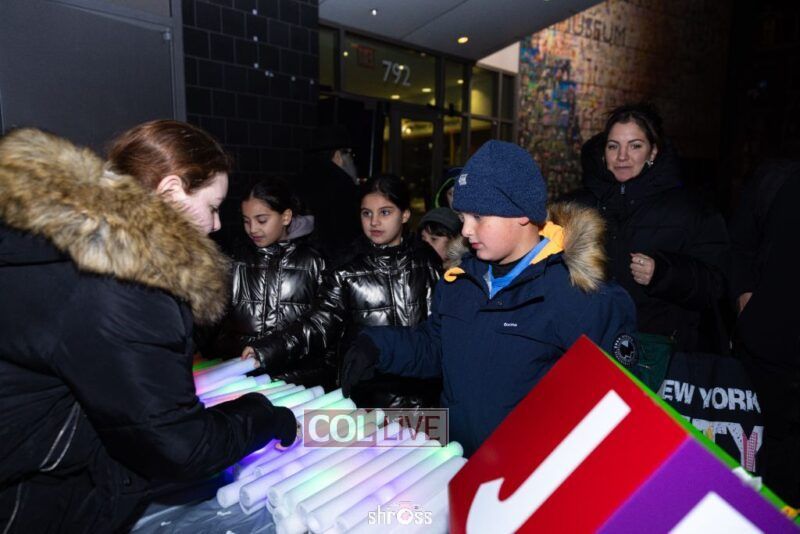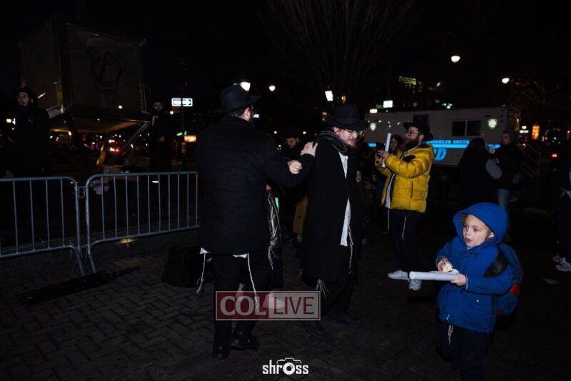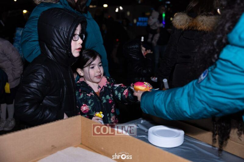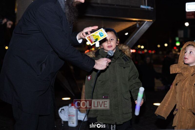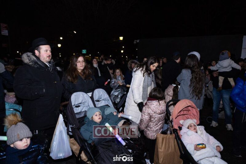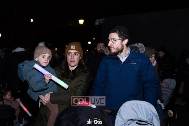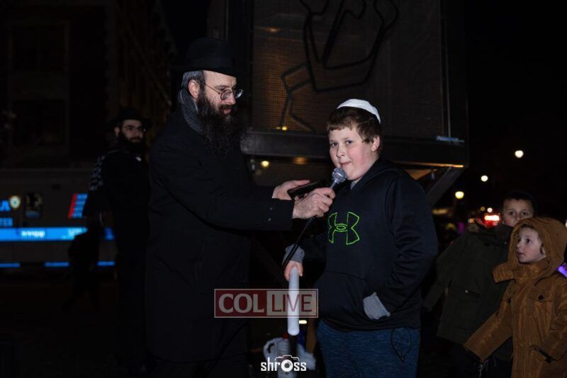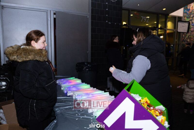Families gathered on the Plaza at the Jewish Children’s Museum on the first night of Chanukah for a community Menorah lighting with entertainment, music and donuts. Photos