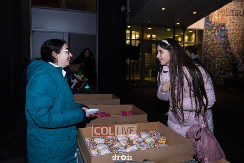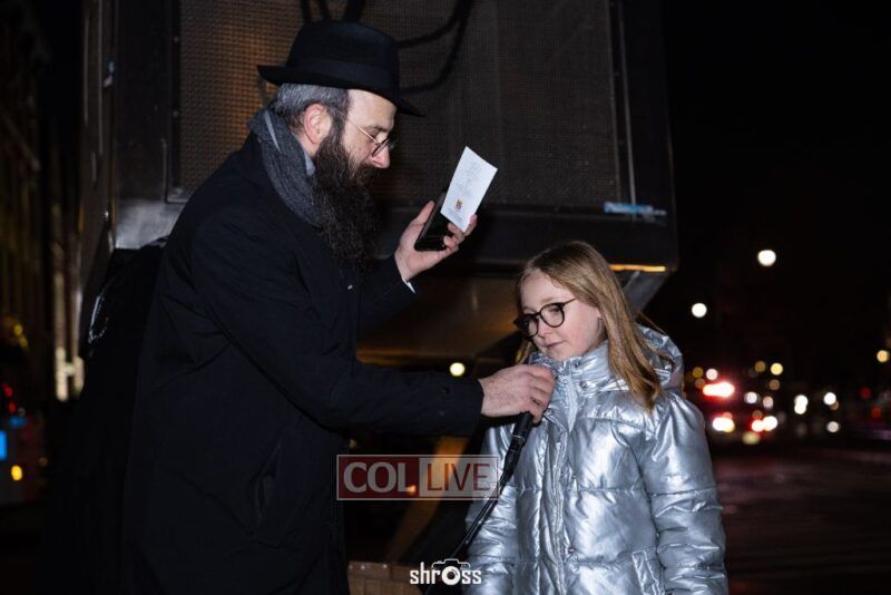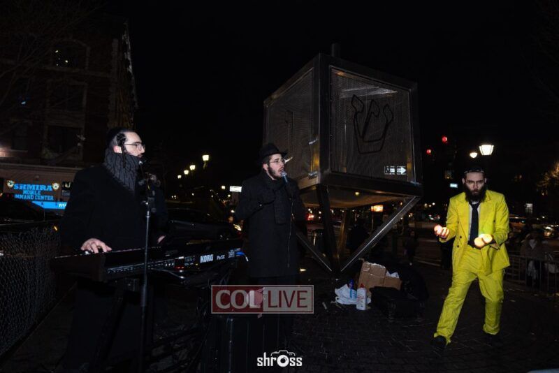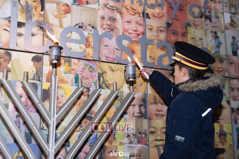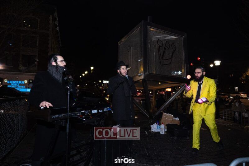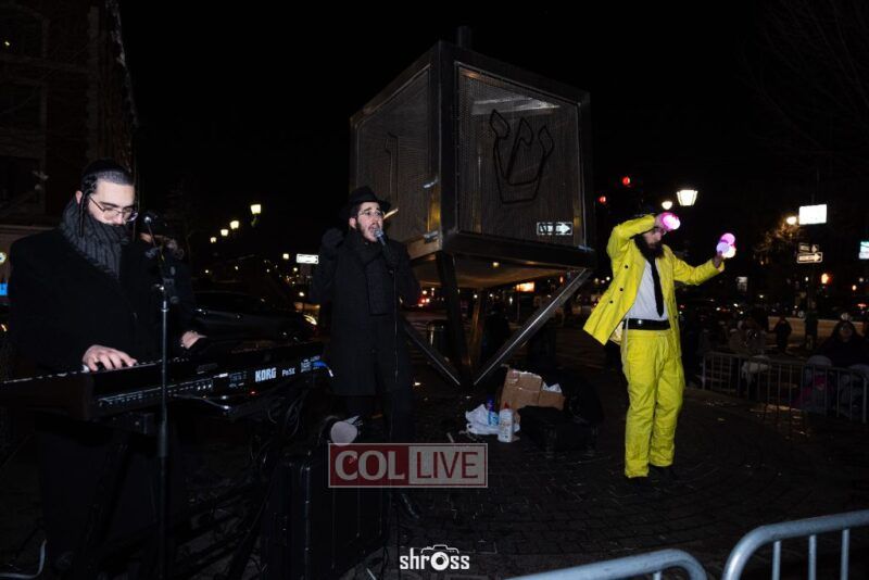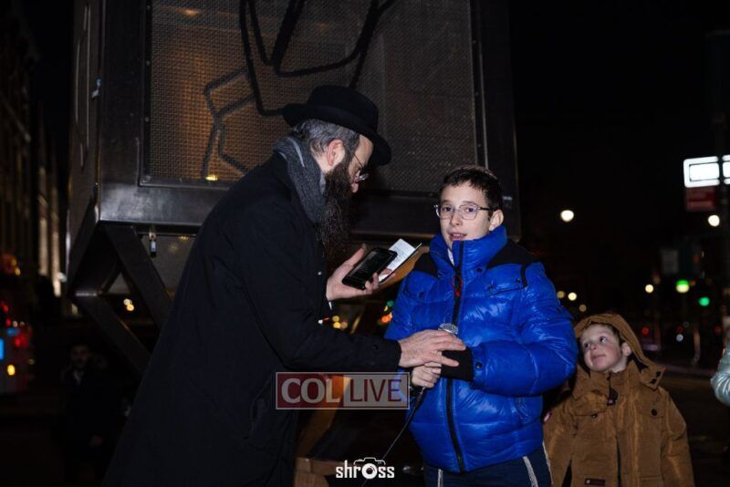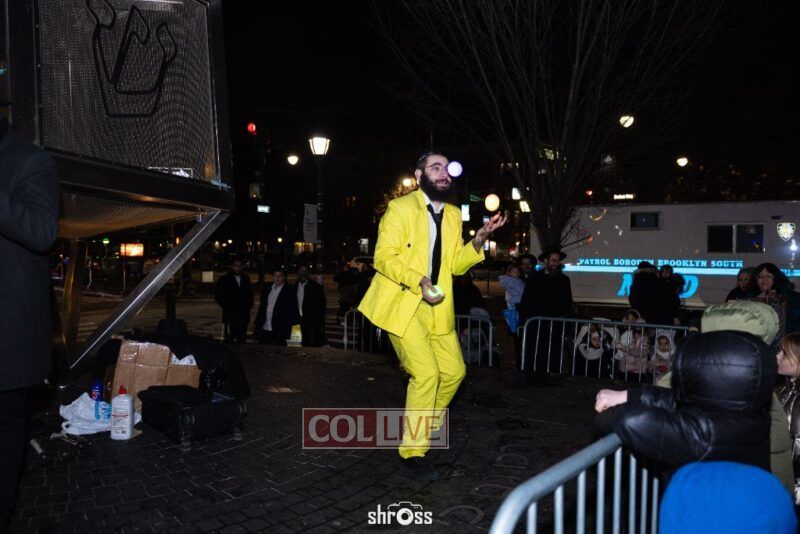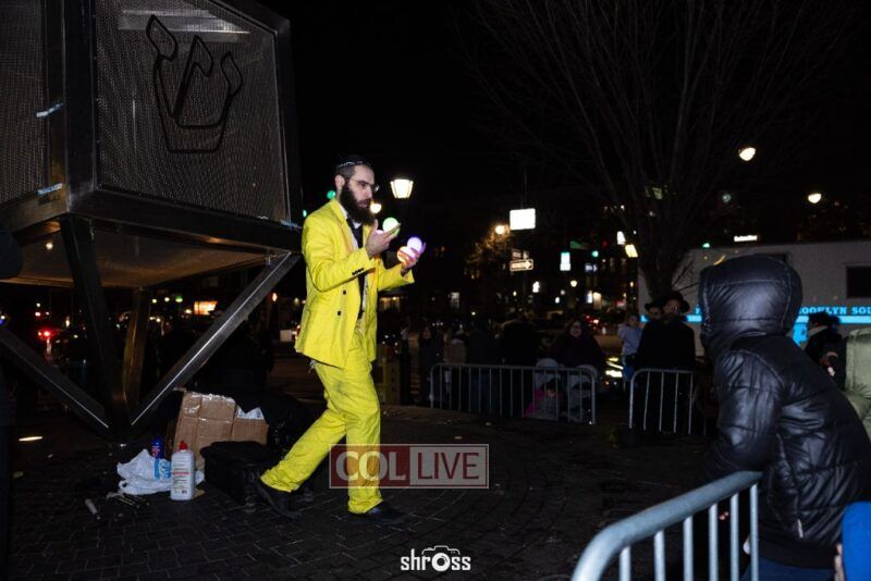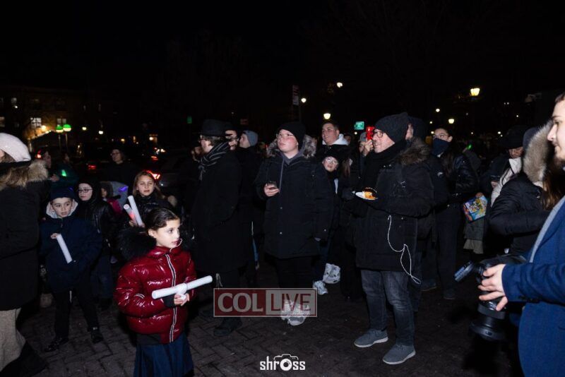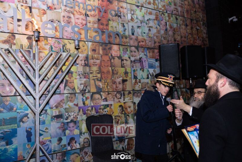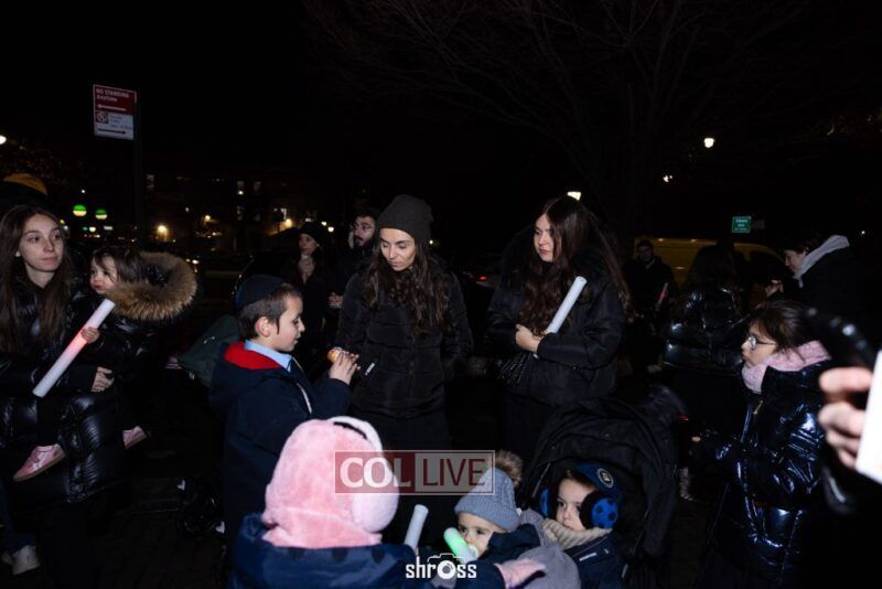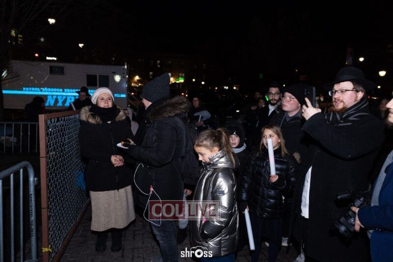Families gathered on the Plaza at the Jewish Children’s Museum on the first night of Chanukah for a community Menorah lighting with entertainment, music and donuts. Photos
