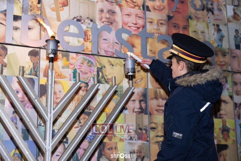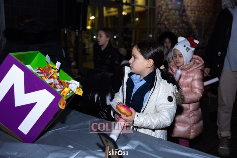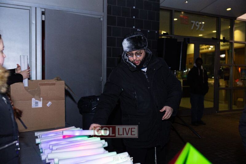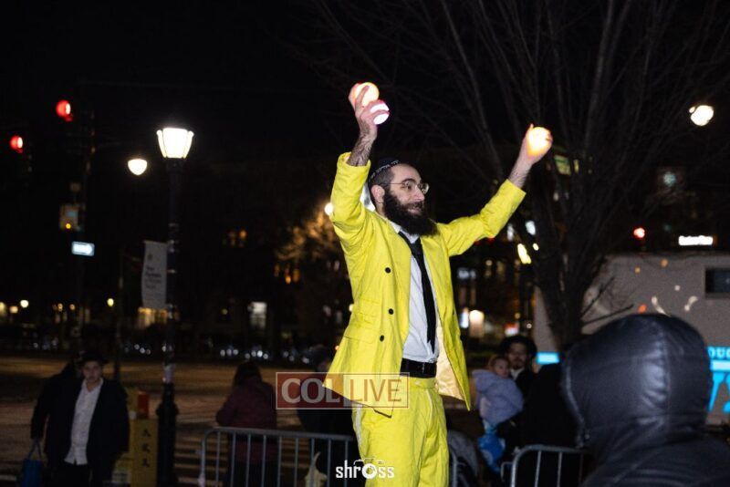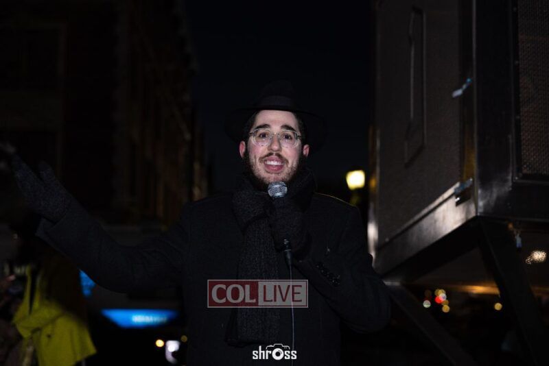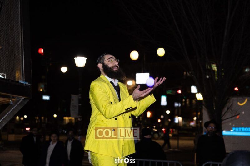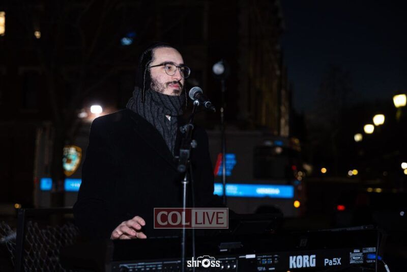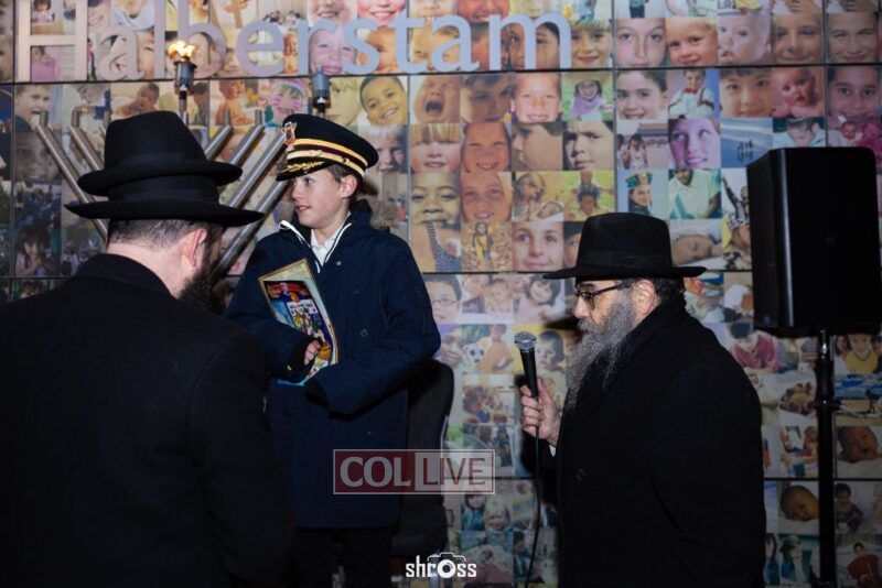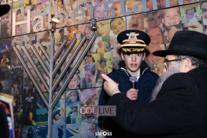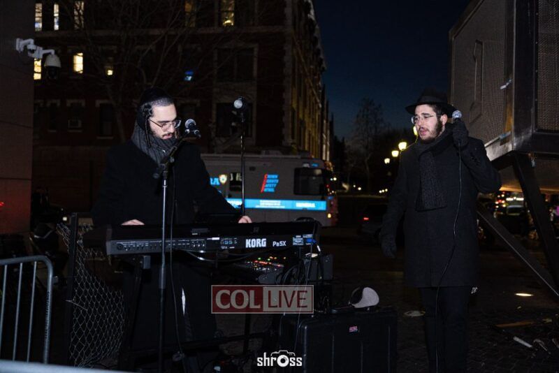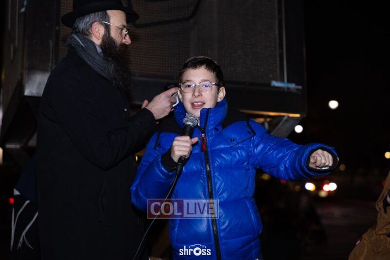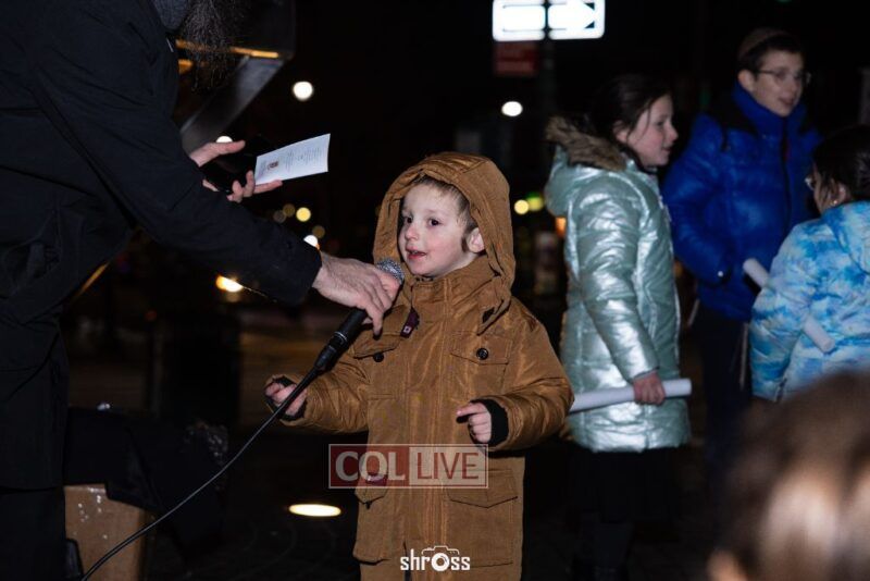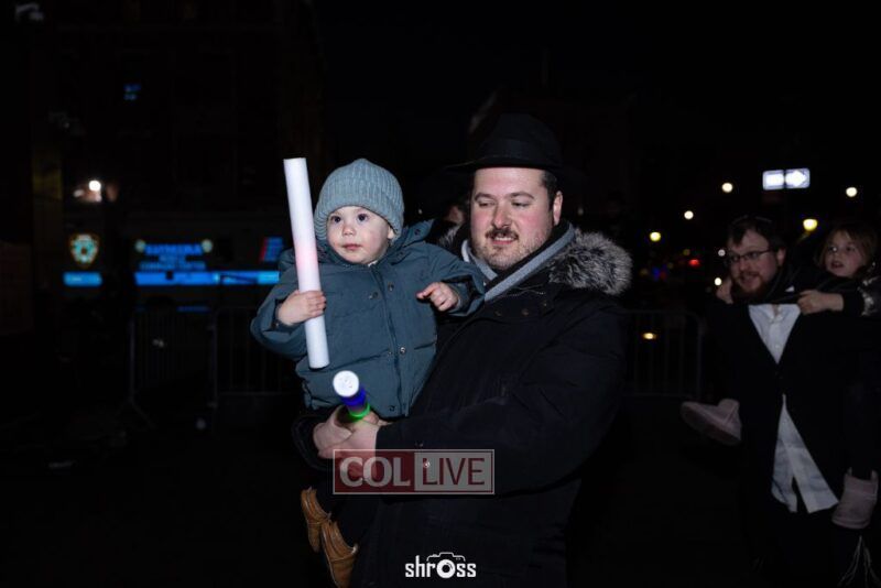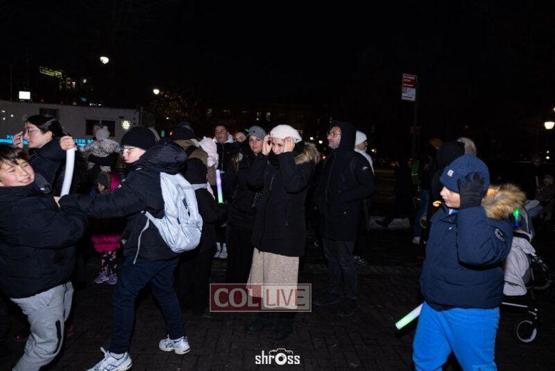 Families gathered on the Plaza at the Jewish Children’s Museum on the first night of Chanukah for a community Menorah lighting with entertainment, music and donuts. Photos