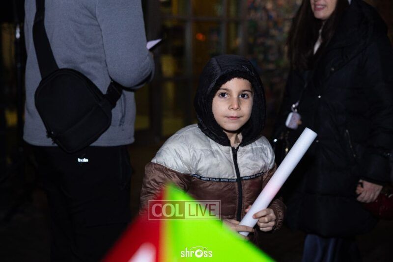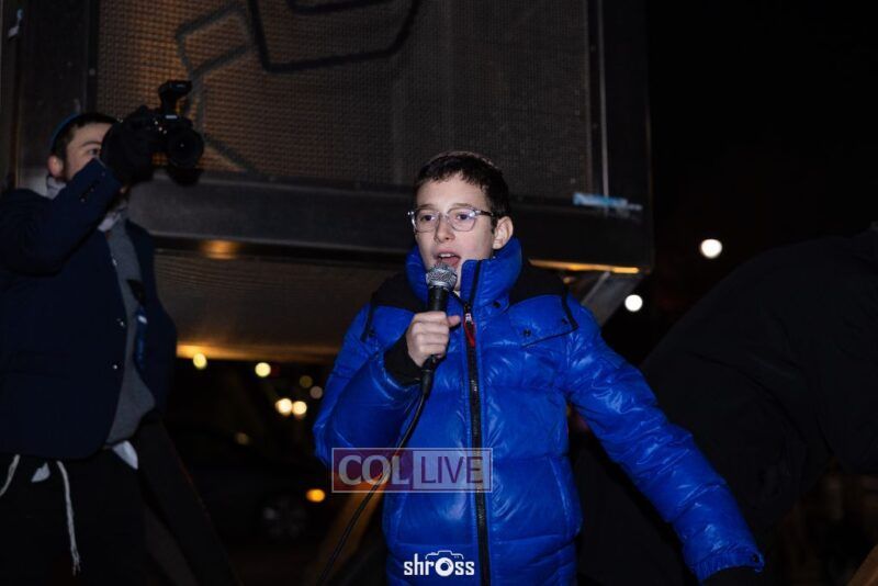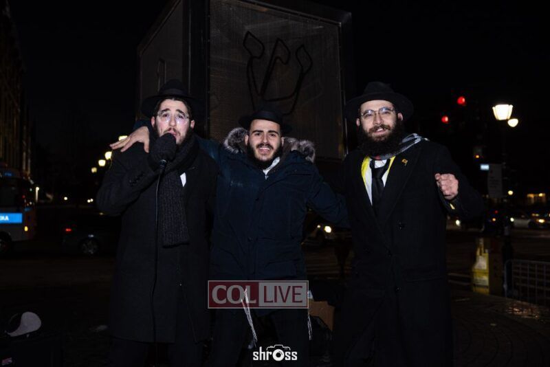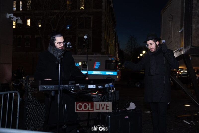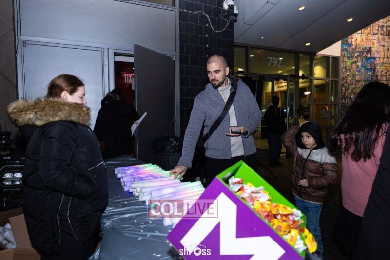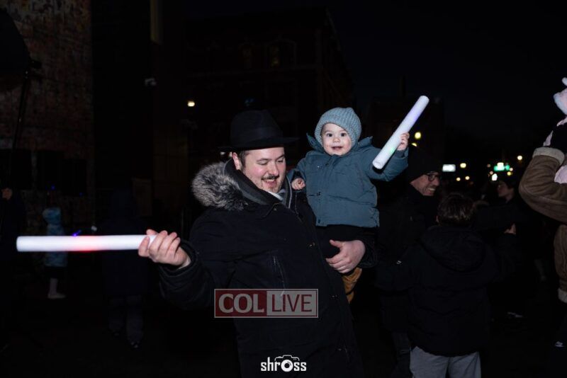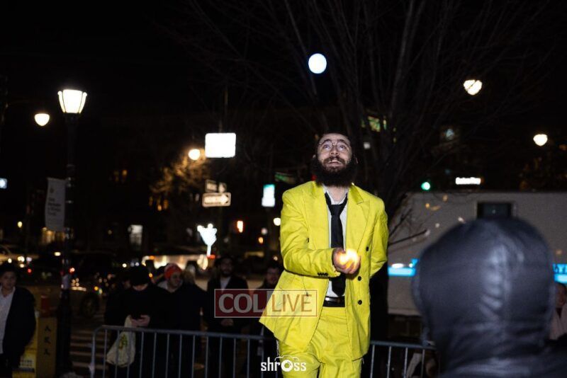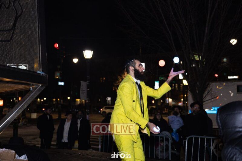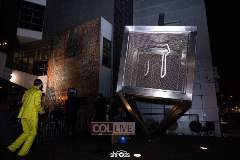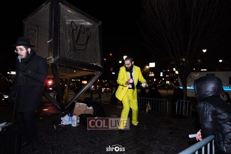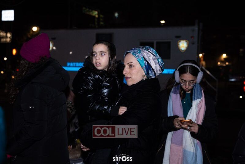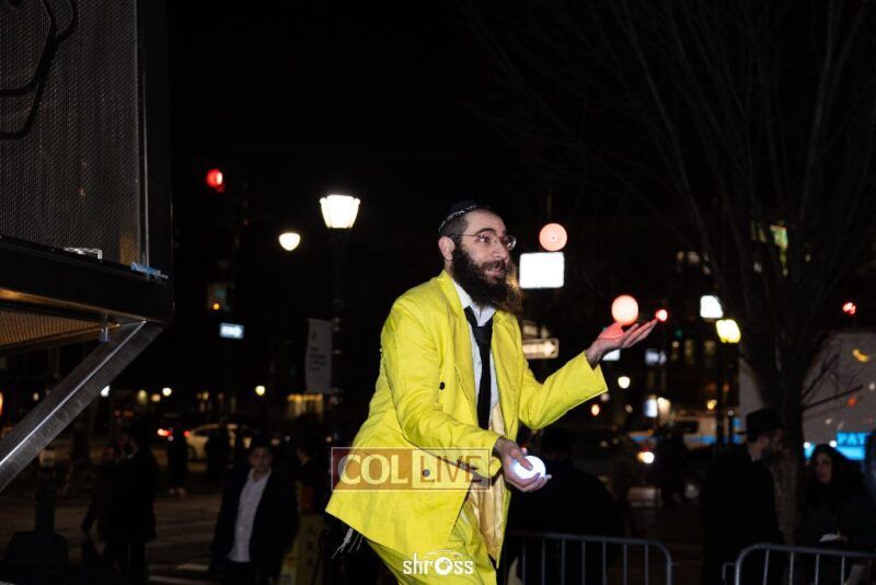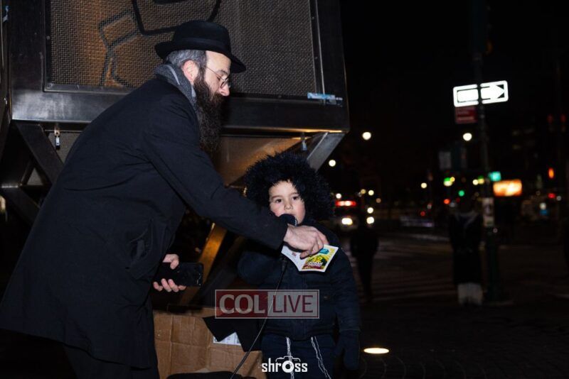 Families gathered on the Plaza at the Jewish Children’s Museum on the first night of Chanukah for a community Menorah lighting with entertainment, music and donuts. Photos