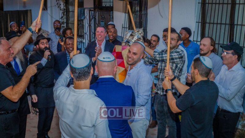 Dozens of participants took part in a moving and uplifting Hachnasas Sefer Torah ceremony held in Dar es Salaam, Tanzania, at the Chabad Center led by the Rebbe’s shluchim to the city and country, Rabbi Shimi and Chani Aziza.