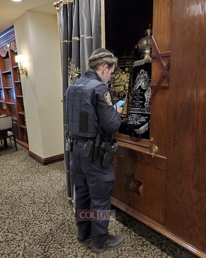 The Fifth Avenue procession gave Jewish police officers the opportunity to join in heartfelt prayers at Chabad of Midtown.