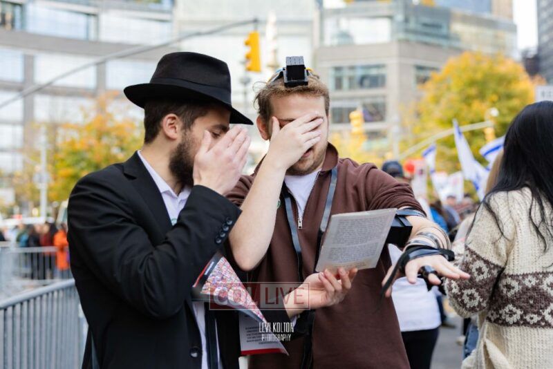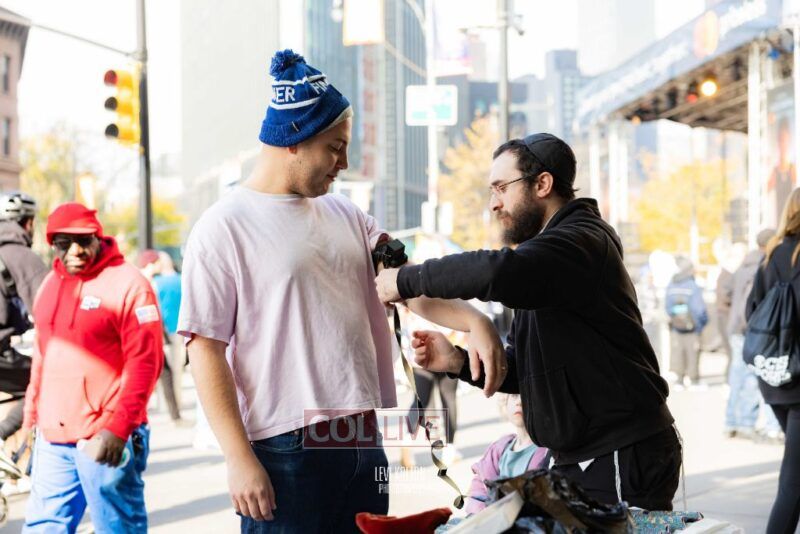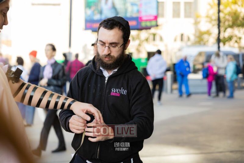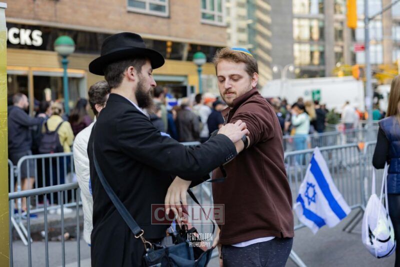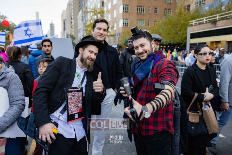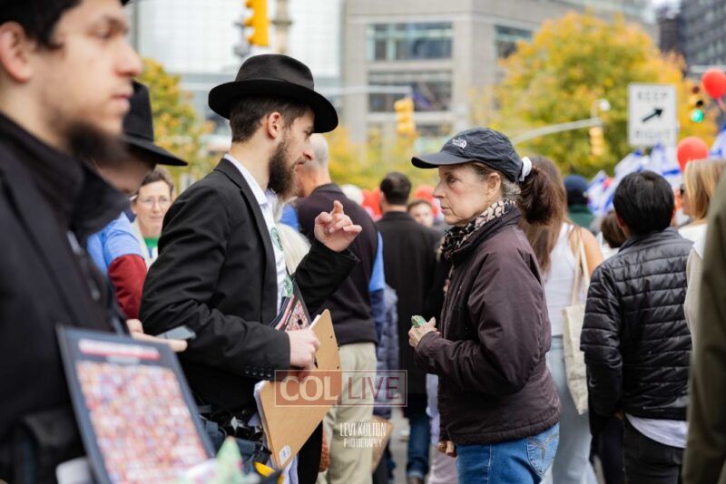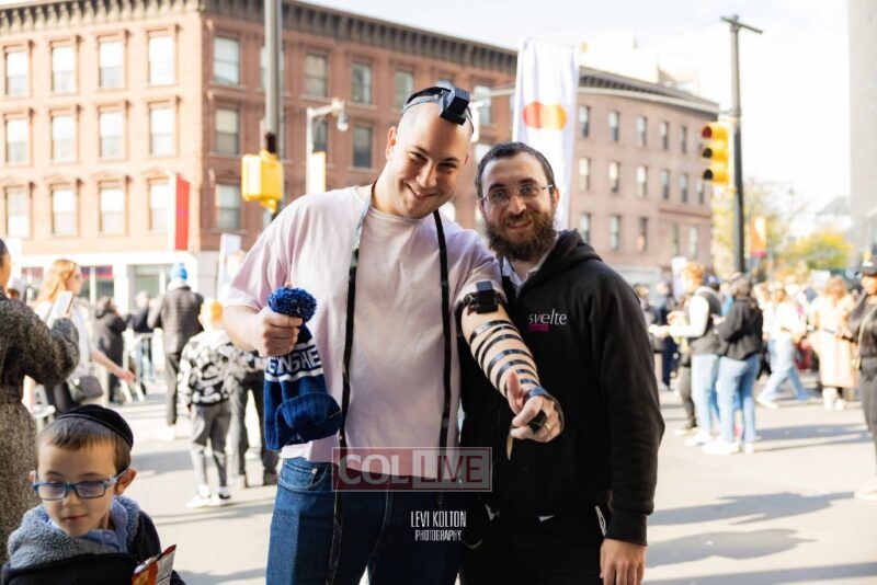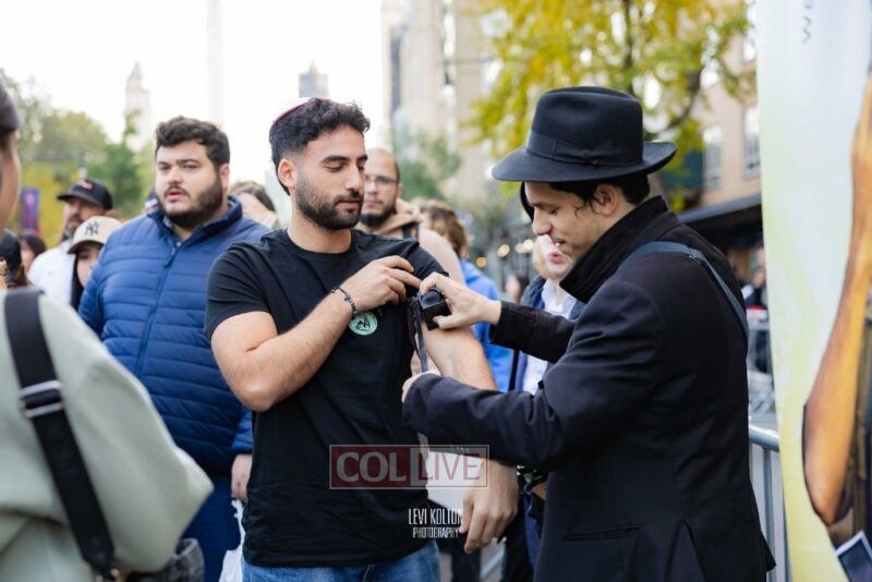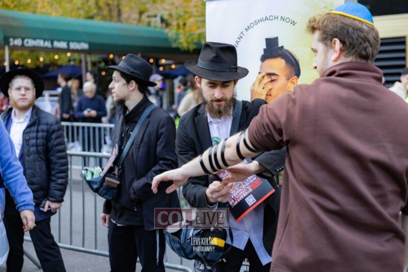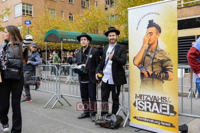 Along the route, Mivtzoim stands were set up by many Lubavitchers, who used the opportunity of tens of thousands of runners and spectators to offer fellow Jews a chance to put on Tefillin, and distributed Shabbos candles to the women.