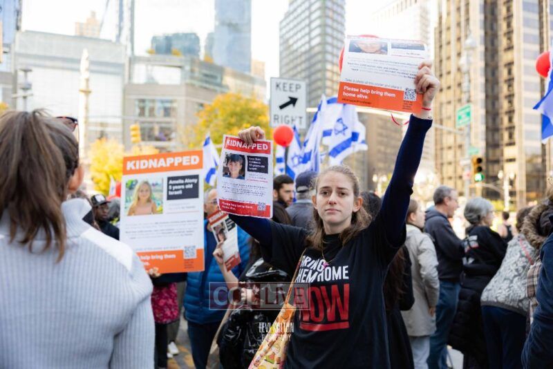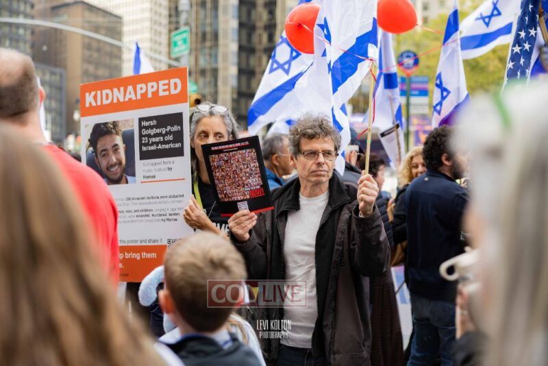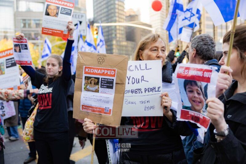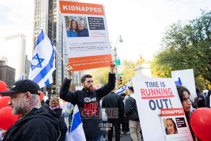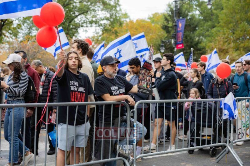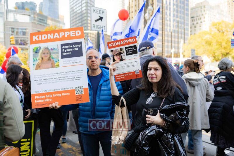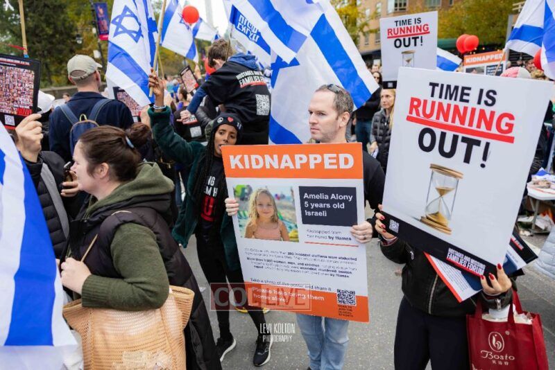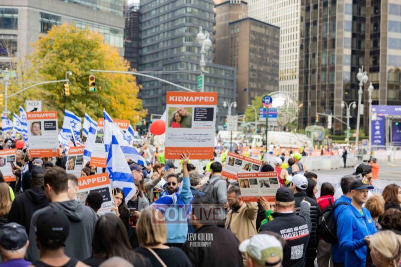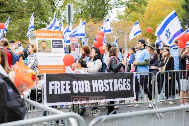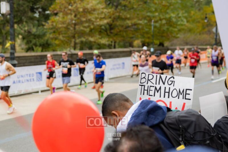 Many runners wore Israeli flags and some wore ‘missing’ posters, to remember the hostages taken in the Hamas attacks on Simchas Torah. A large Israel solidarity event took place near the marathon finish line.