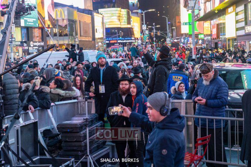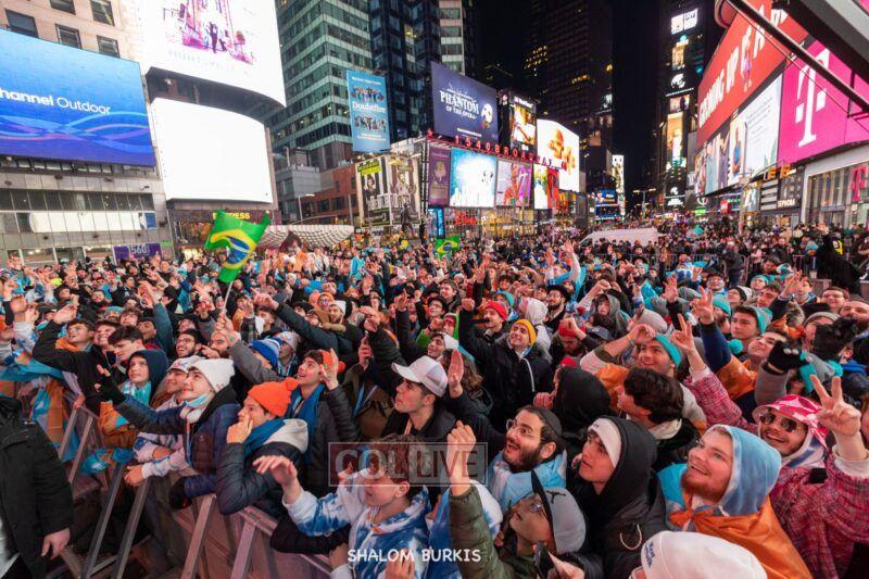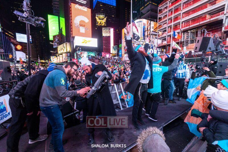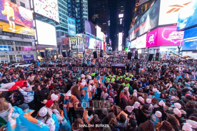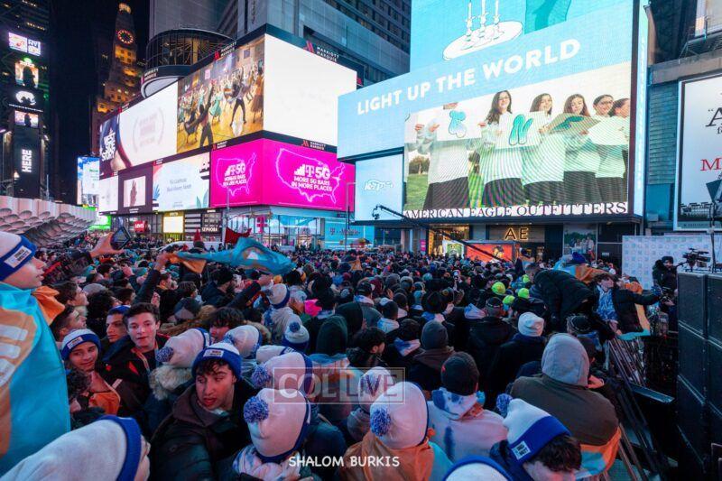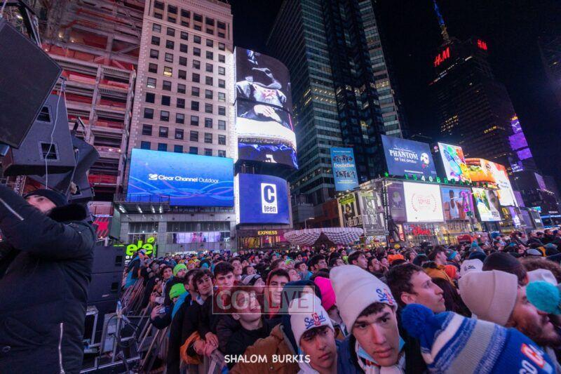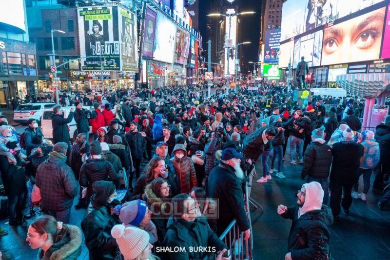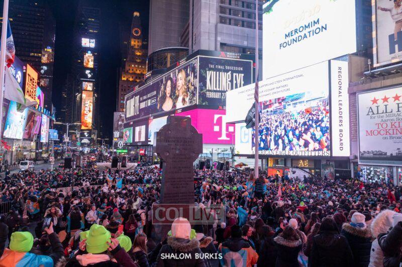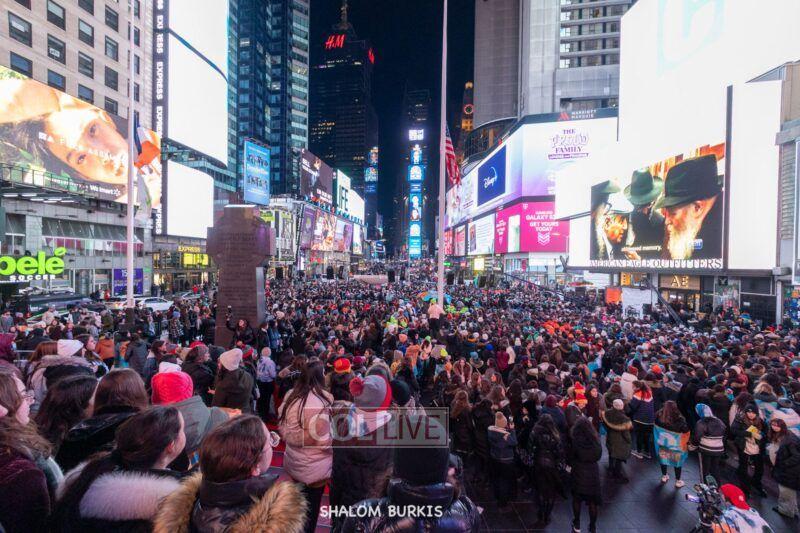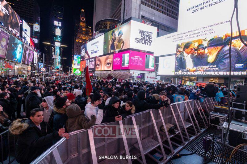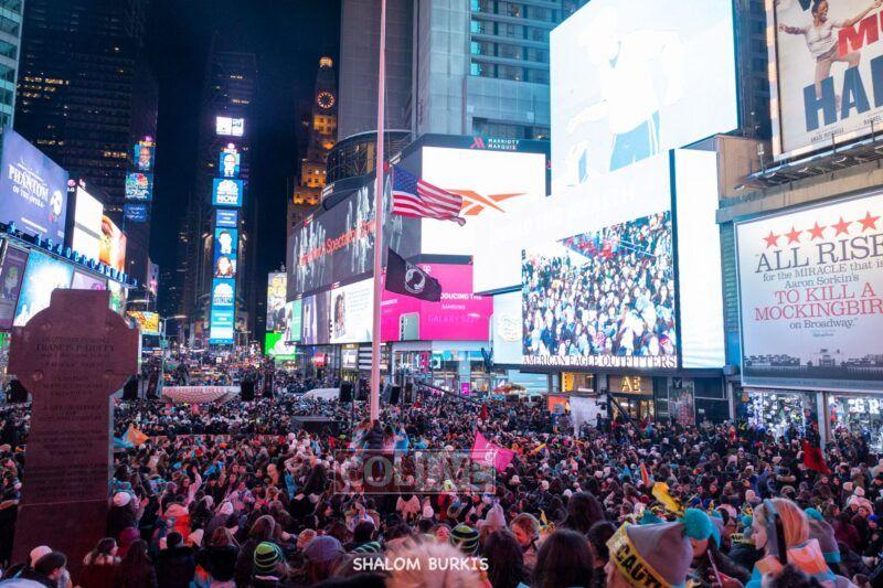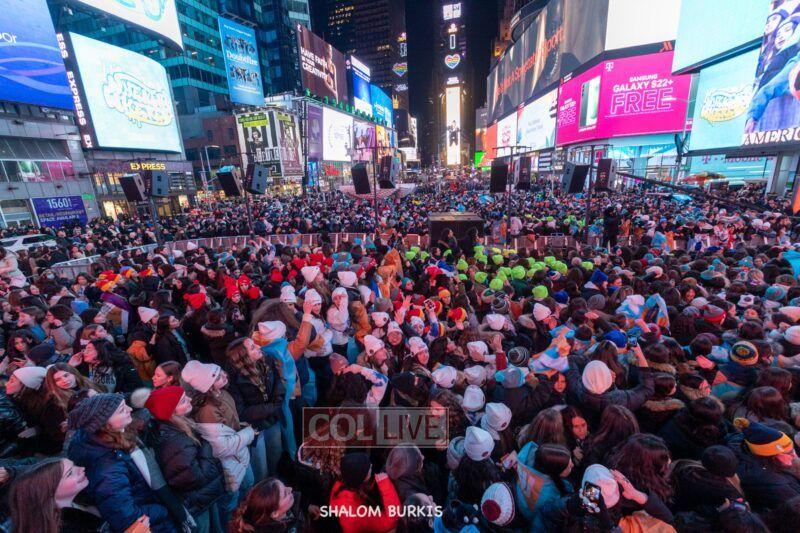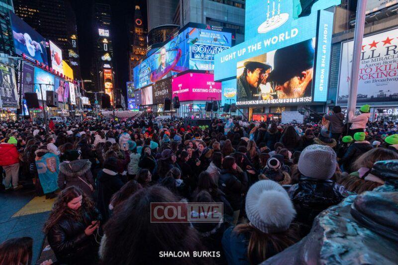 Times Square was jam-packed and full of energy at a spirited Havdalah ceremony and display of Jewish pride on Motzei Shabbos.