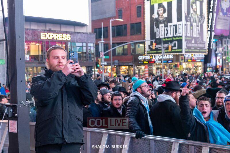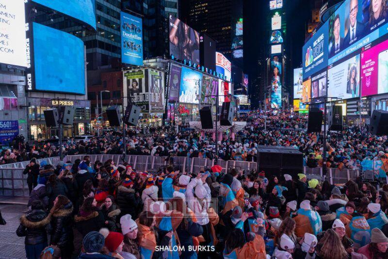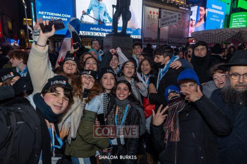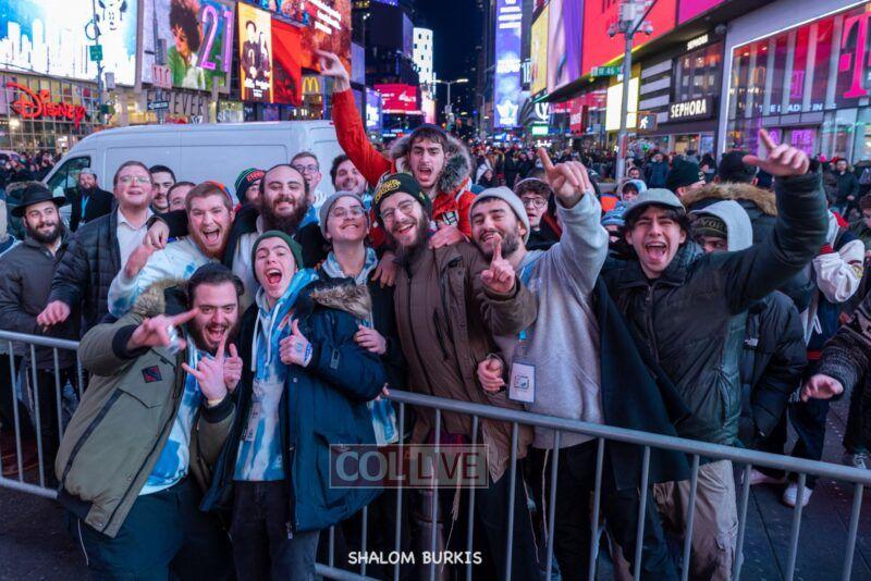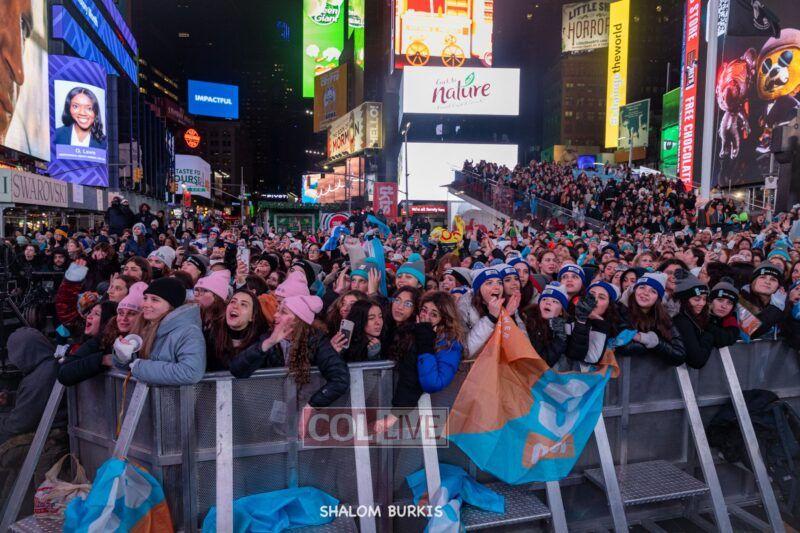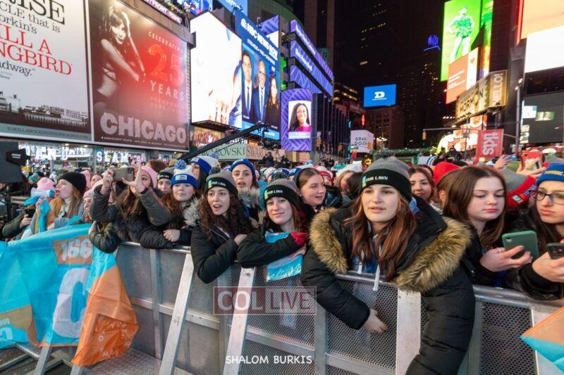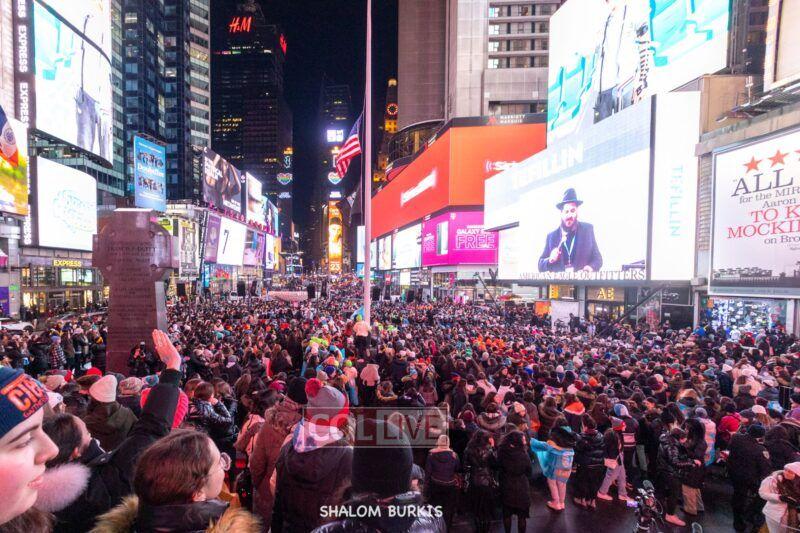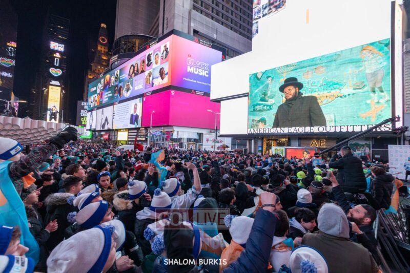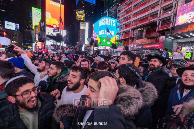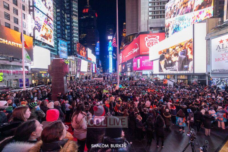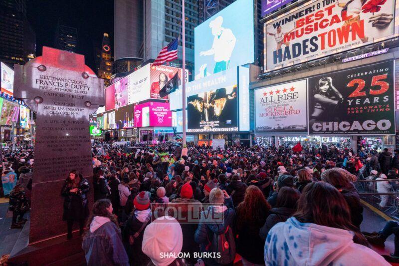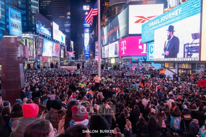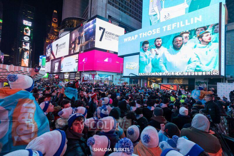 Times Square was jam-packed and full of energy at a spirited Havdalah ceremony and display of Jewish pride on Motzei Shabbos.