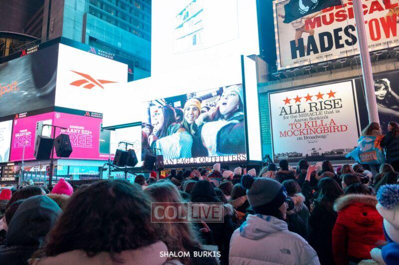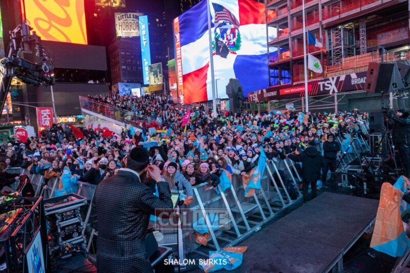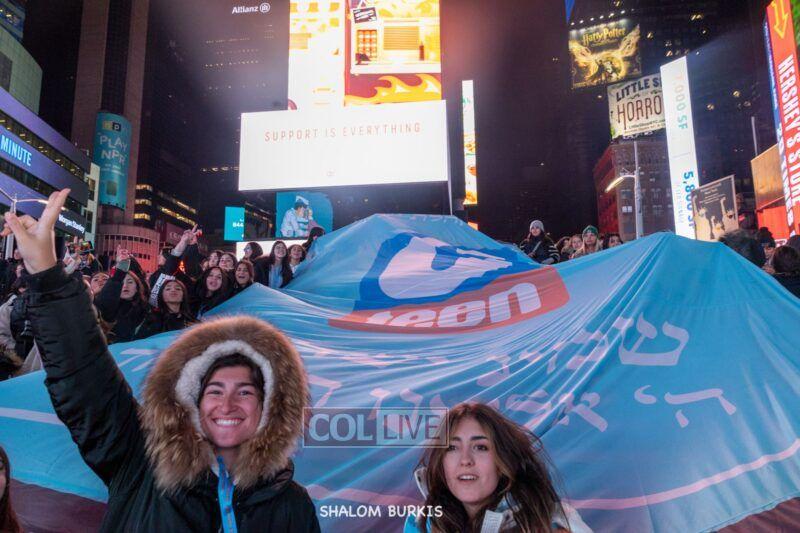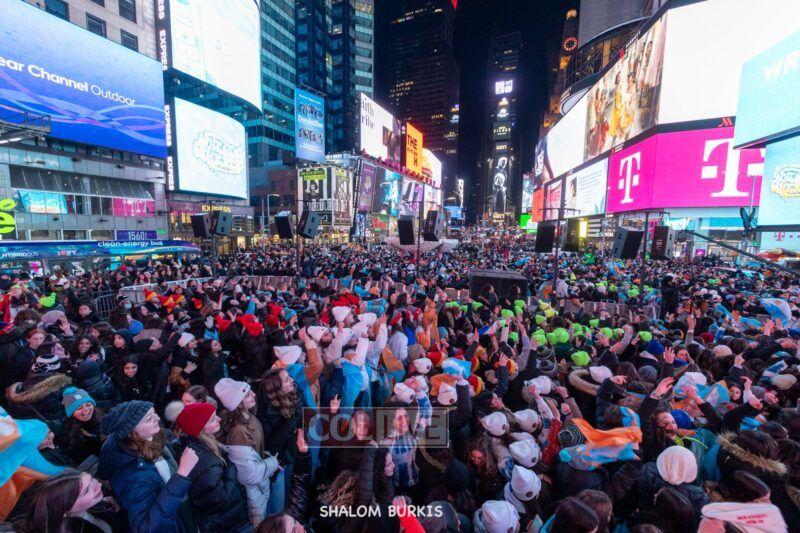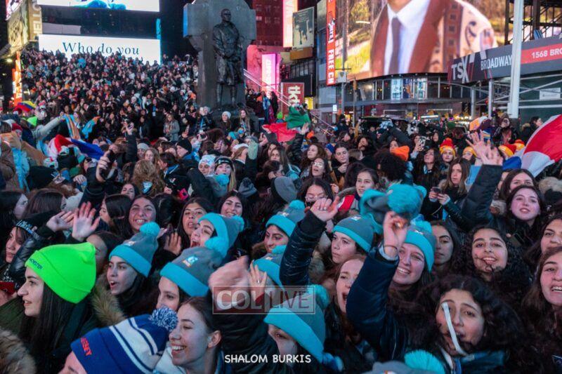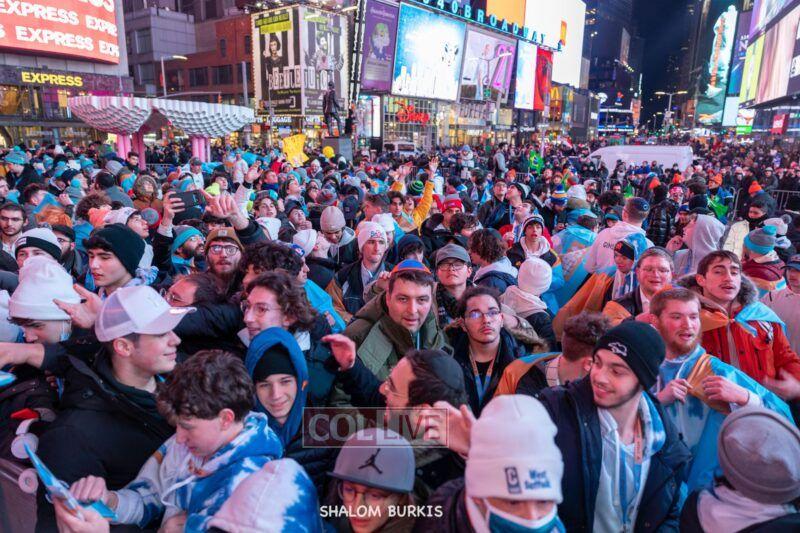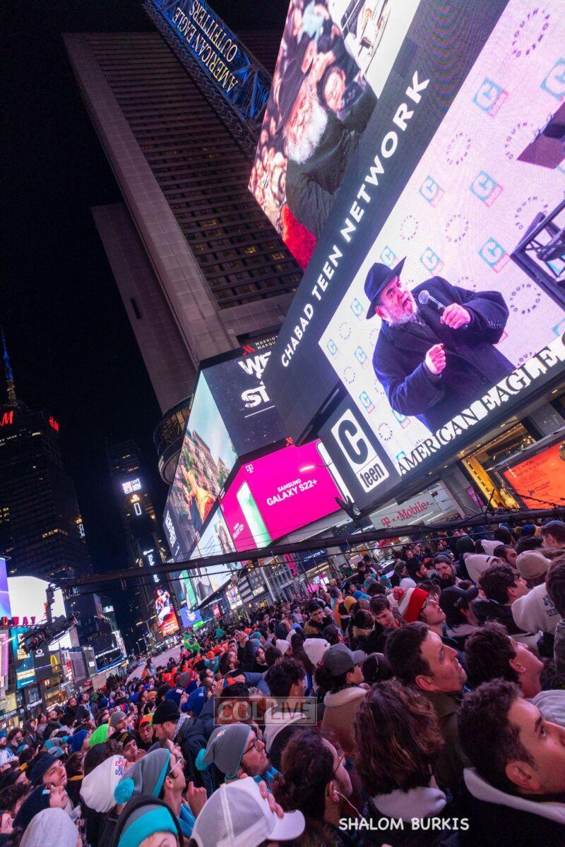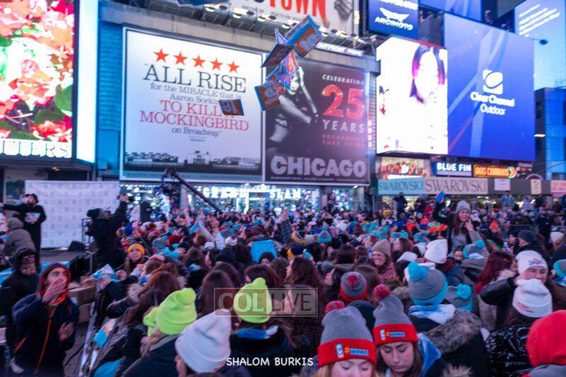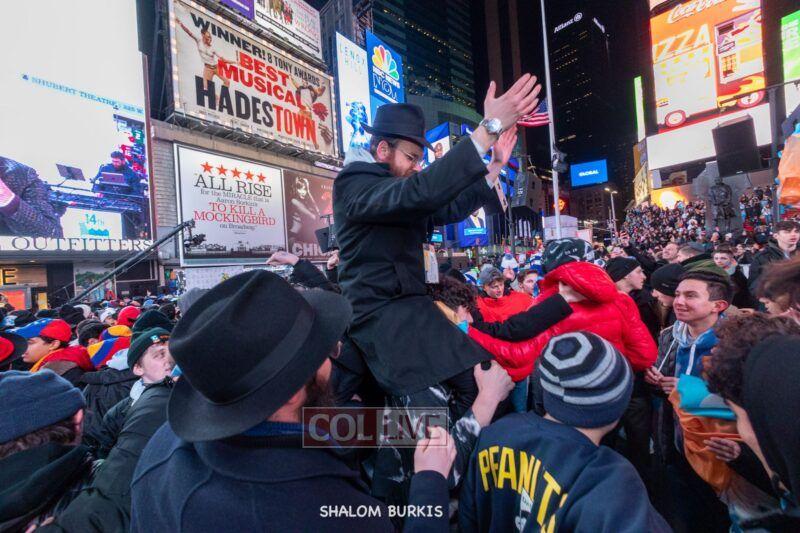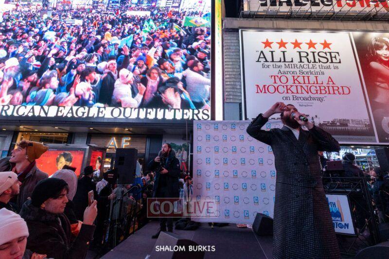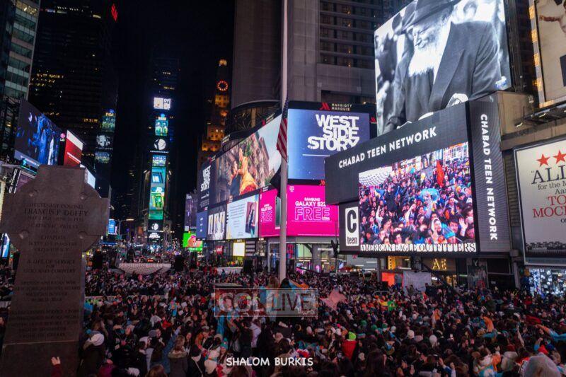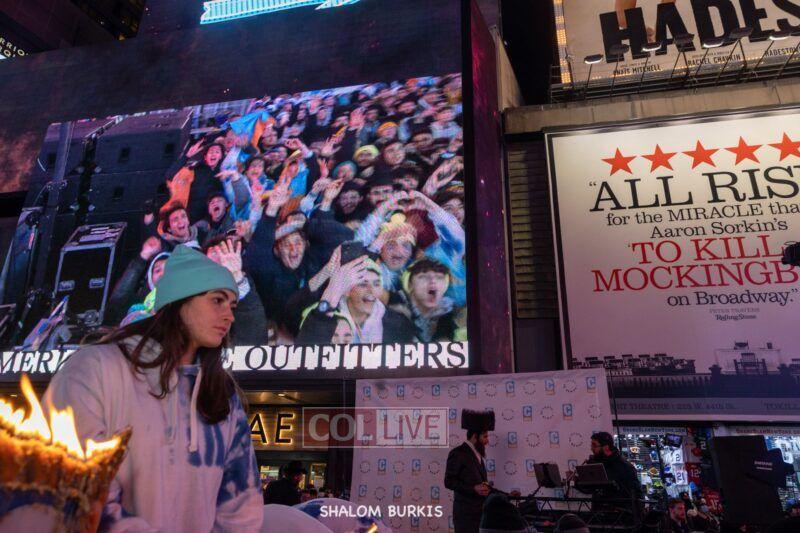 Times Square was jam-packed and full of energy at a spirited Havdalah ceremony and display of Jewish pride on Motzei Shabbos.
