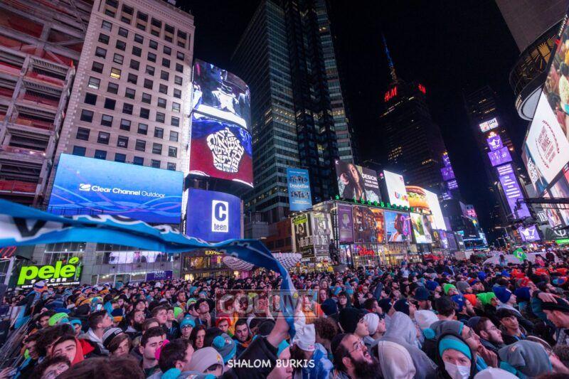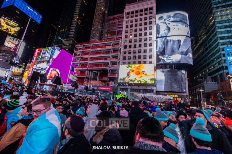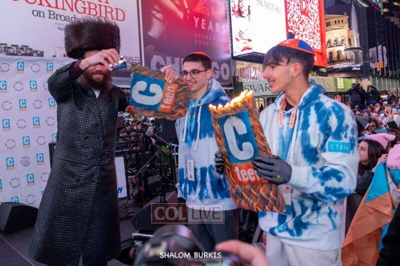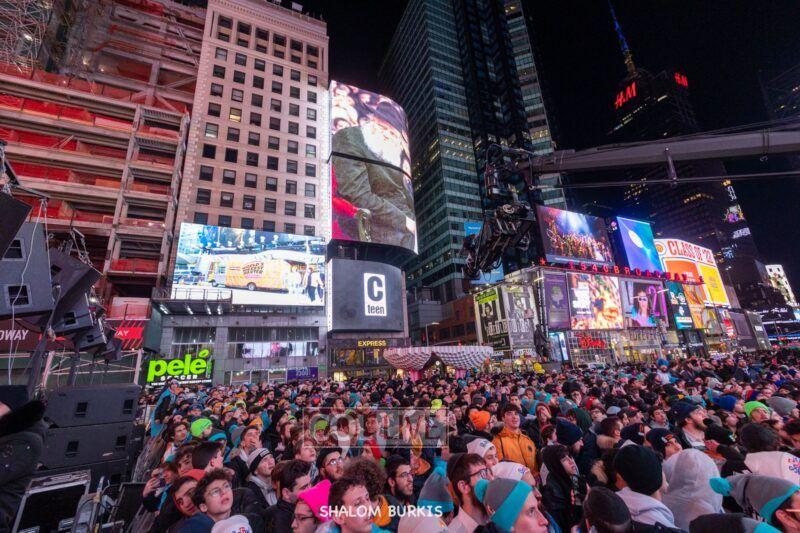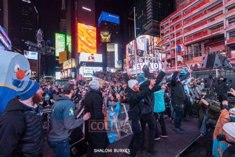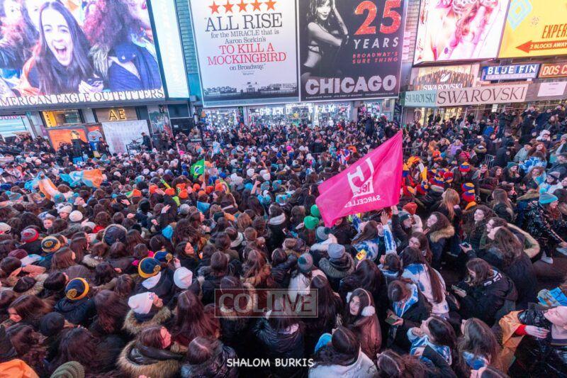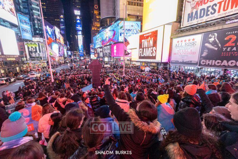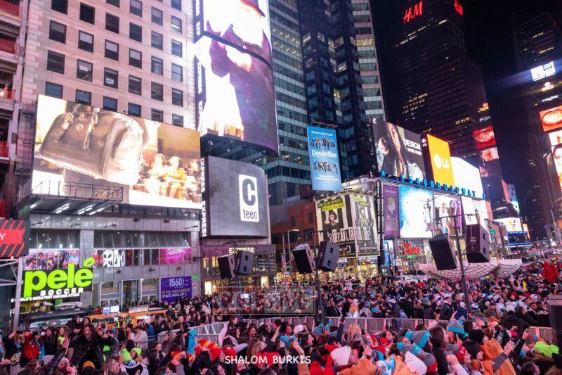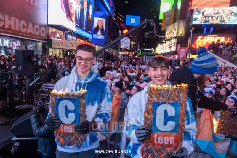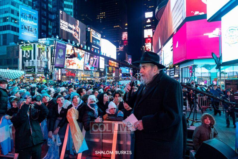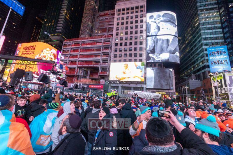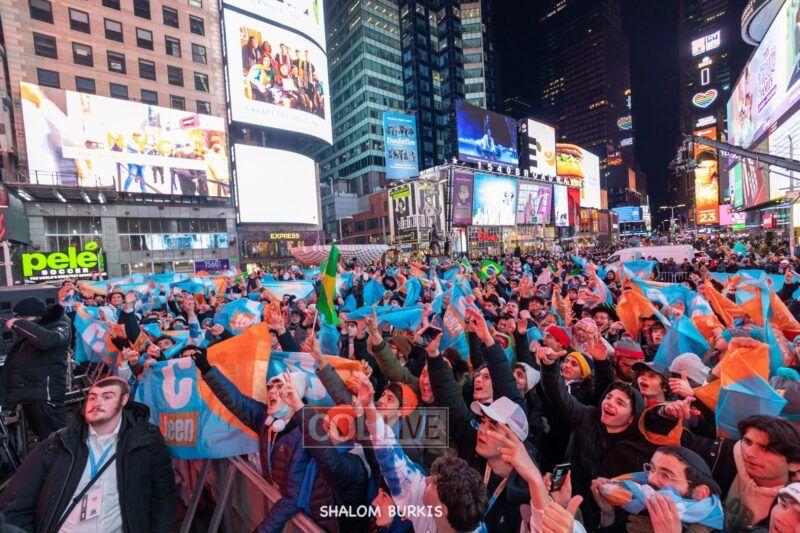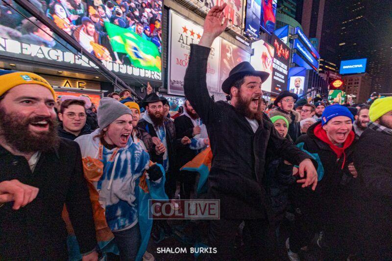 Times Square was jam-packed and full of energy at a spirited Havdalah ceremony and display of Jewish pride on Motzei Shabbos.