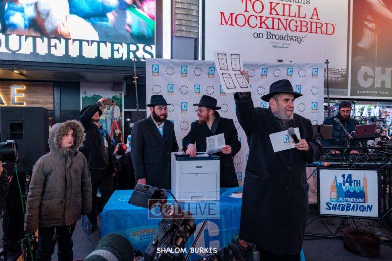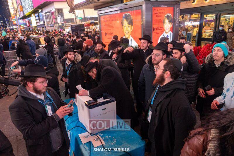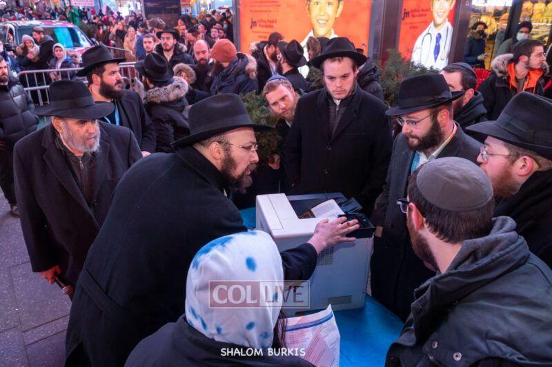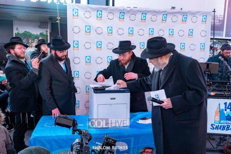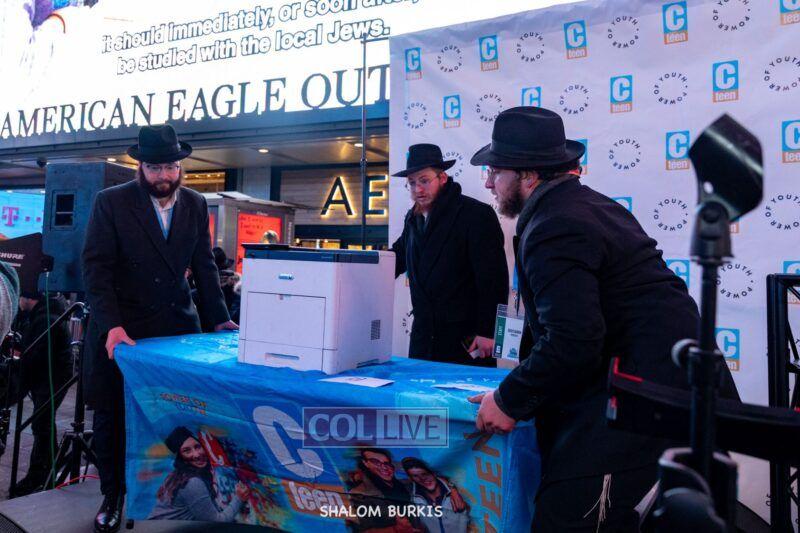 A highlight of the event was the printing of a Tanya in Times Square, completed by Rabbi Moshe Kotlarsky, Vice Chairman of Merkos.