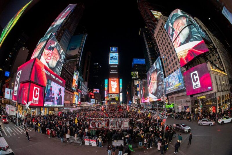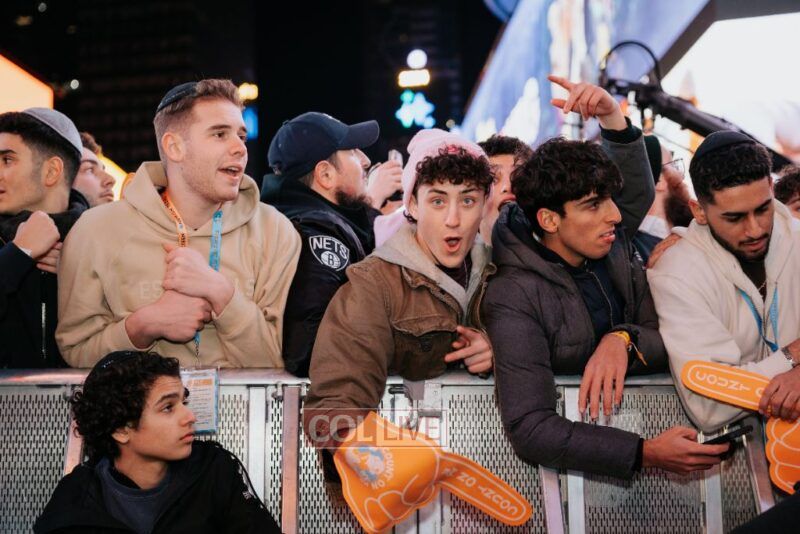 “For fifteen consecutive CTeen Shabbatons, we’ve echoed the same resounding three words. Tonight, their significance resonates more deeply than ever: AM YISROEL CHAI,” declared Rabbi Mendy Kotlarsky, his voice resounding through the CTeen branded streets of Times Square. These words, a testament to Jewish resilience, echoed not only through the streets but also within the hearts of all present, both physically and virtually.
