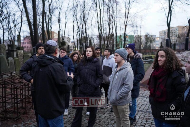 These trips make a large imprint on the hearts and minds of those participating, vis a vis their commitment to Judaism. Speaking from the Jewish cemetery in Warsaw, Rabbi Yossi Witkes, Trips Director at Chabad on Campus International, elaborated, “For example, standing here in this massive Jewish cemetery featuring the headstones of so many Rebbes, tzadikim, and other Jews, we ask students a simple question: why is this sacred place so neglected? After various hypotheses, the obvious answer is that there aren’t any children or grandchildren to tend to it! Hearing that, the realization sinks in that they are those grandchildren. If they aren’t going to carry on their Jewish identity and pride, it will be lost. This is a radically mobilizing feeling—and you see it happening right in front of your eyes.”