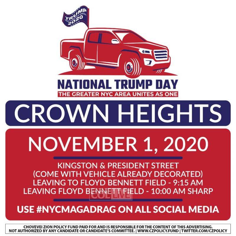 The car parade will begin in various locations in the New York area. One segment will be leaving from Crown Heights.
