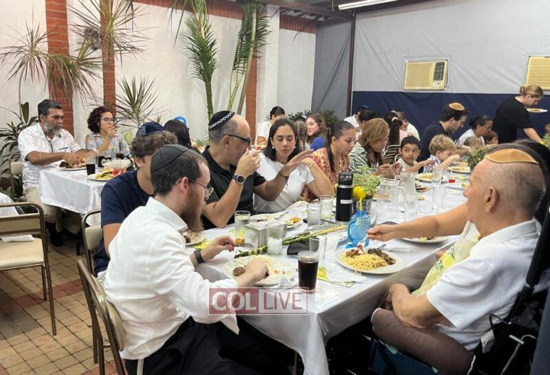 Held under the warm Colombian sun, the celebration featured a delicious full lunch, served in the air-conditioned sukkah. Families enjoyed a variety of traditional and tasty dishes, bringing everyone together in the mitzvah of eating in the sukkah.