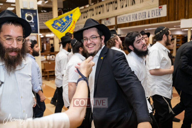 After 14 days of Siyumim in 770 – this year 3 times daily – after each Davening, a Siyum was held on the 15th of Av with great Simcha and dancing.